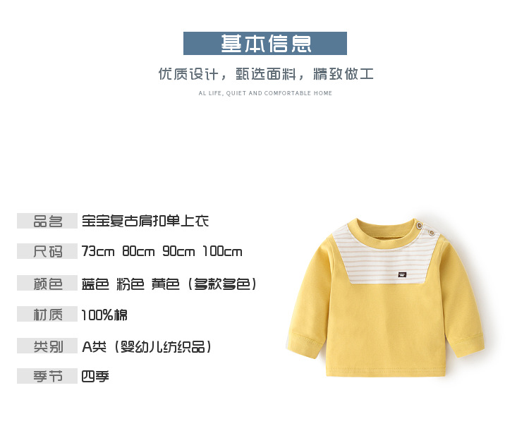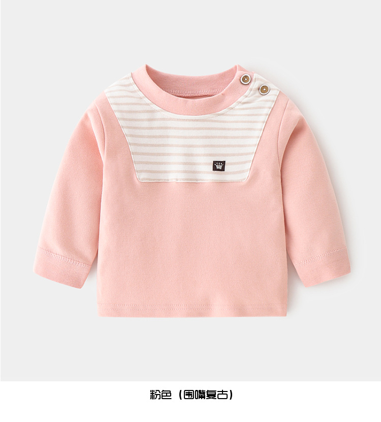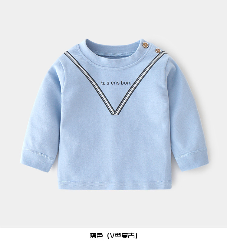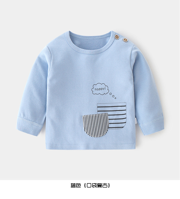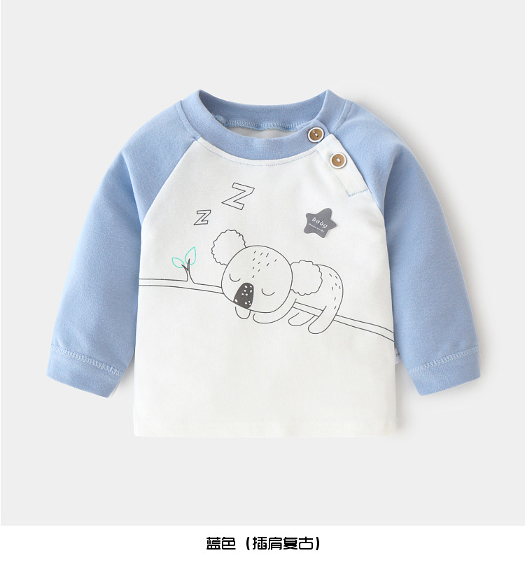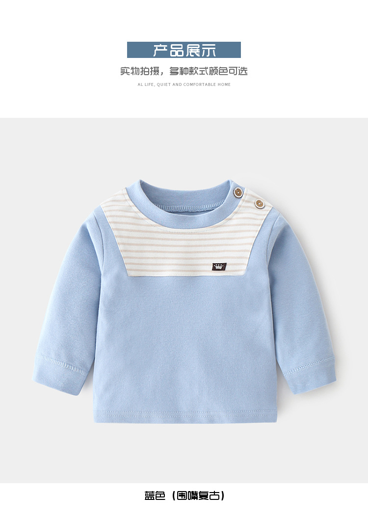 BC01JH Baby Autumn Clothes Baby Cotton Home Retro Cotton Boys And Girls Spring And Autumn Underwear Base Shirt Children's Shoulder Open T-Shirt