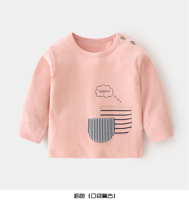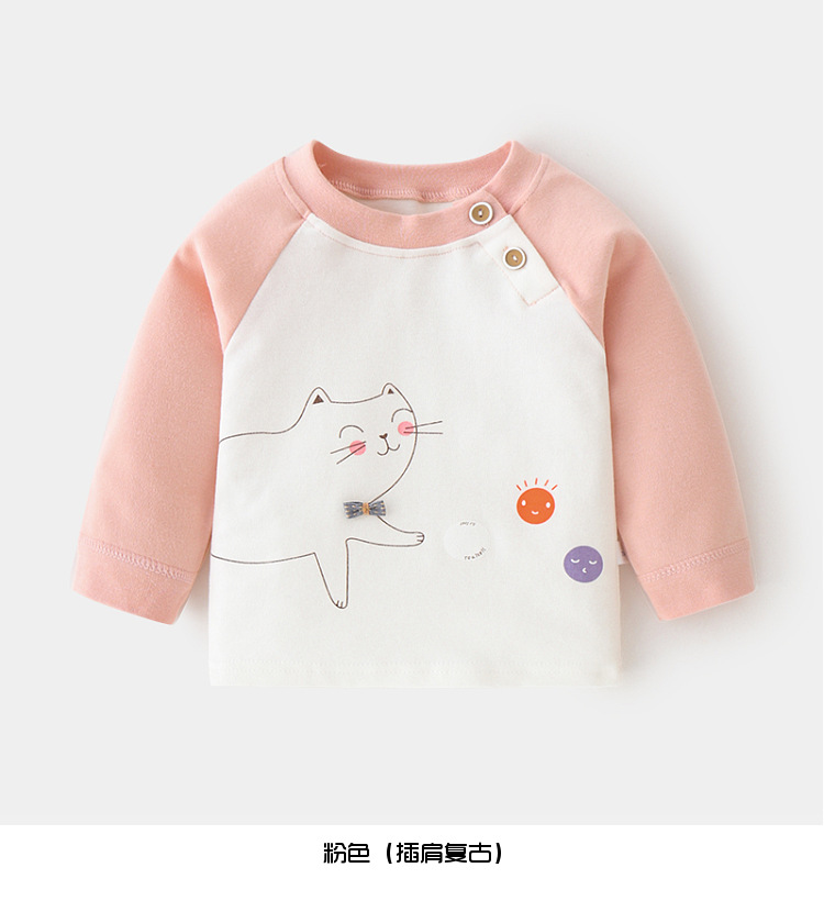 Decrease quantity for BC01JH Baby Autumn Clothes Baby Cotton Home Retro Cotton Boys And Girls Spring And Autumn Underwear Base Shirt Children's Shoulder Open T-Shirt
