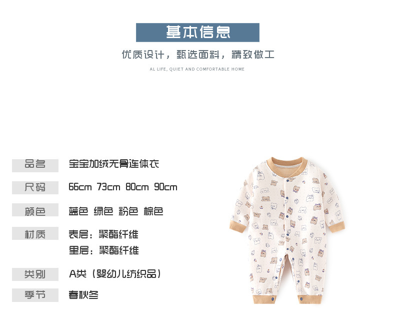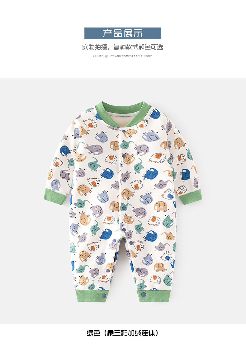BC01JH Baby Fleece-lined Jumpsuit Baby Thickened Thermal Underwear Newborn Clothes Autumn And Winter Hatshirt Children's Climbing Suit