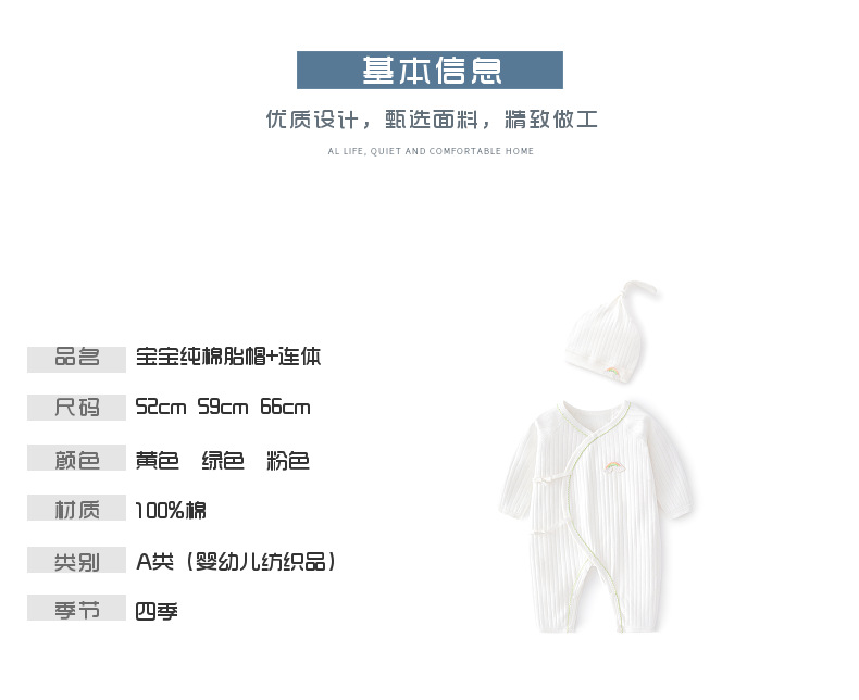 1083215-黄色(花边双翼胎帽+连体衣)||52cm