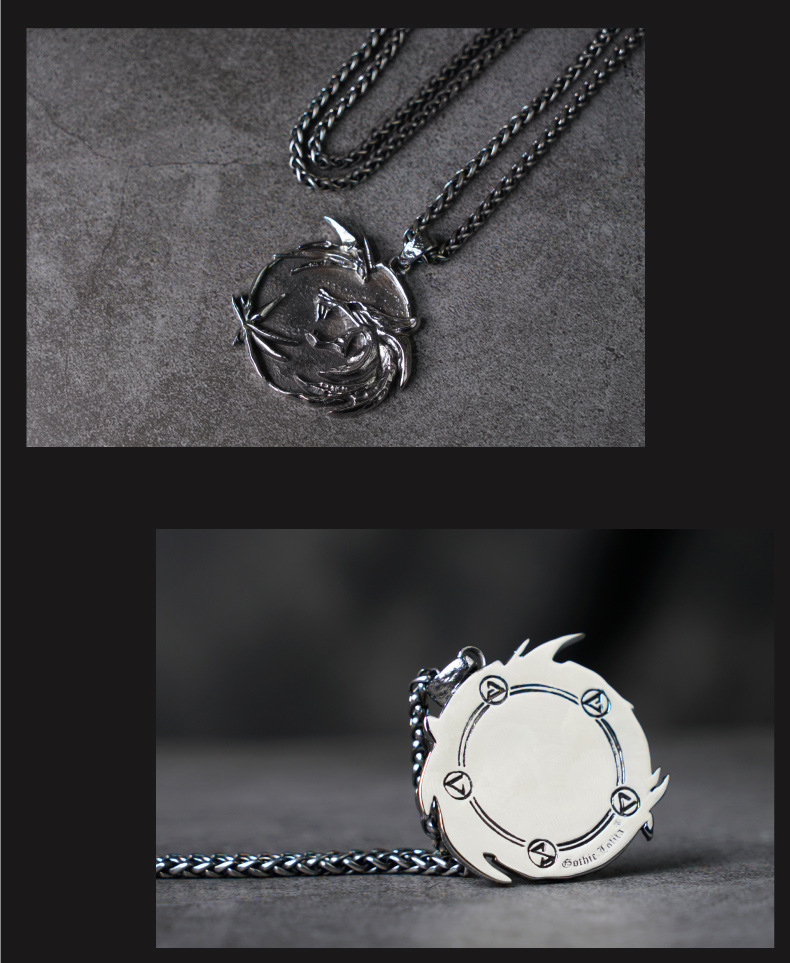 JY01WJ Gothic Lori Devil Hunter Male Wizard Wolf Head Pendant Necklace Male Trendy Ins Style Titanium Steel Hip-Hop Personality Aggressive