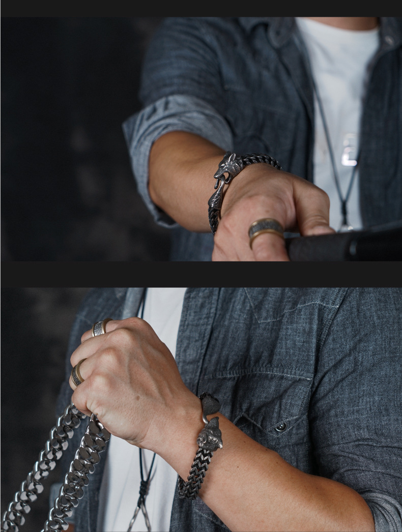 Increase quantity for JY01WJ Locomotive Wind Heavy Metal Werewolf Wolf Head Bracelet Titanium Steel Male Street Hip Hop Trendy Ins Personalized Single Student Bracelet