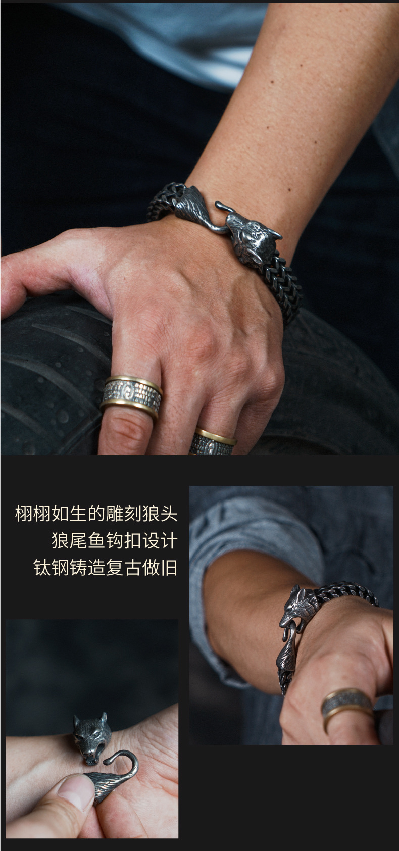 JY01WJ Locomotive Wind Heavy Metal Werewolf Wolf Head Bracelet Titanium Steel Male Street Hip Hop Trendy Ins Personalized Single Student Bracelet