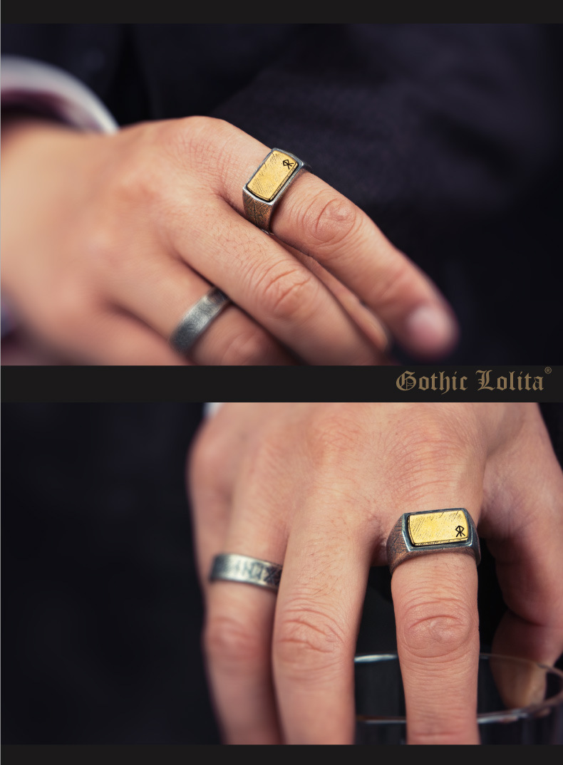 JY01WJ Nordic Viking Thor's Hammer Ring Silver Bronze Loon Letter Trendy Men's Retro Tail Ring Lettering Personalized Silver Jewelry