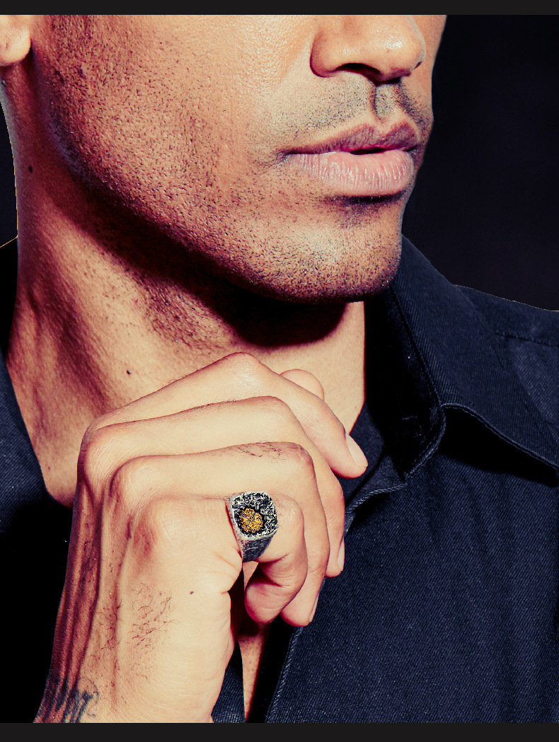 Increase quantity for JY01WJ Viking Treasure Silver Bronze Tail Ring Compass Trendy Men's Silver Ring Vintage Silver Jewelry Single Finger Ring Opening