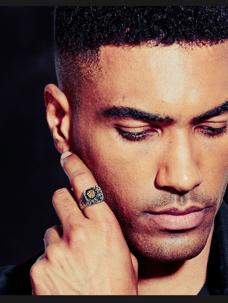 JY01WJ Viking Treasure Silver Inlaid Copper Ring Geometric Triangle Silver Ring Tide Man Single Tail Ring Silver Jewelry Vintage Lettering