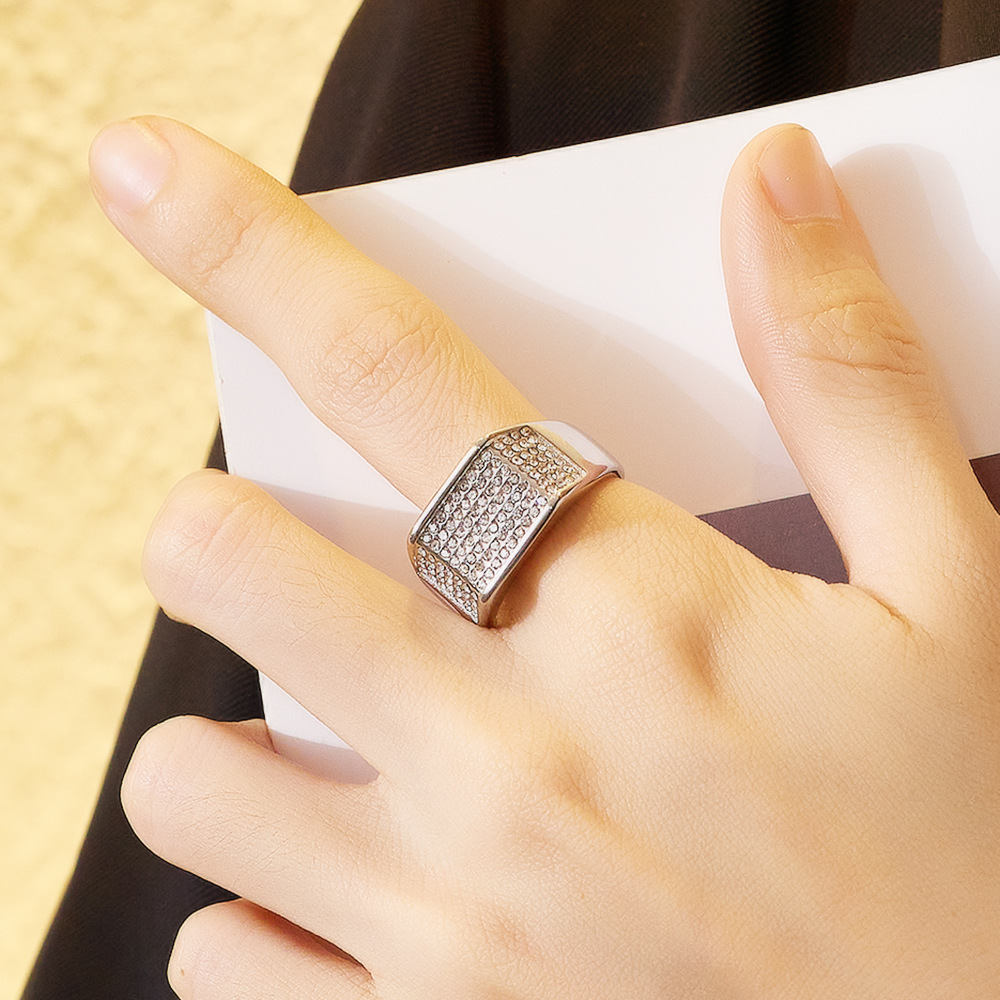 Increase quantity for JY02FF Hip-hop Fashion Titanium Steel Full Diamond Ring Light Luxury Design 18k Gold Plated Men's Ring Bracelet Wholesale (Material: titanium steel)