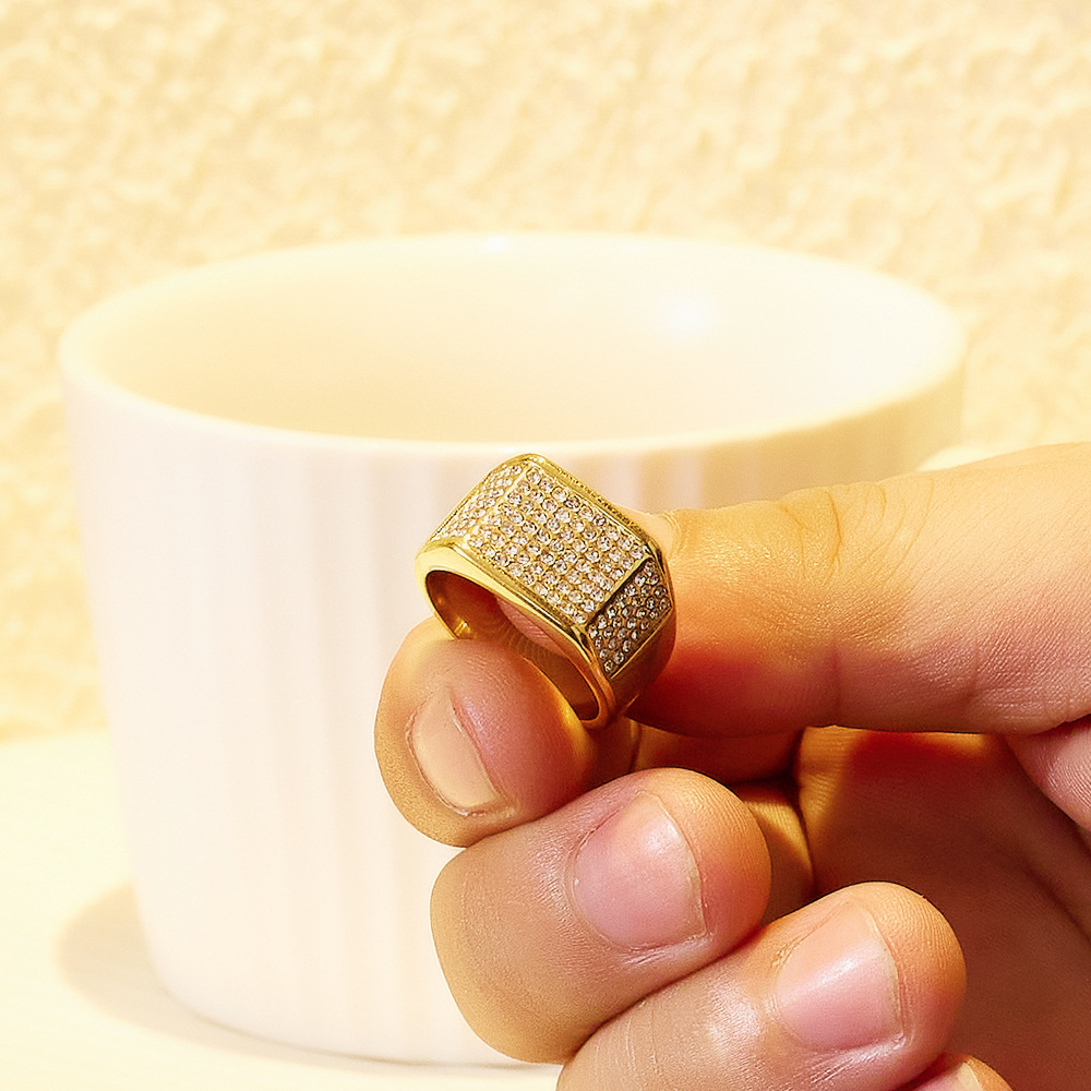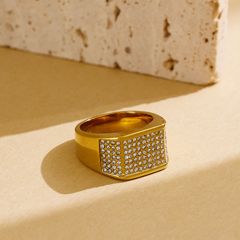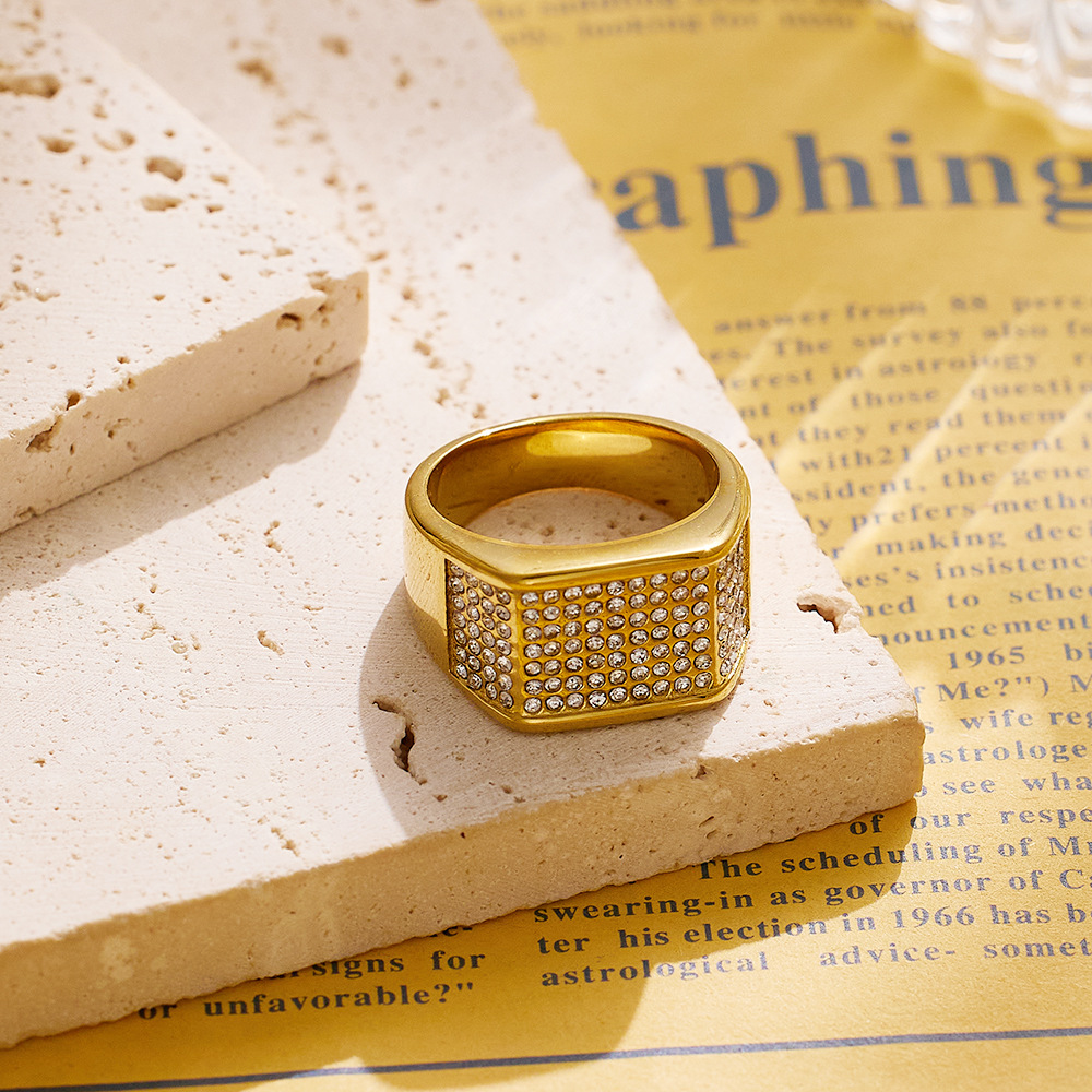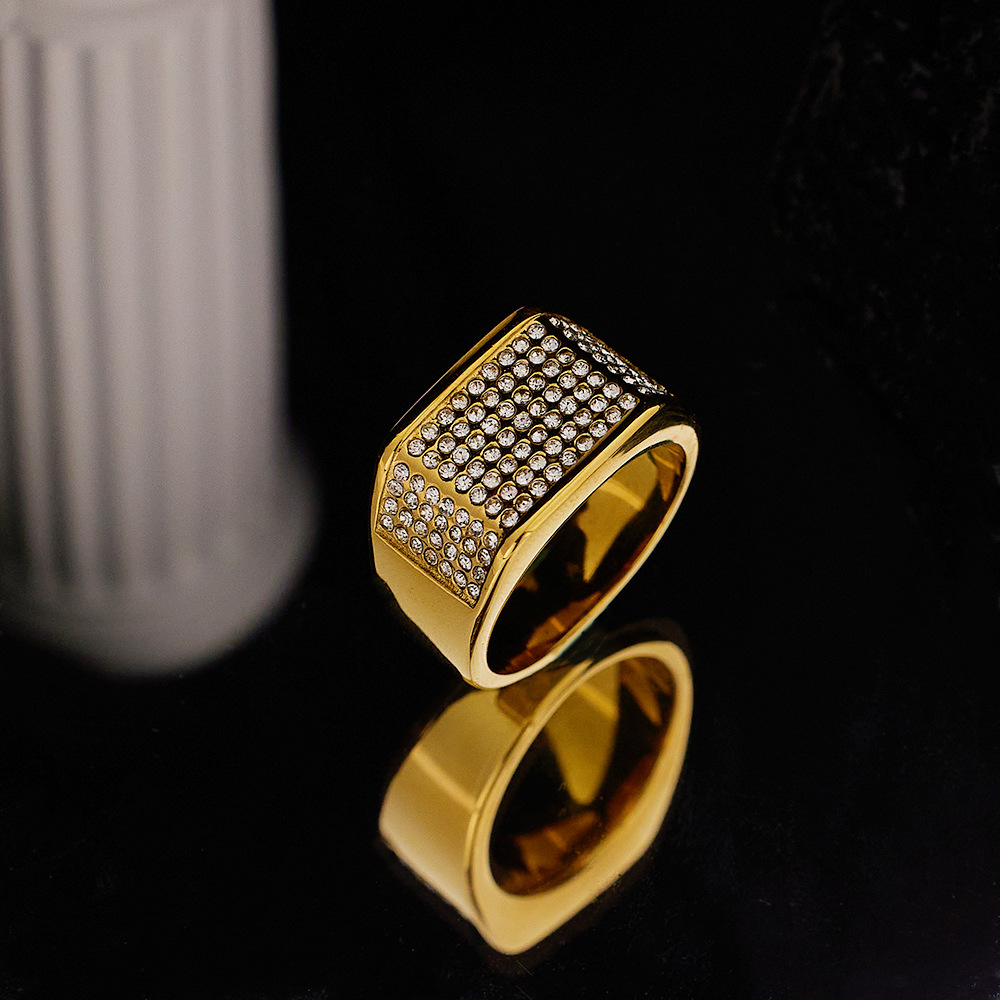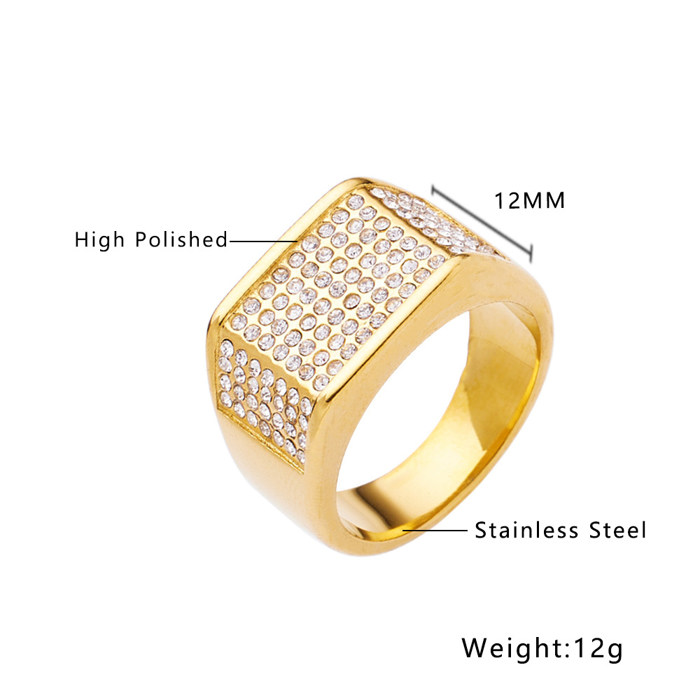 Decrease quantity for JY02FF Hip-hop Fashion Titanium Steel Full Diamond Ring Light Luxury Design 18k Gold Plated Men's Ring Bracelet Wholesale (Material: titanium steel)