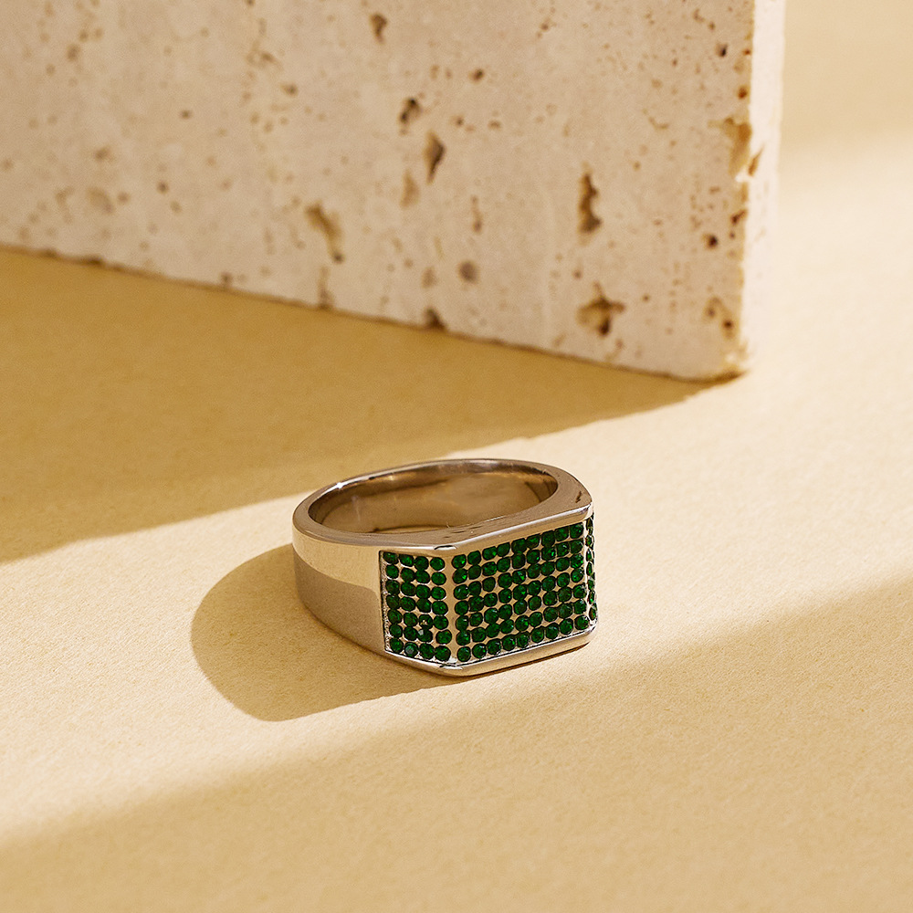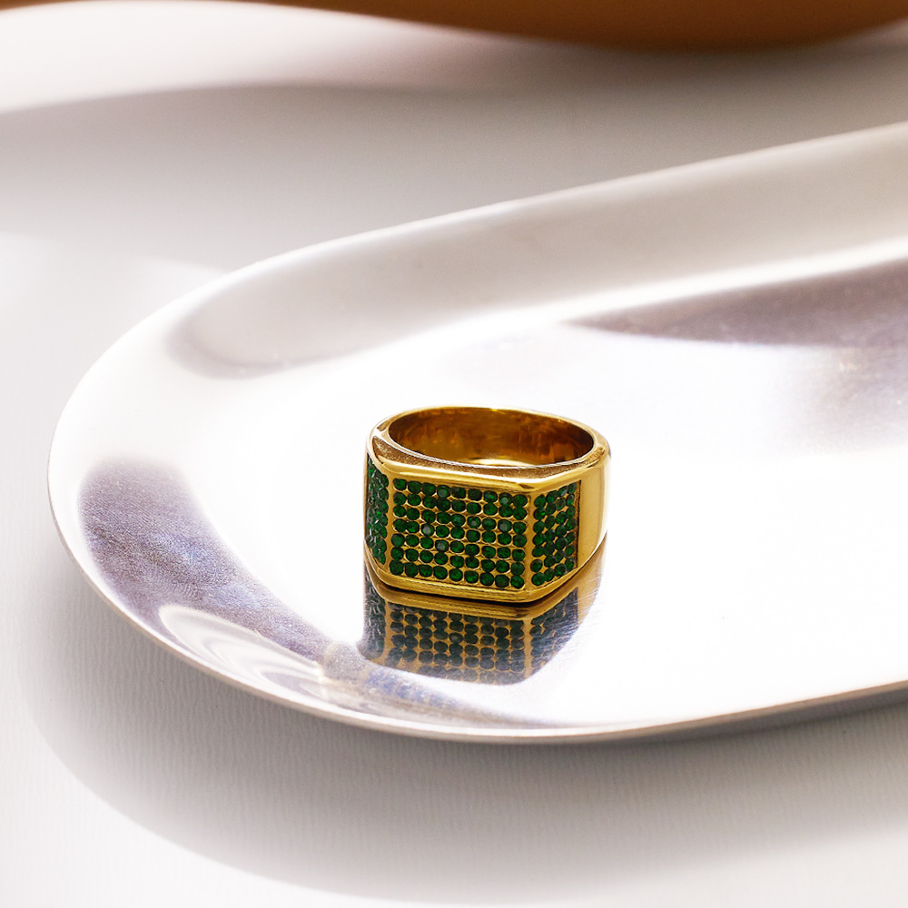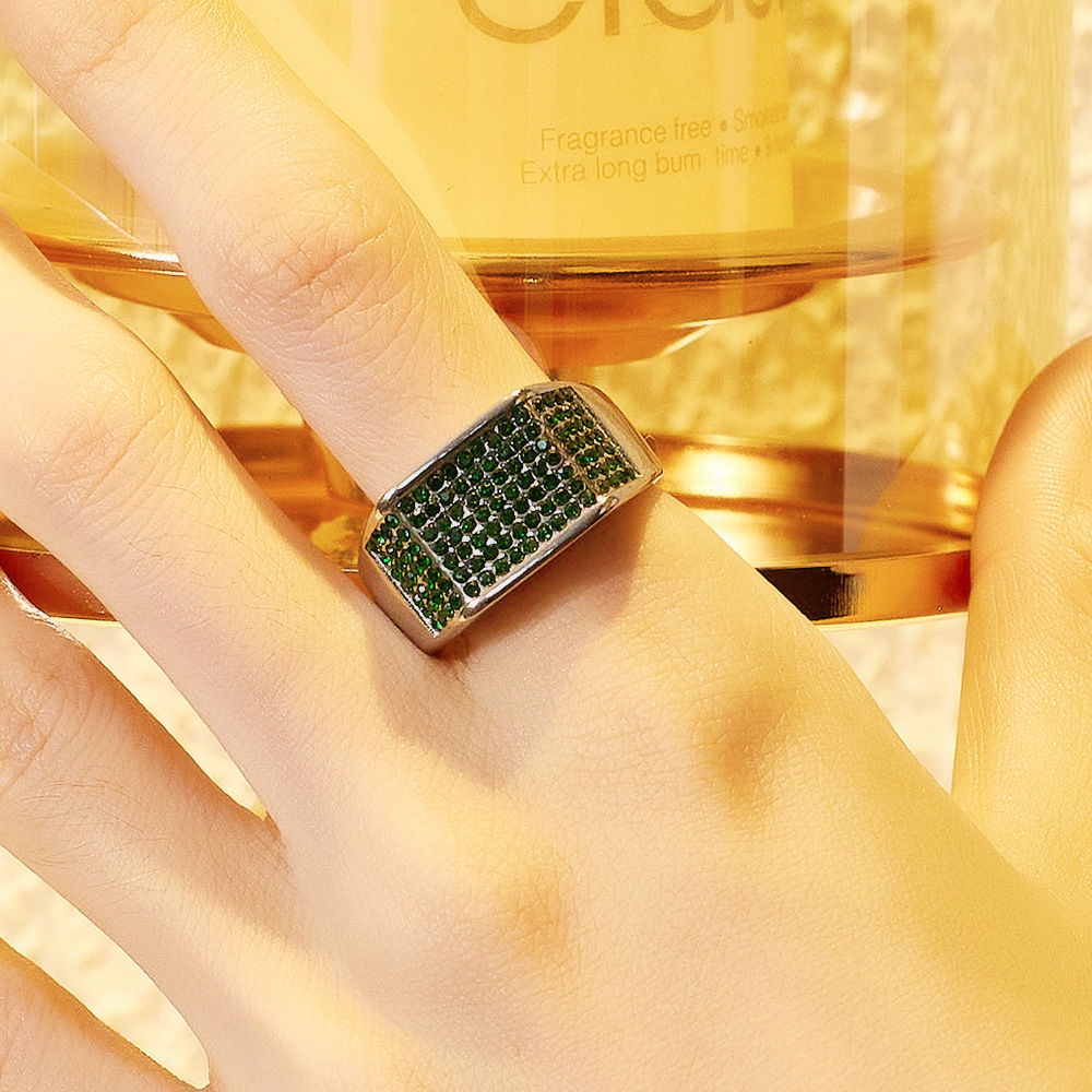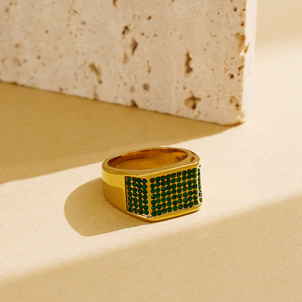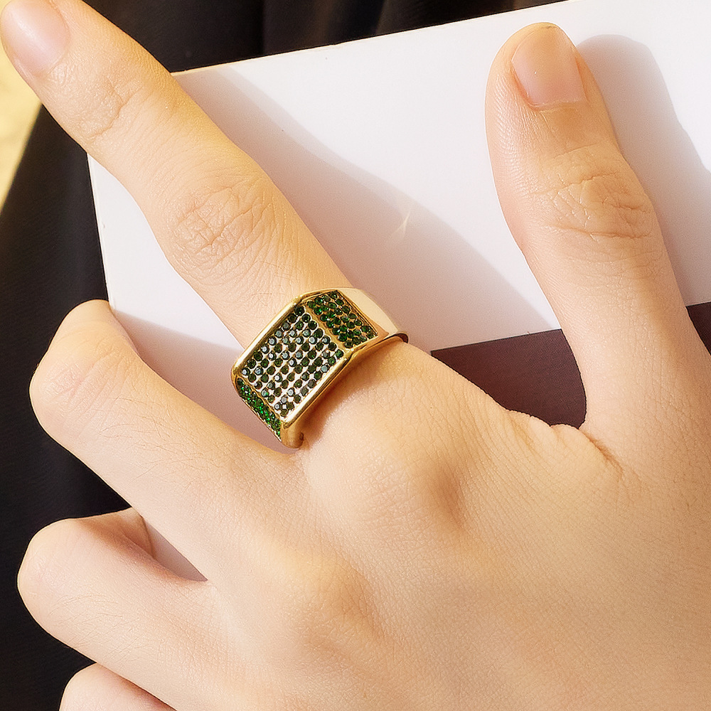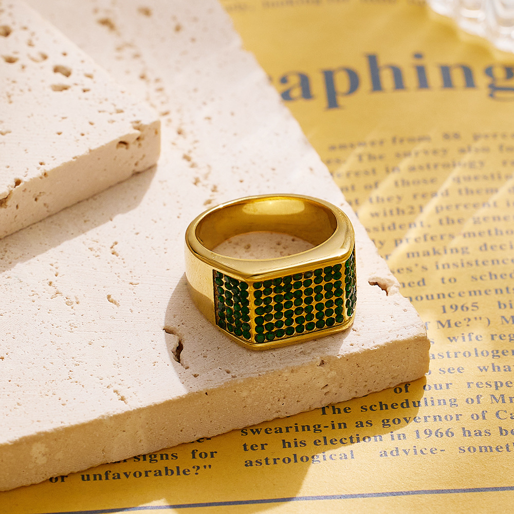 Decrease quantity for JY02FF Hip-hop Fashion Titanium Steel Full Diamond Ring Light Luxury Design 18k Gold Plated Men's Ring Bracelet Wholesale (Material: titanium steel)