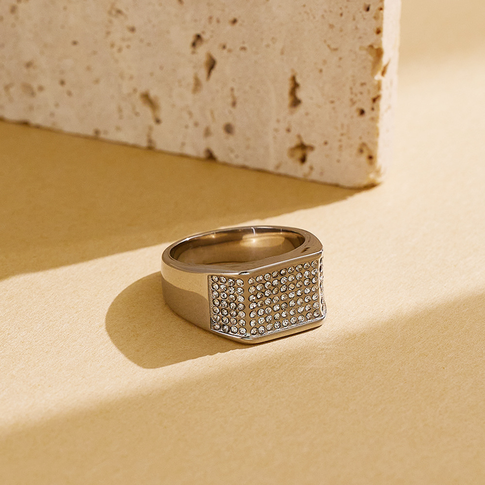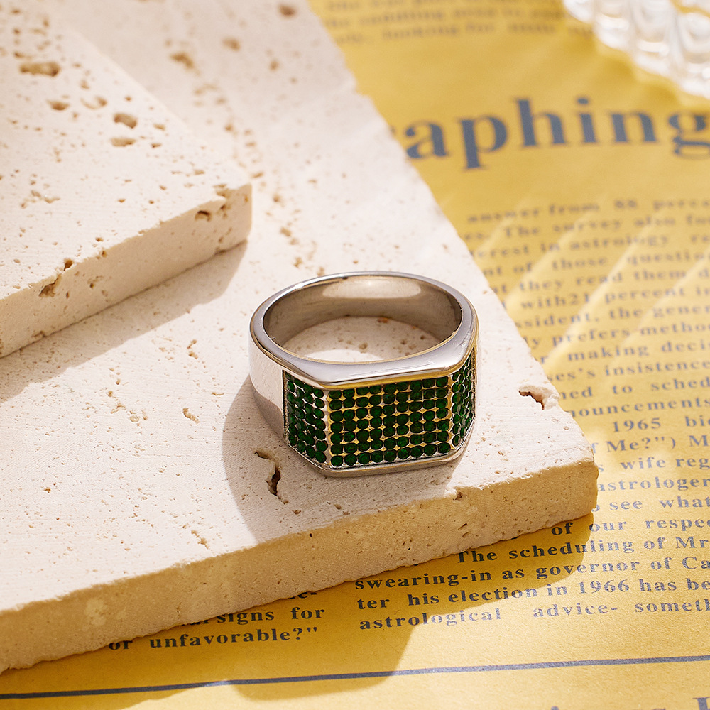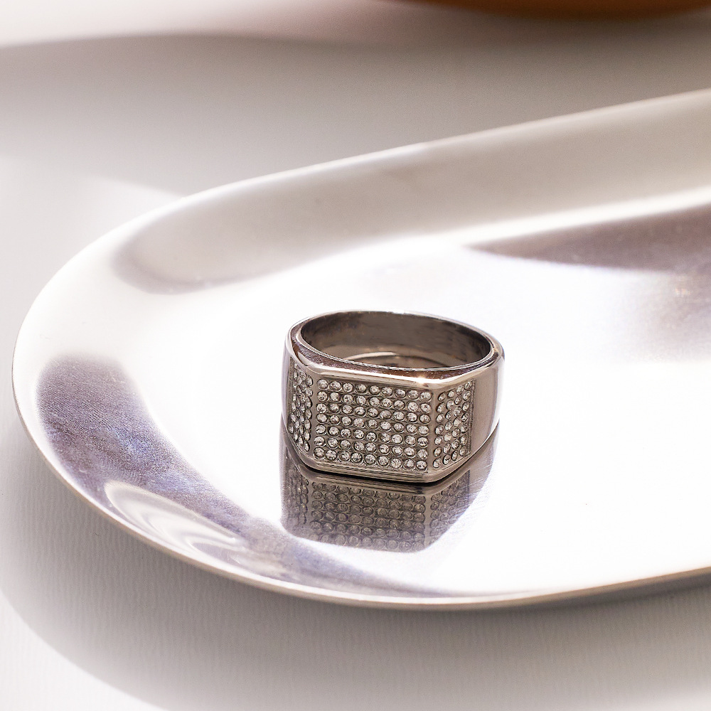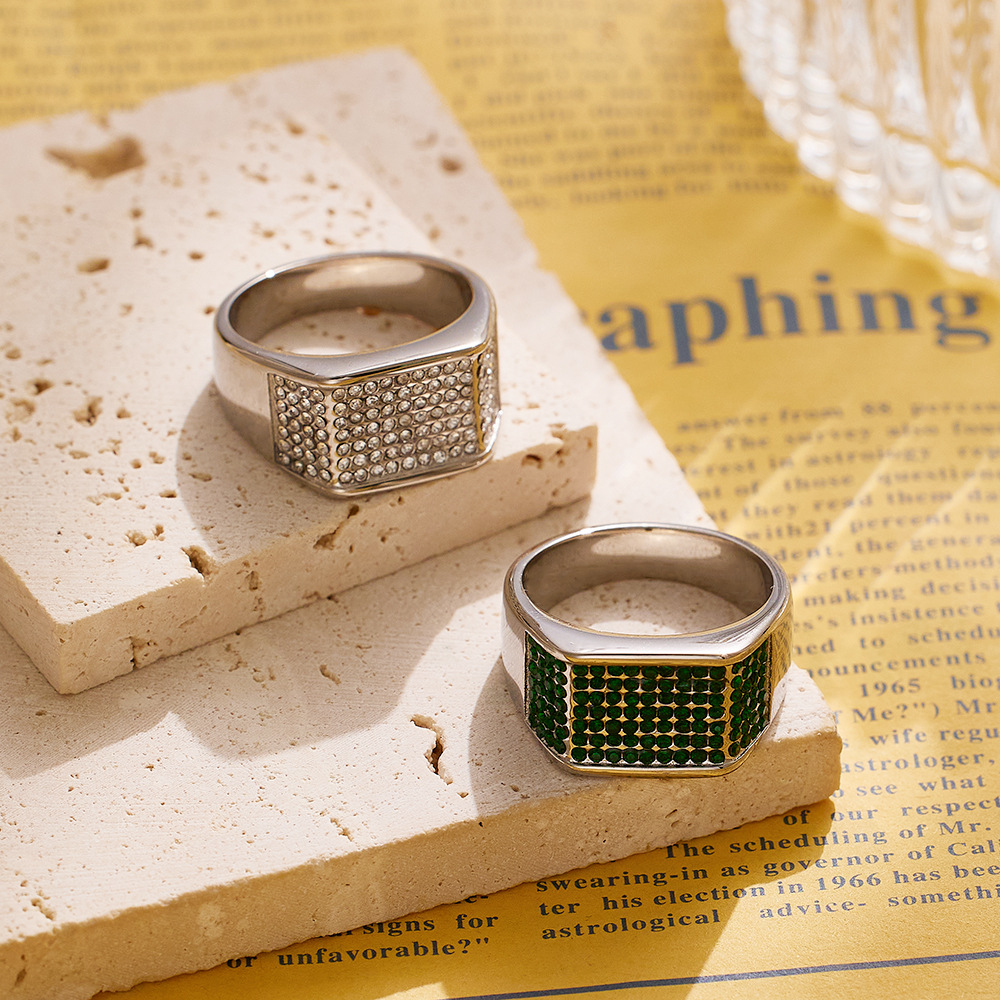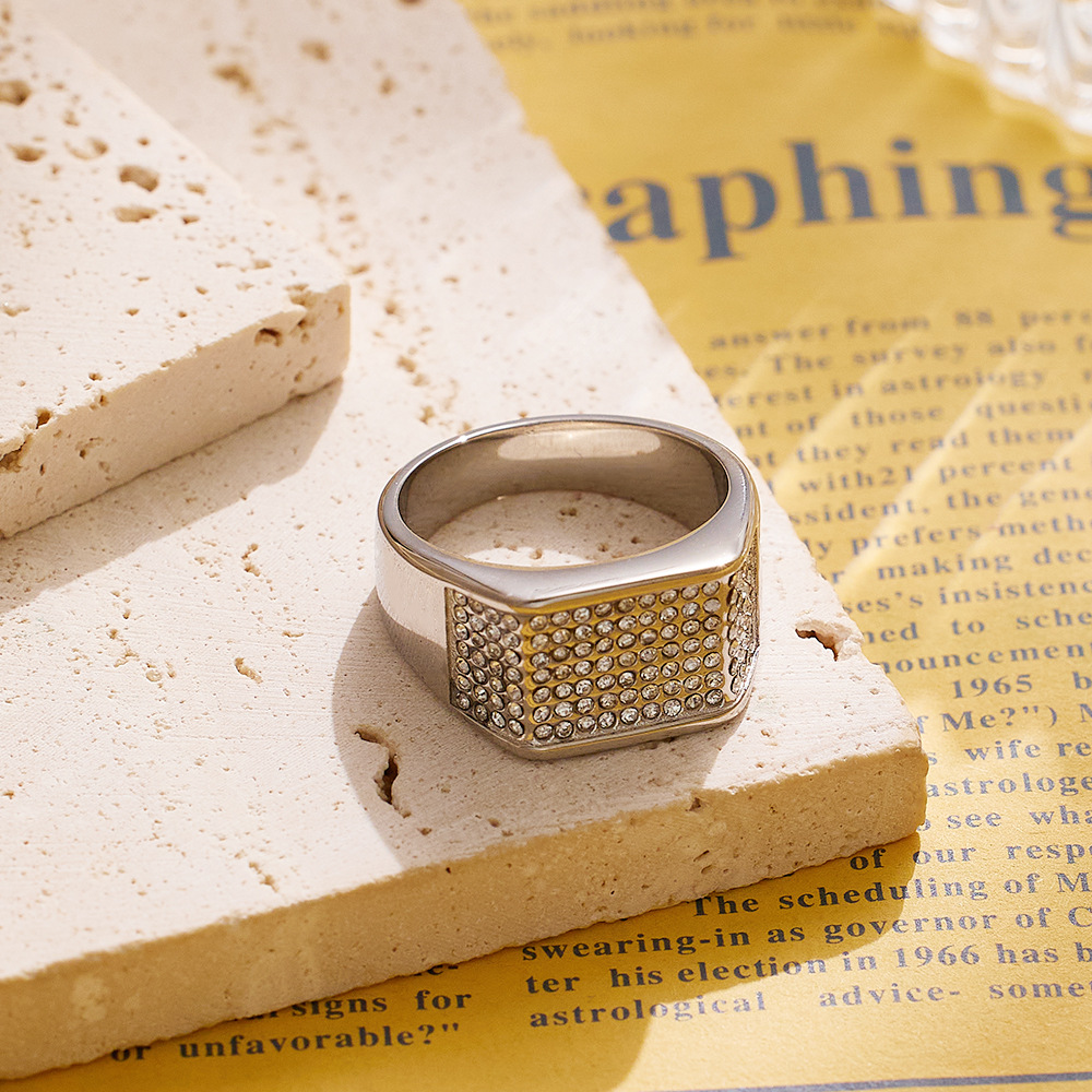 JY02FF Hip-hop Fashion Titanium Steel Full Diamond Ring Light Luxury Design 18k Gold Plated Men's Ring Bracelet Wholesale (Material: titanium steel)