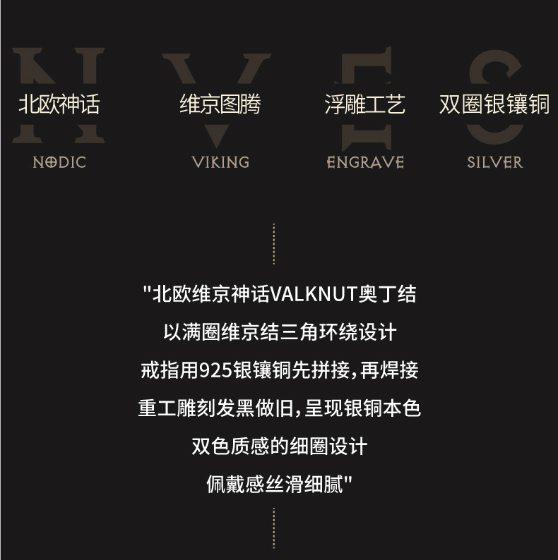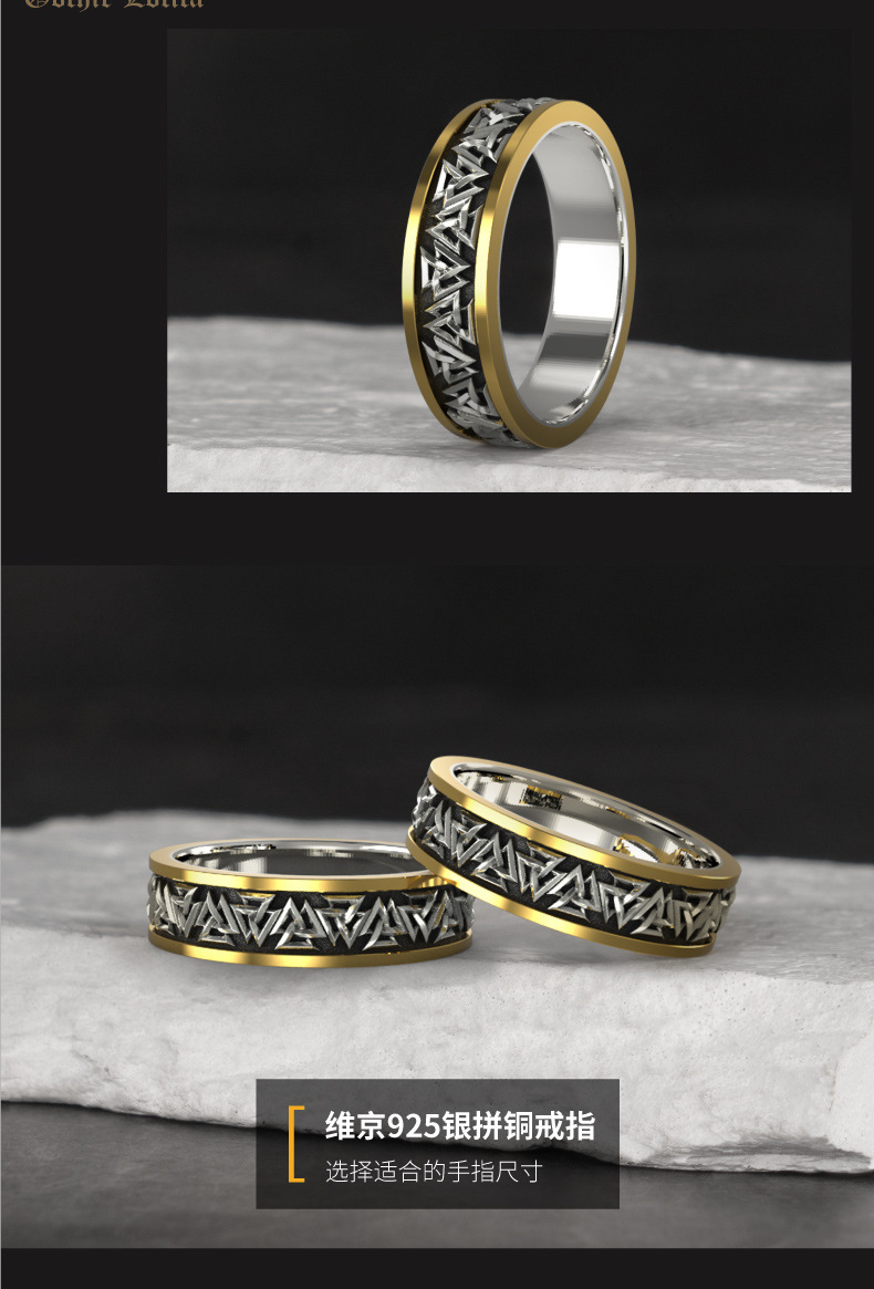 Nordic VALKNUT Viking Silver And Copper Ring Men's 925 Silver Jewelry Single Trendy Index Finger Ring Tail Ring
