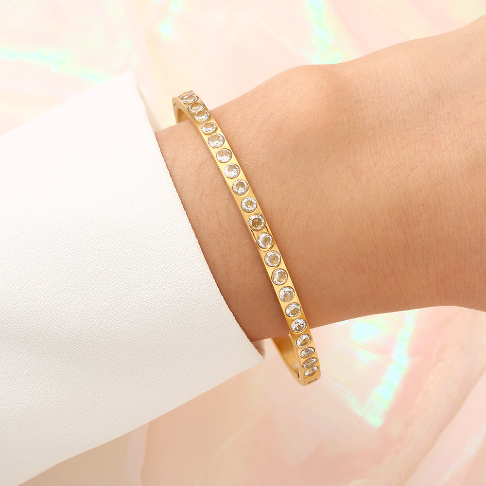 JY02F Bracelet Women's Inlaid Diamond Light Luxury Bracelet Advanced Sense Full Diamond Bracelet Not Faded (Material: titanium steel)