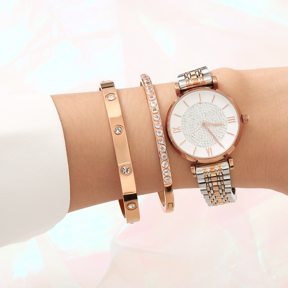 Increase quantity for JY02F Bracelet Women's Inlaid Diamond Light Luxury Bracelet Advanced Sense Full Diamond Bracelet Not Faded (Material: titanium steel)