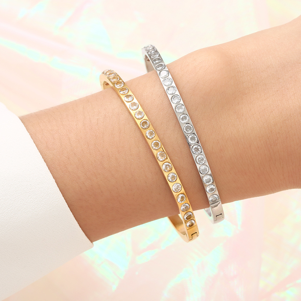 Decrease quantity for JY02F Bracelet Women's Inlaid Diamond Light Luxury Bracelet Advanced Sense Full Diamond Bracelet Not Faded (Material: titanium steel)
