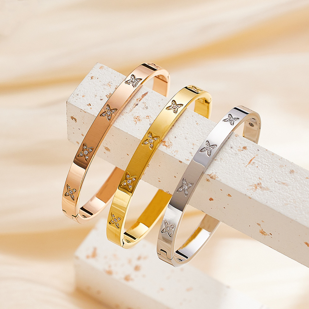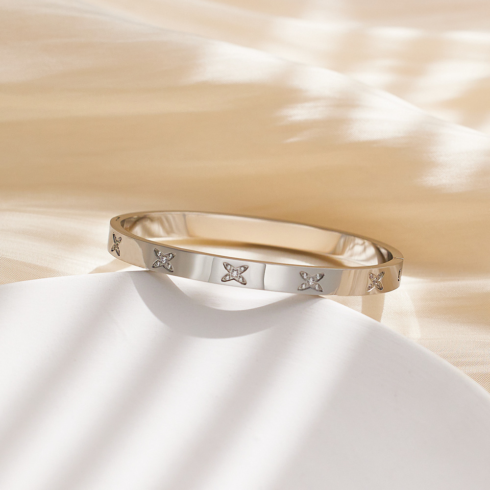 Decrease quantity for JY02FF 2023 New Factory Direct Sales A Generation Of CNC Titanium Steel Zircon Bracelet Cross X Grain Titanium Steel Diamond Bracelet (Material: titanium steel)