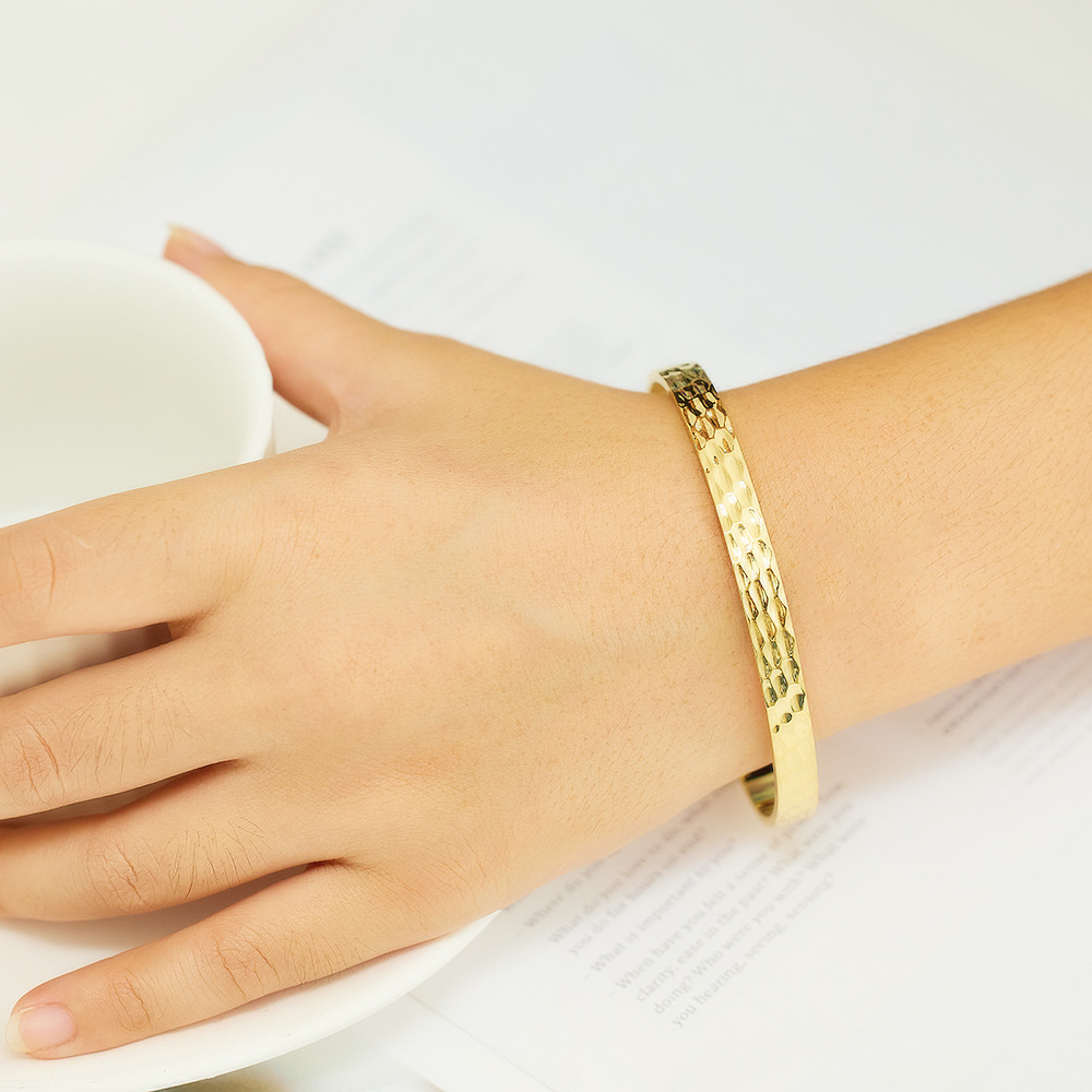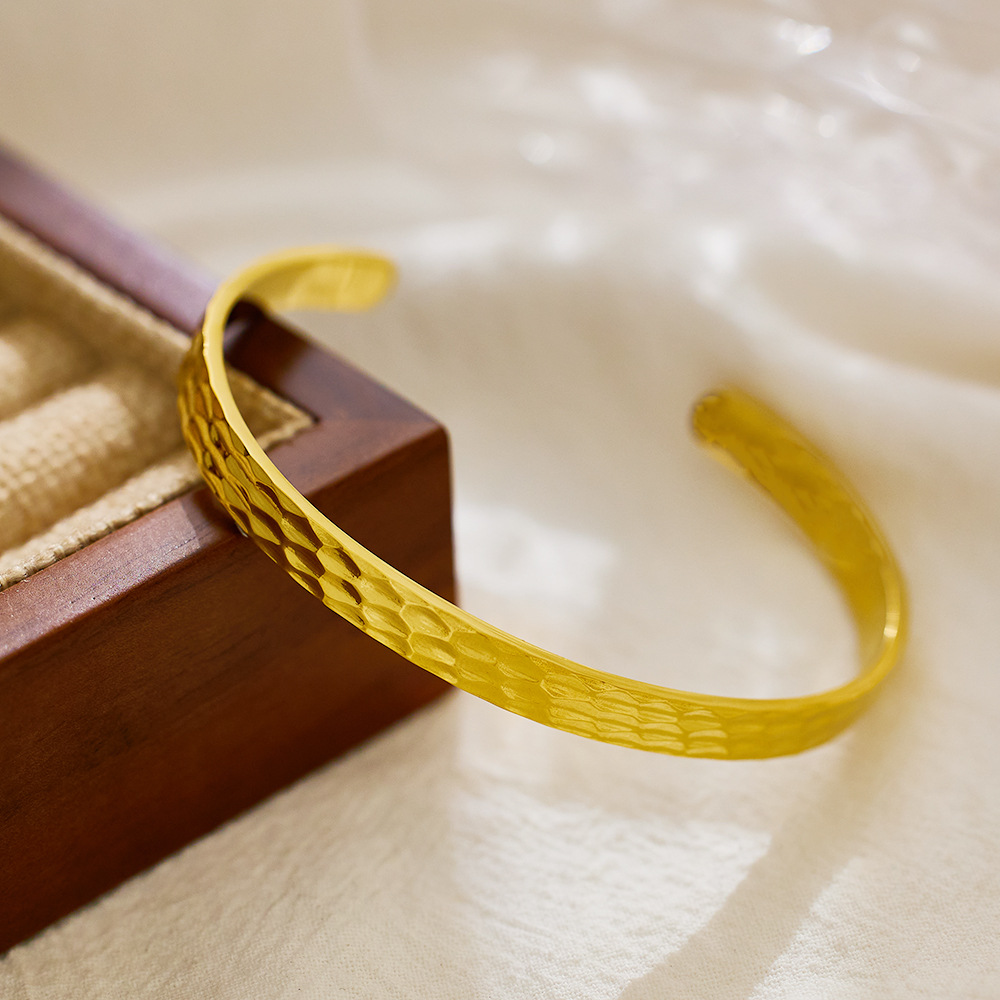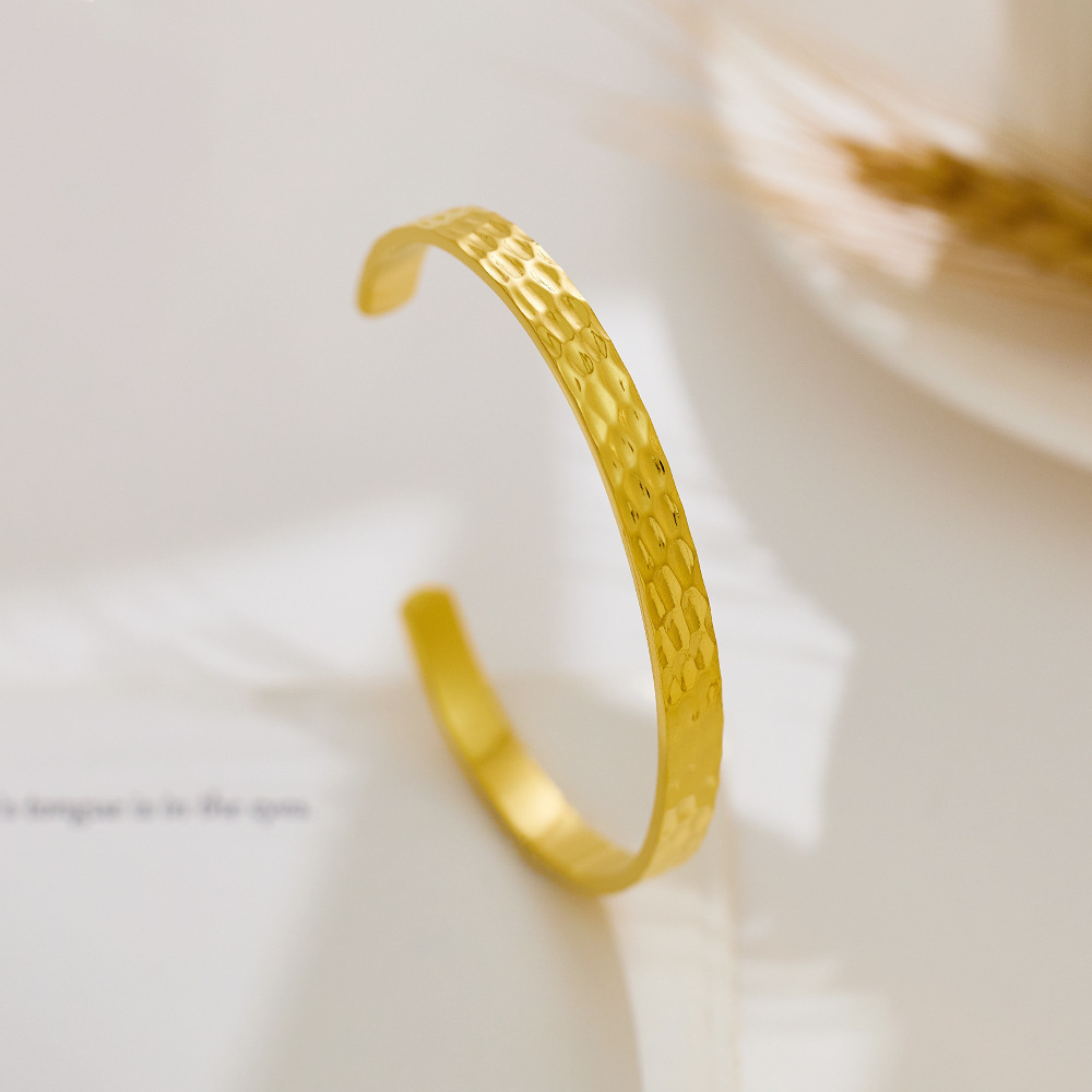 Decrease quantity for JY02FF Advanced Bracelet C- Shaped Bracelet Color-free Heavy Hammer Pattern Gold Irregular Titanium Bracelet (Material: titanium steel)