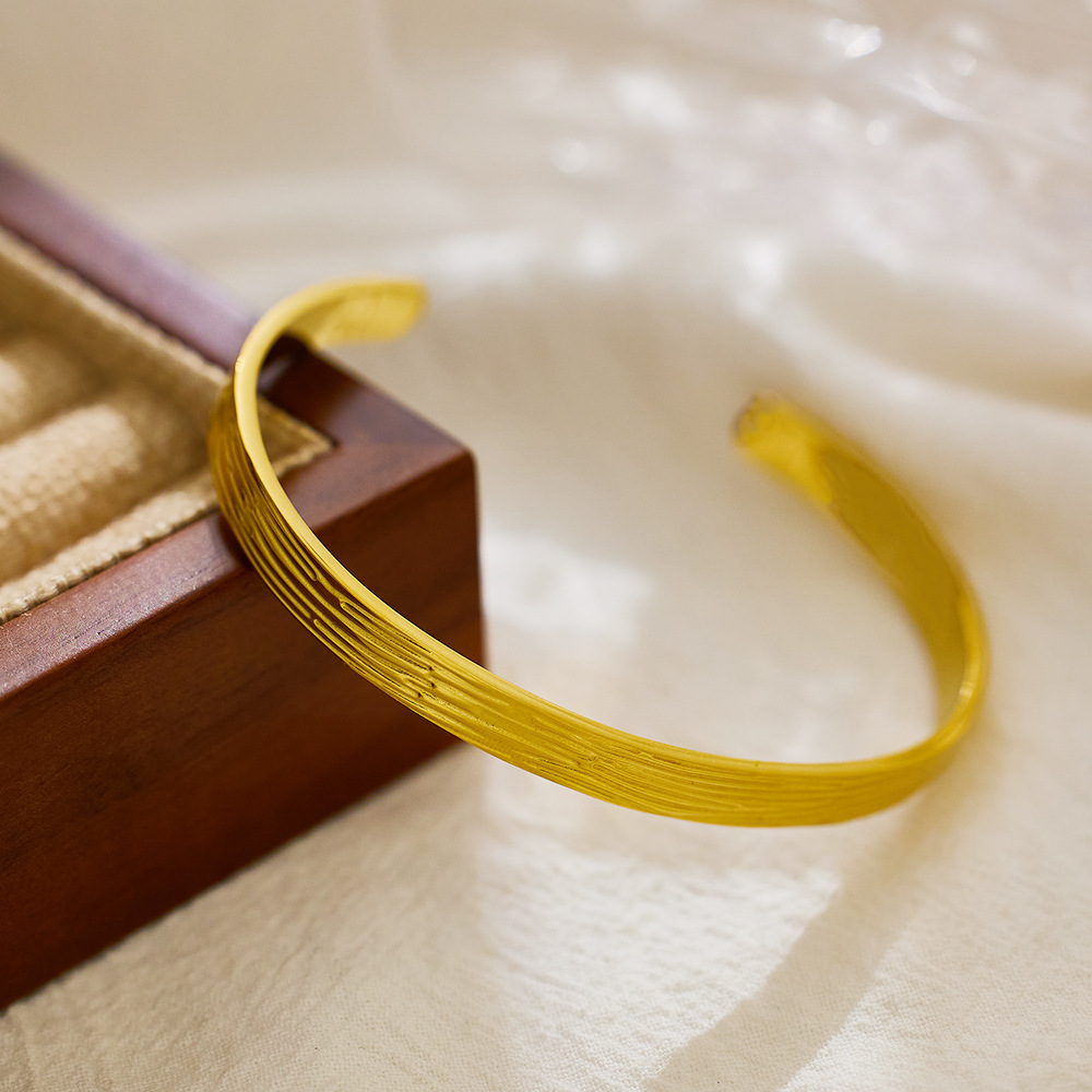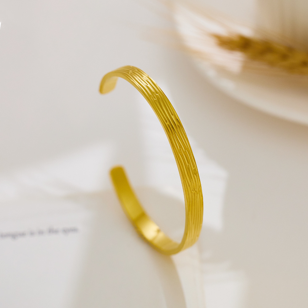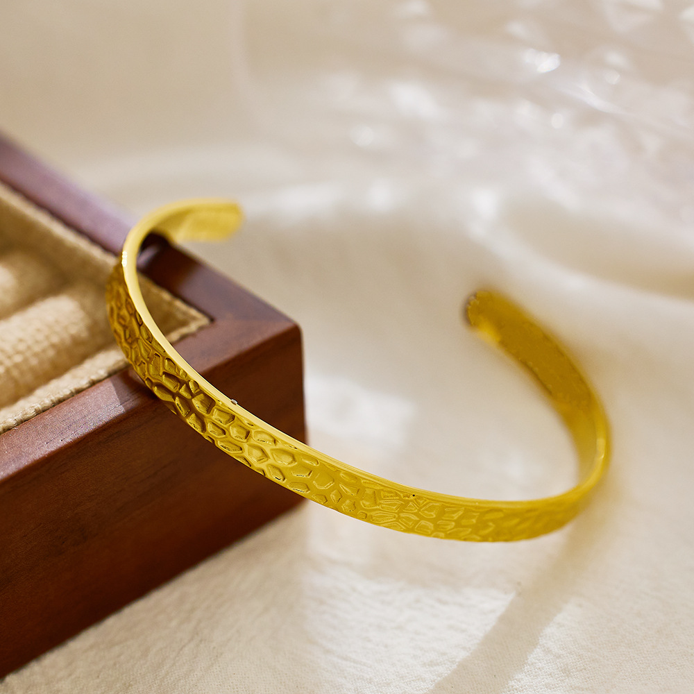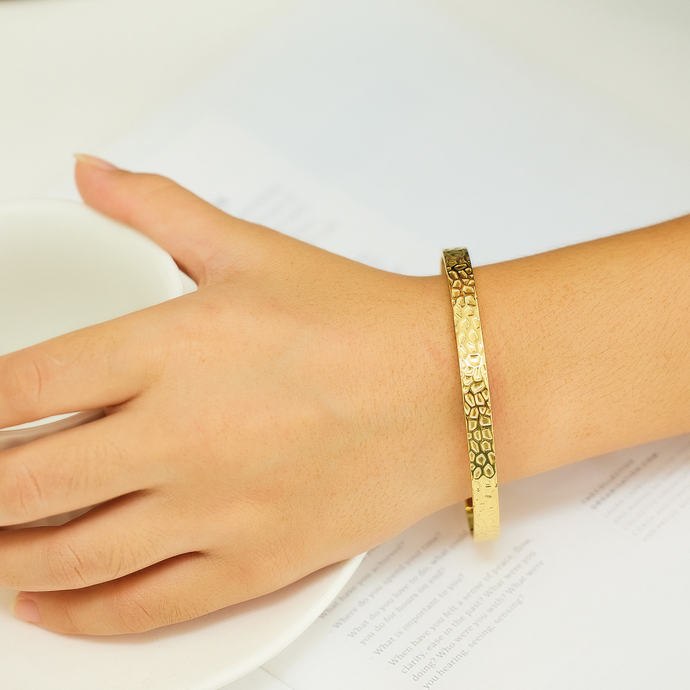 Decrease quantity for JY02FF Advanced Bracelet C- Shaped Bracelet Color-free Heavy Hammer Pattern Gold Irregular Titanium Bracelet (Material: titanium steel)