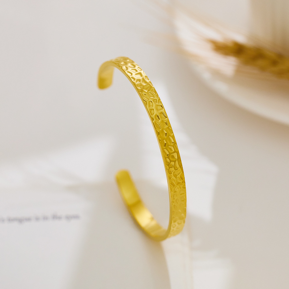 JY02FF Advanced Bracelet C- Shaped Bracelet Color-free Heavy Hammer Pattern Gold Irregular Titanium Bracelet (Material: titanium steel)