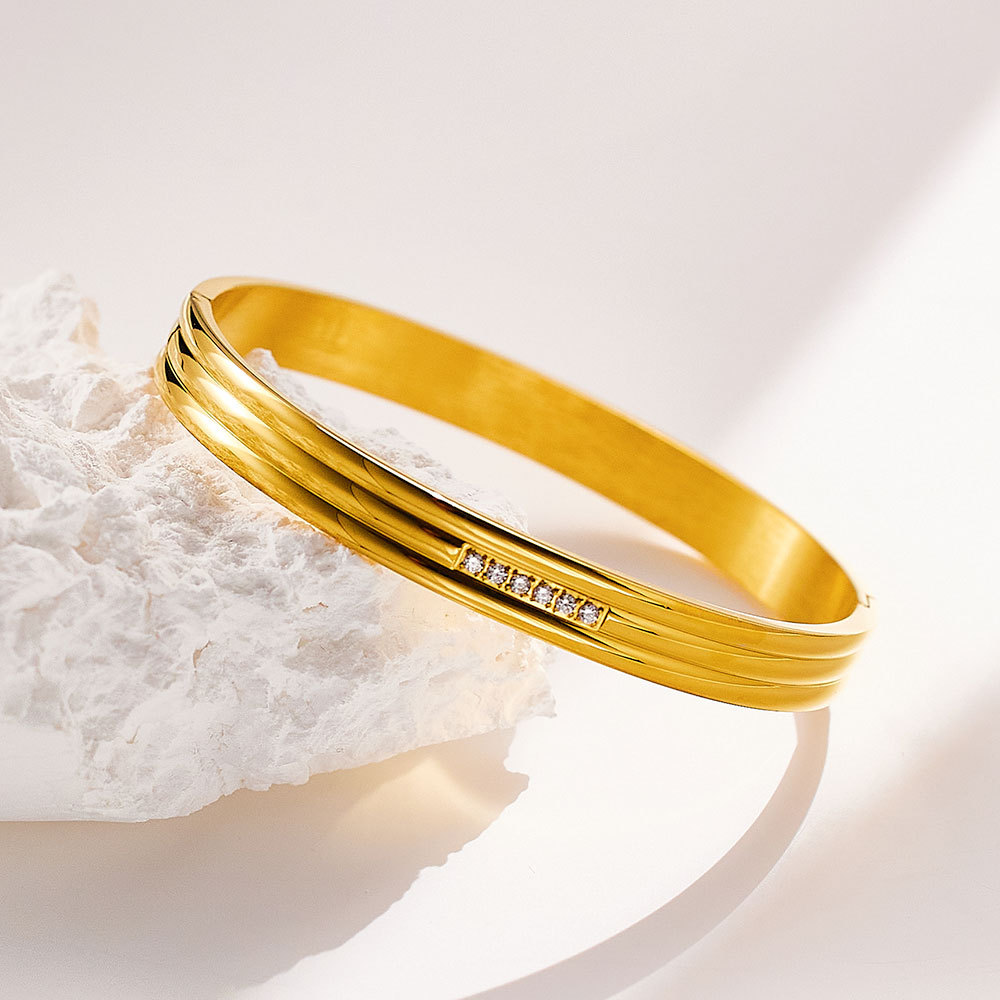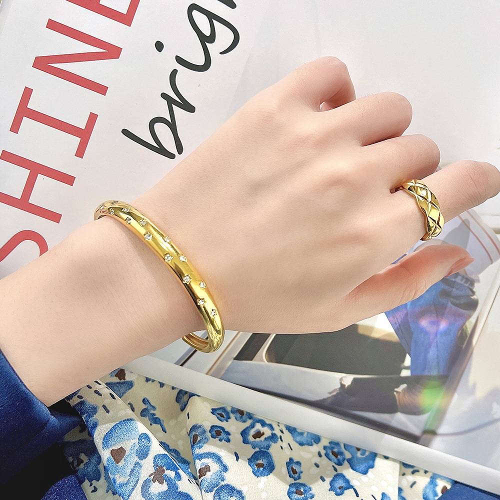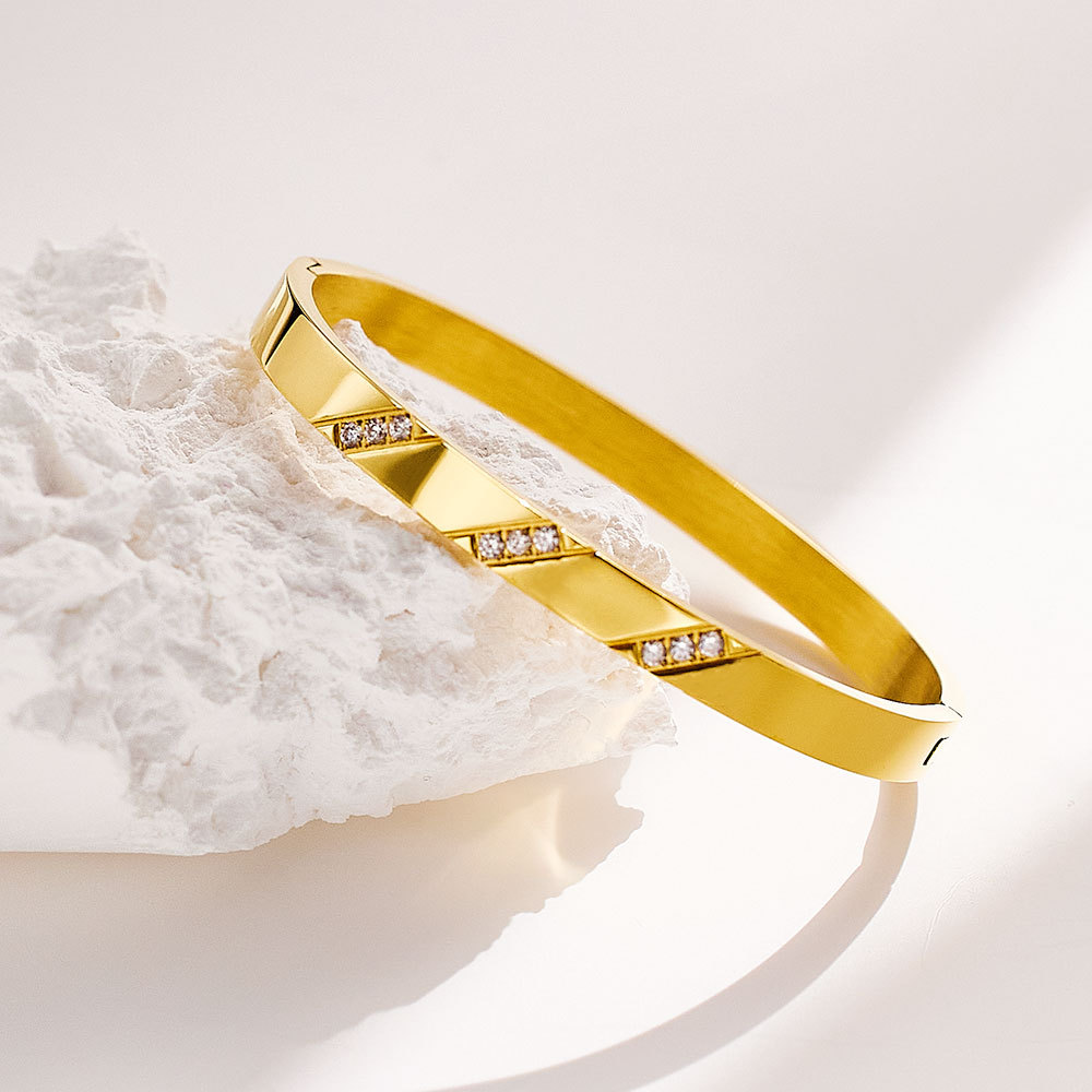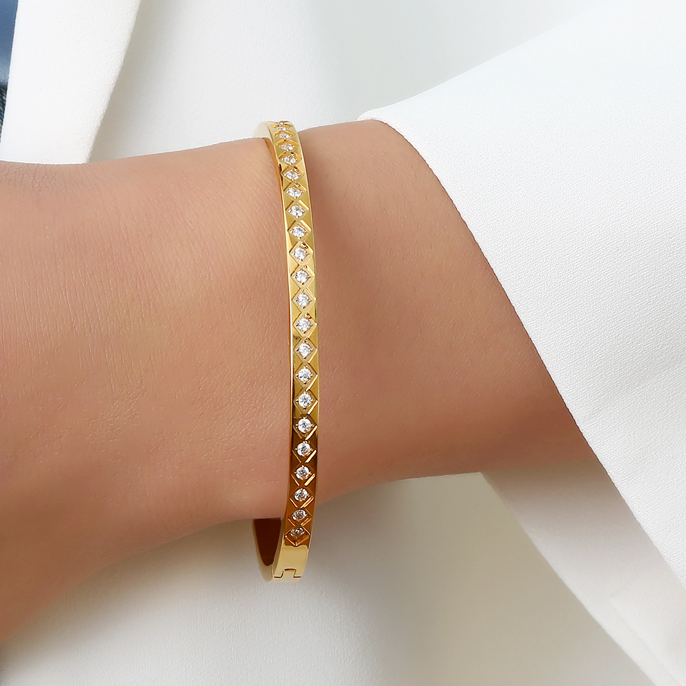 Decrease quantity for JY02FF European And American INS Style Light Luxury Zircon Golden Titanium Bracelet Cross-border Retro Fashion All-match Stainless Steel Diamond Bracelet (Material: titanium steel)