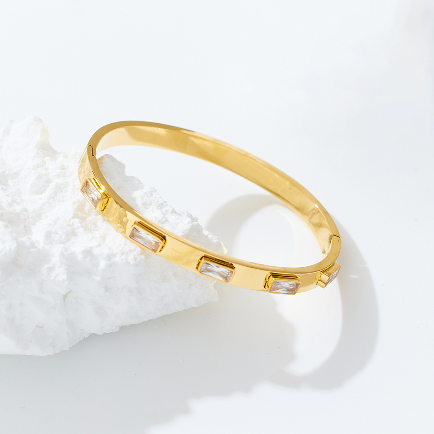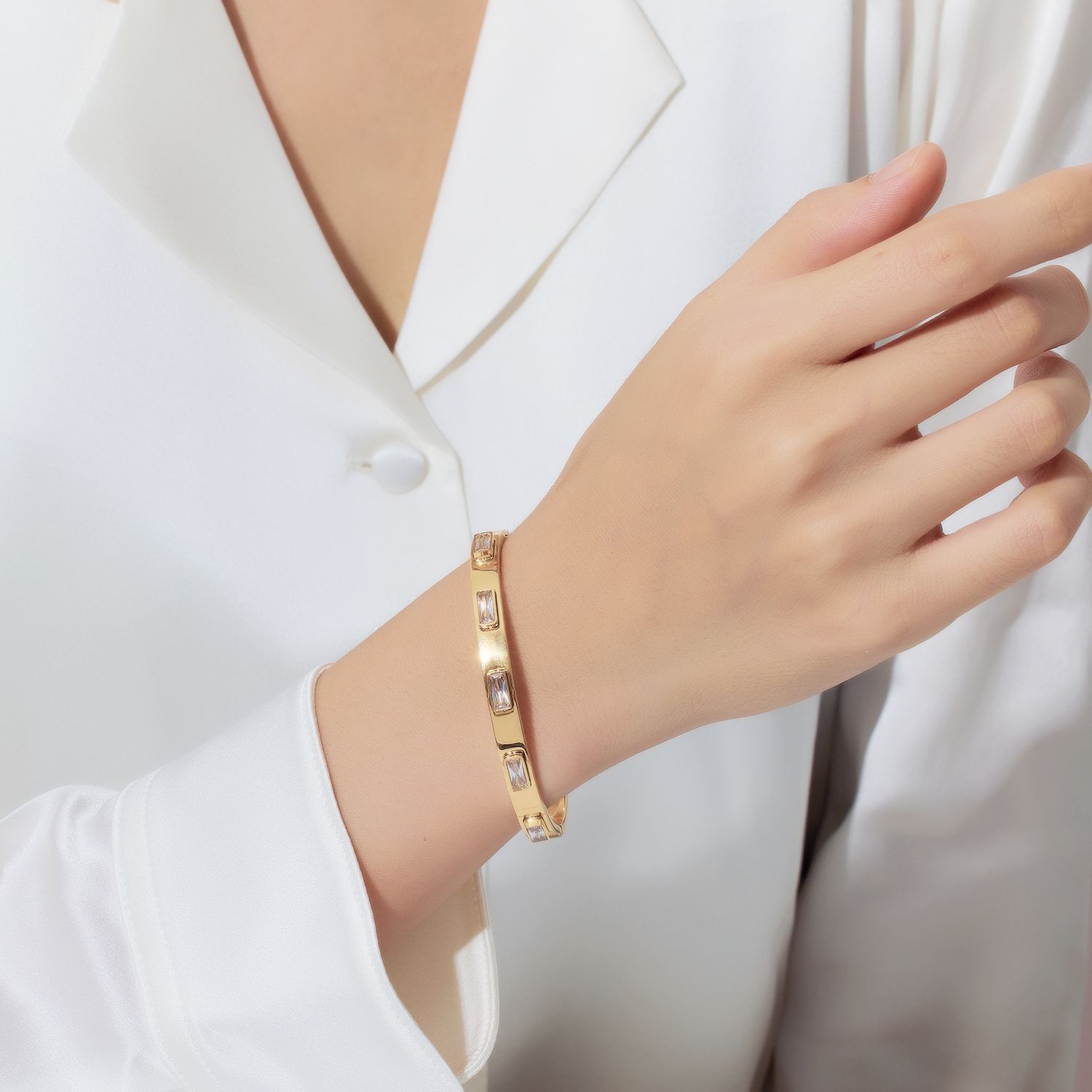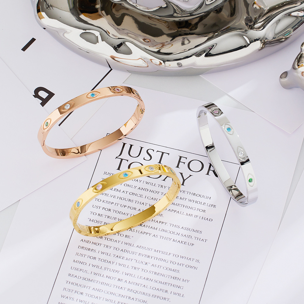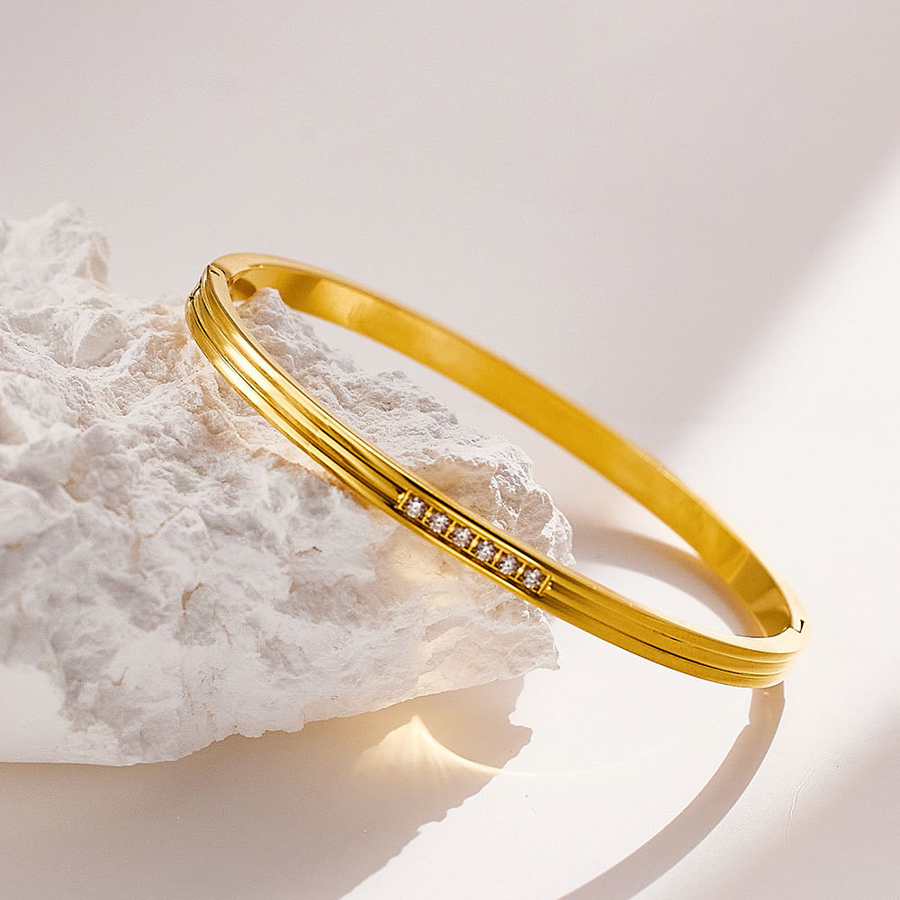 Decrease quantity for JY02FF European And American INS Style Light Luxury Zircon Golden Titanium Bracelet Cross-border Retro Fashion All-match Stainless Steel Diamond Bracelet (Material: titanium steel)
