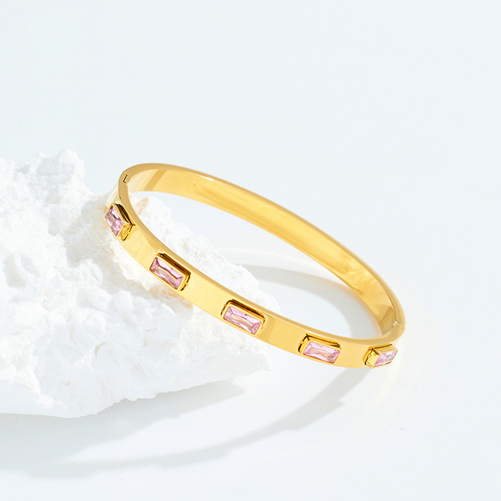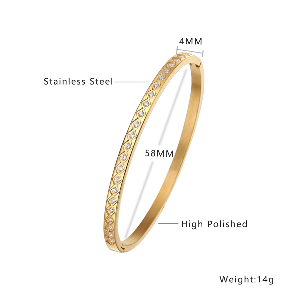 JY02FF European And American INS Style Light Luxury Zircon Golden Titanium Bracelet Cross-border Retro Fashion All-match Stainless Steel Diamond Bracelet (Material: titanium steel)