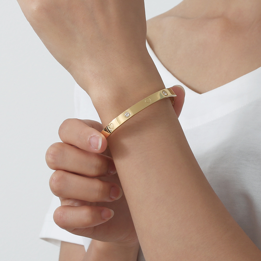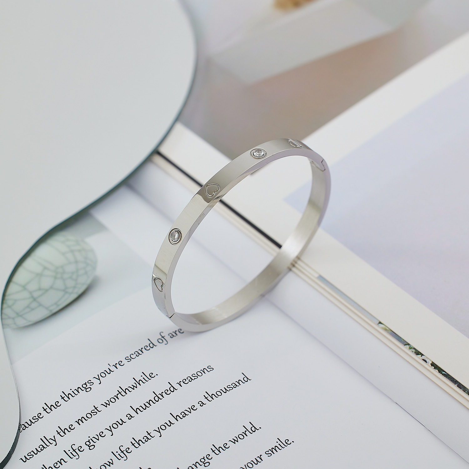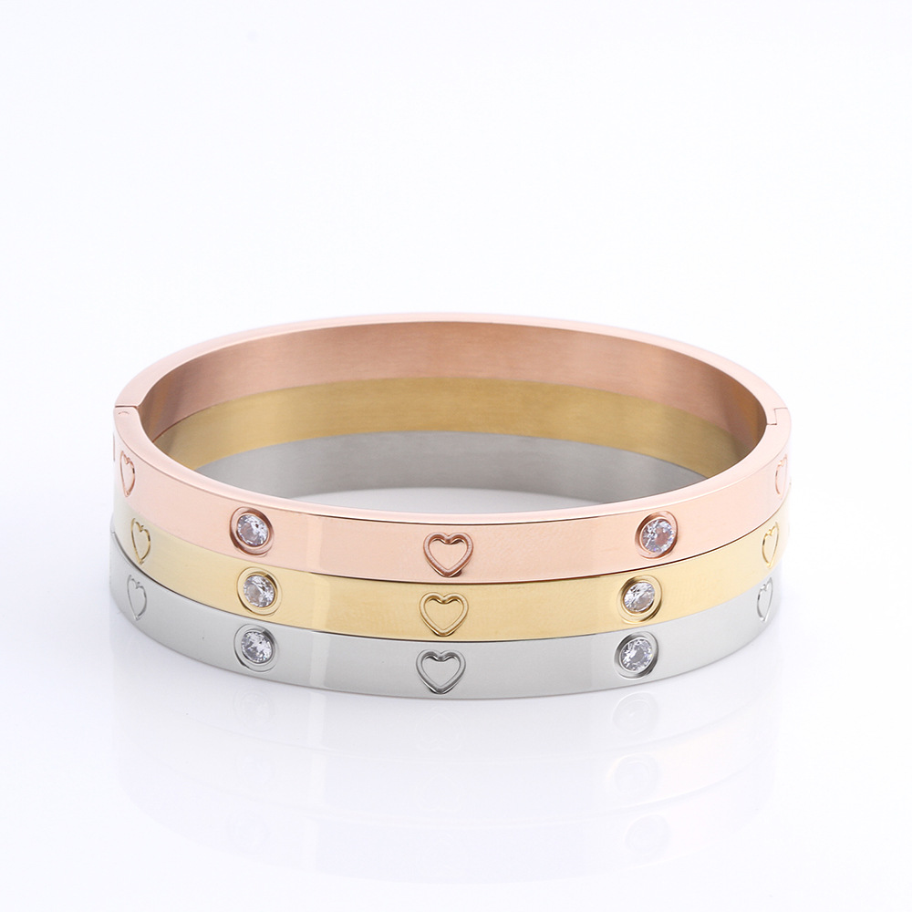 Decrease quantity for JY02FF Fashion Heart-shaped Bracelet Peach Heart Buckle Stainless Steel Bracelet Diamond Love Titanium Steel Bracelet (Material: titanium steel)