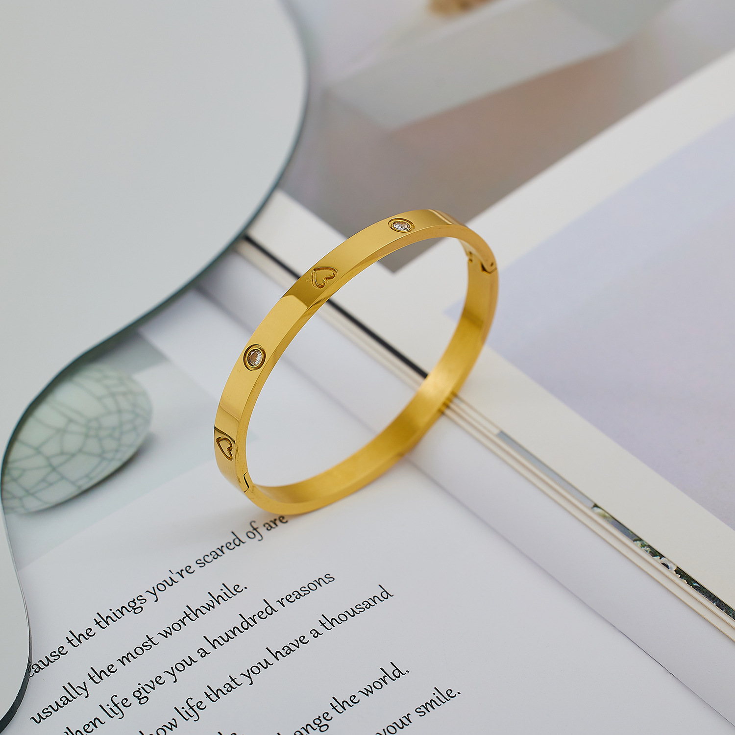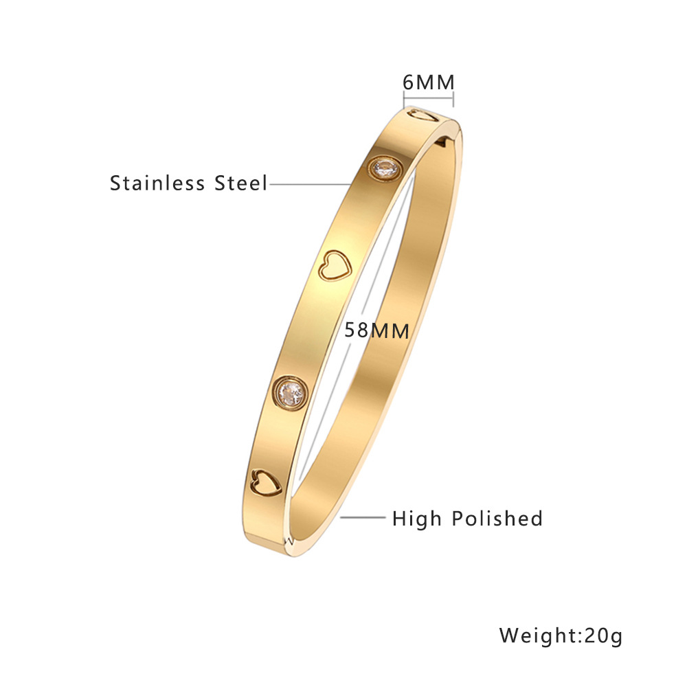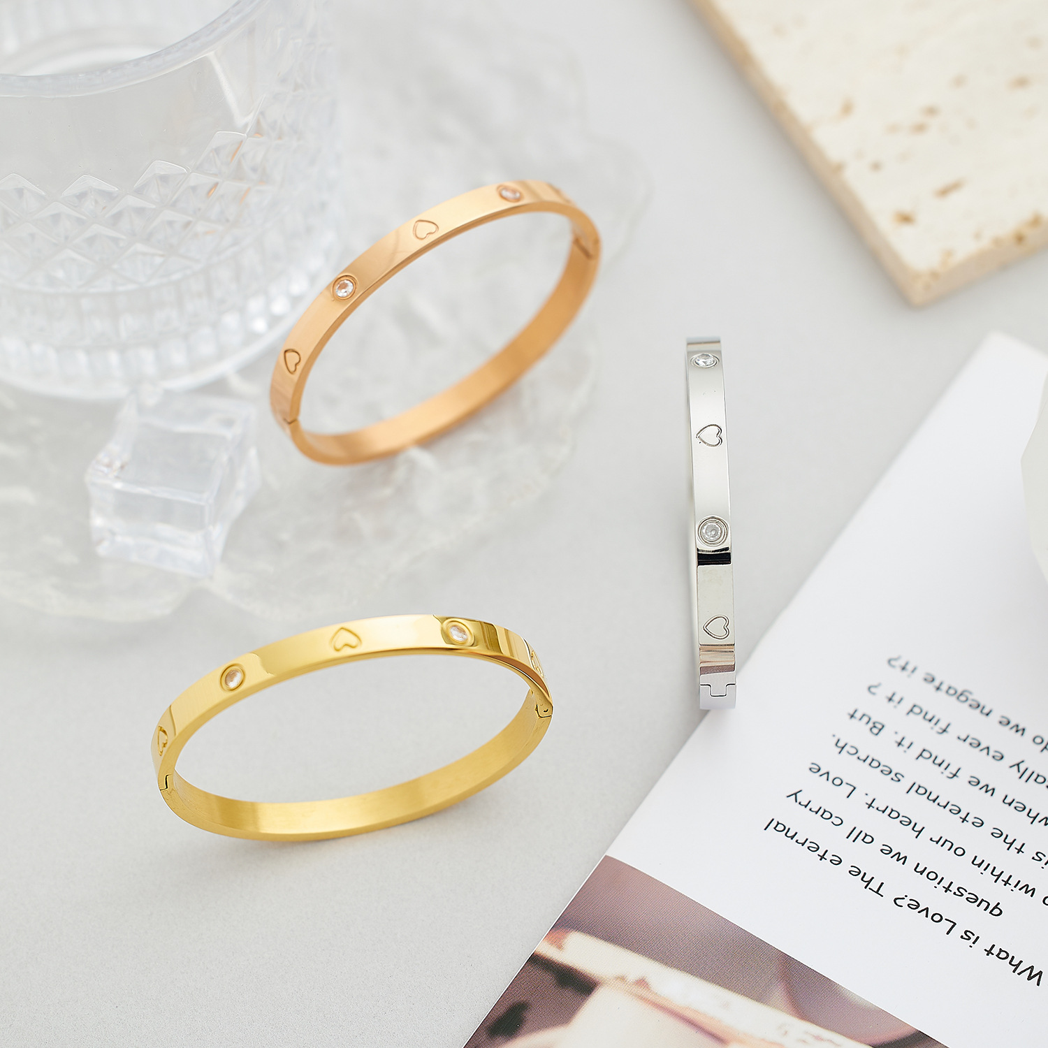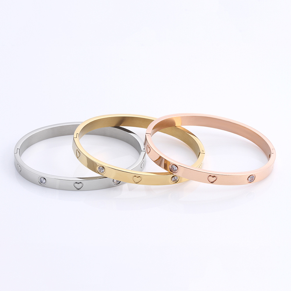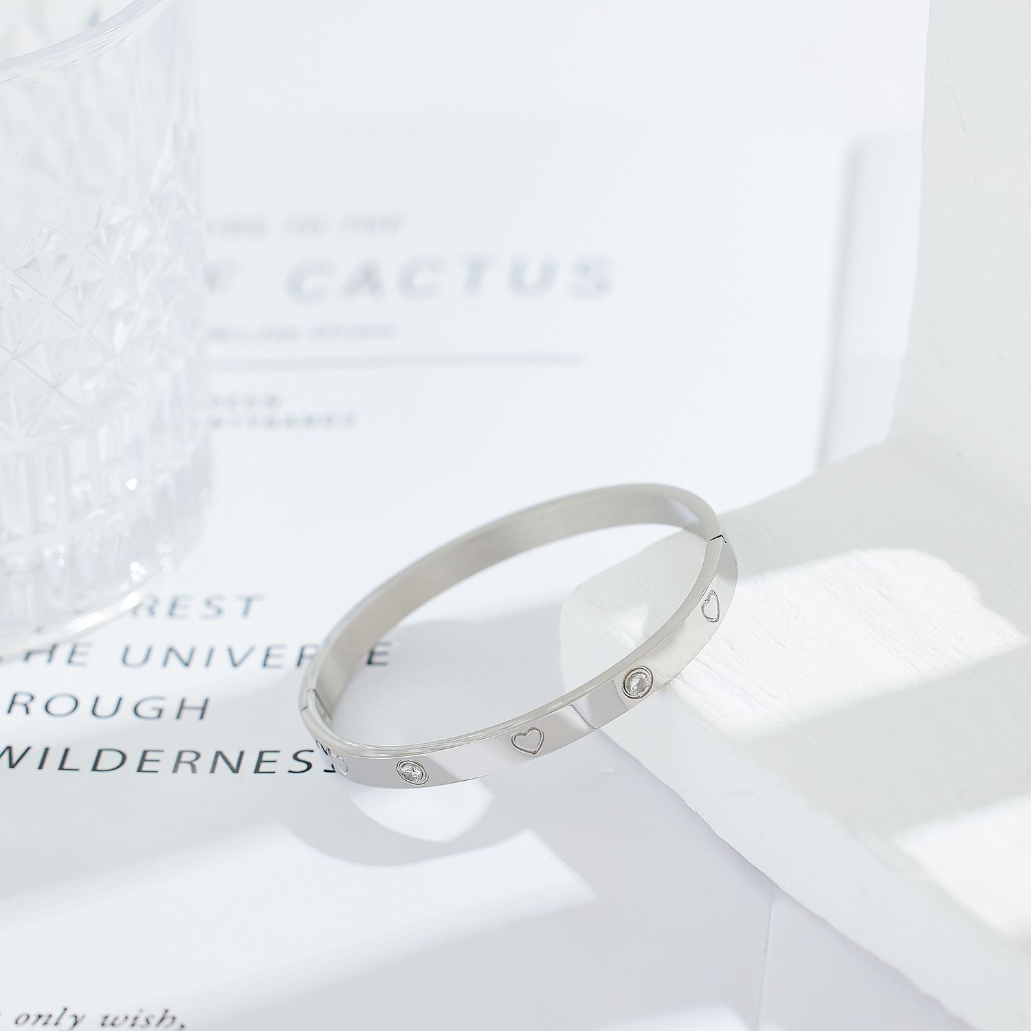 JY02FF Fashion Heart-shaped Bracelet Peach Heart Buckle Stainless Steel Bracelet Diamond Love Titanium Steel Bracelet (Material: titanium steel)