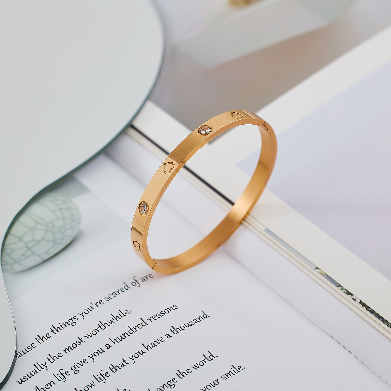 Increase quantity for JY02FF Fashion Heart-shaped Bracelet Peach Heart Buckle Stainless Steel Bracelet Diamond Love Titanium Steel Bracelet (Material: titanium steel)