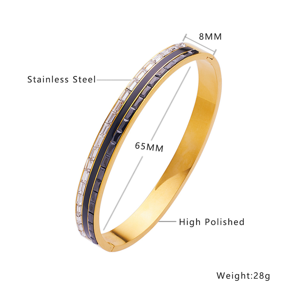 Decrease quantity for JY02FF Fashion Simple Double Row Long Square Zircon Titanium Steel Bracelet Stainless Steel Bracelet Jewelry Wholesale (Material: titanium steel)
