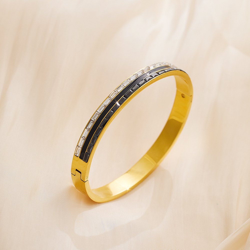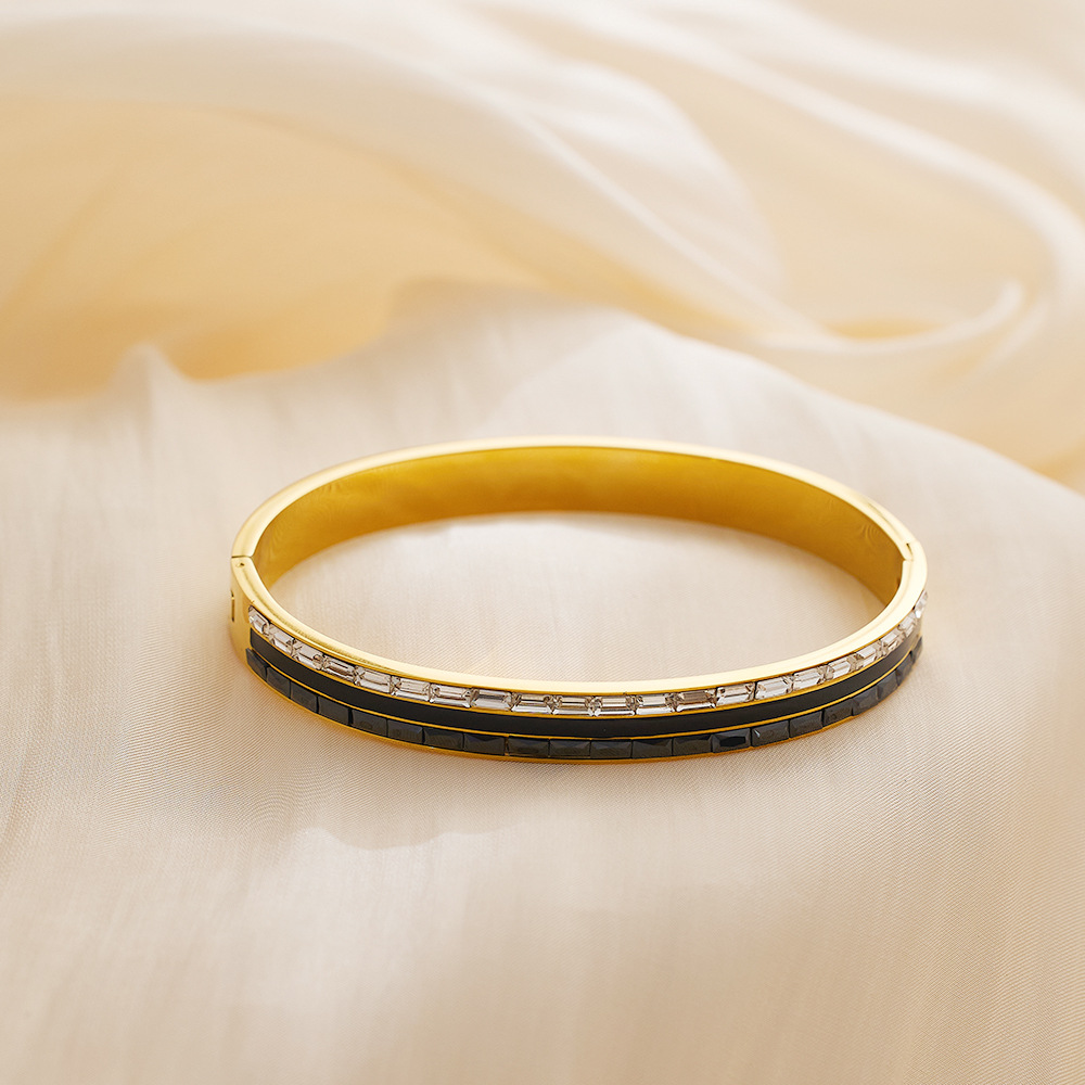 Increase quantity for JY02FF Fashion Simple Double Row Long Square Zircon Titanium Steel Bracelet Stainless Steel Bracelet Jewelry Wholesale (Material: titanium steel)