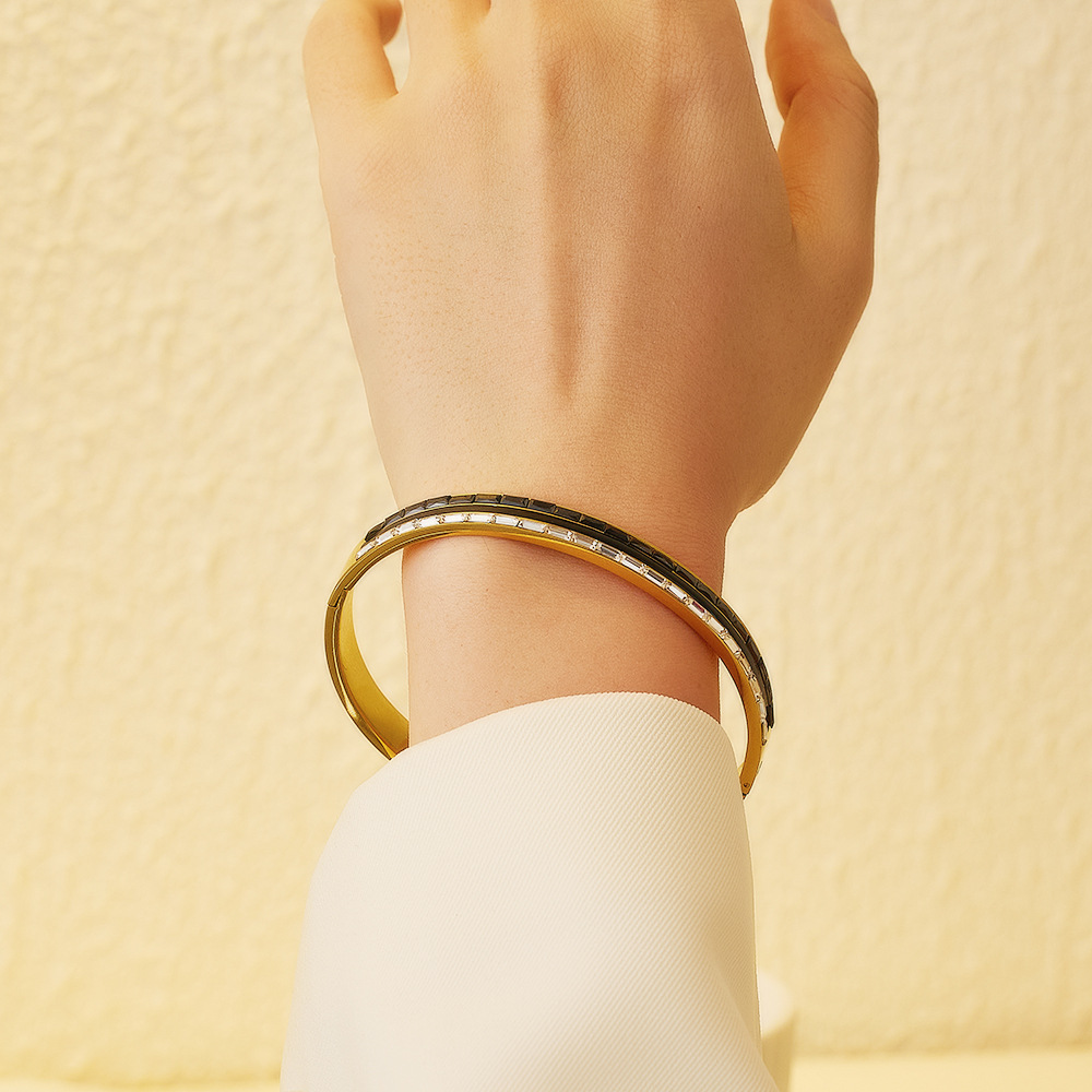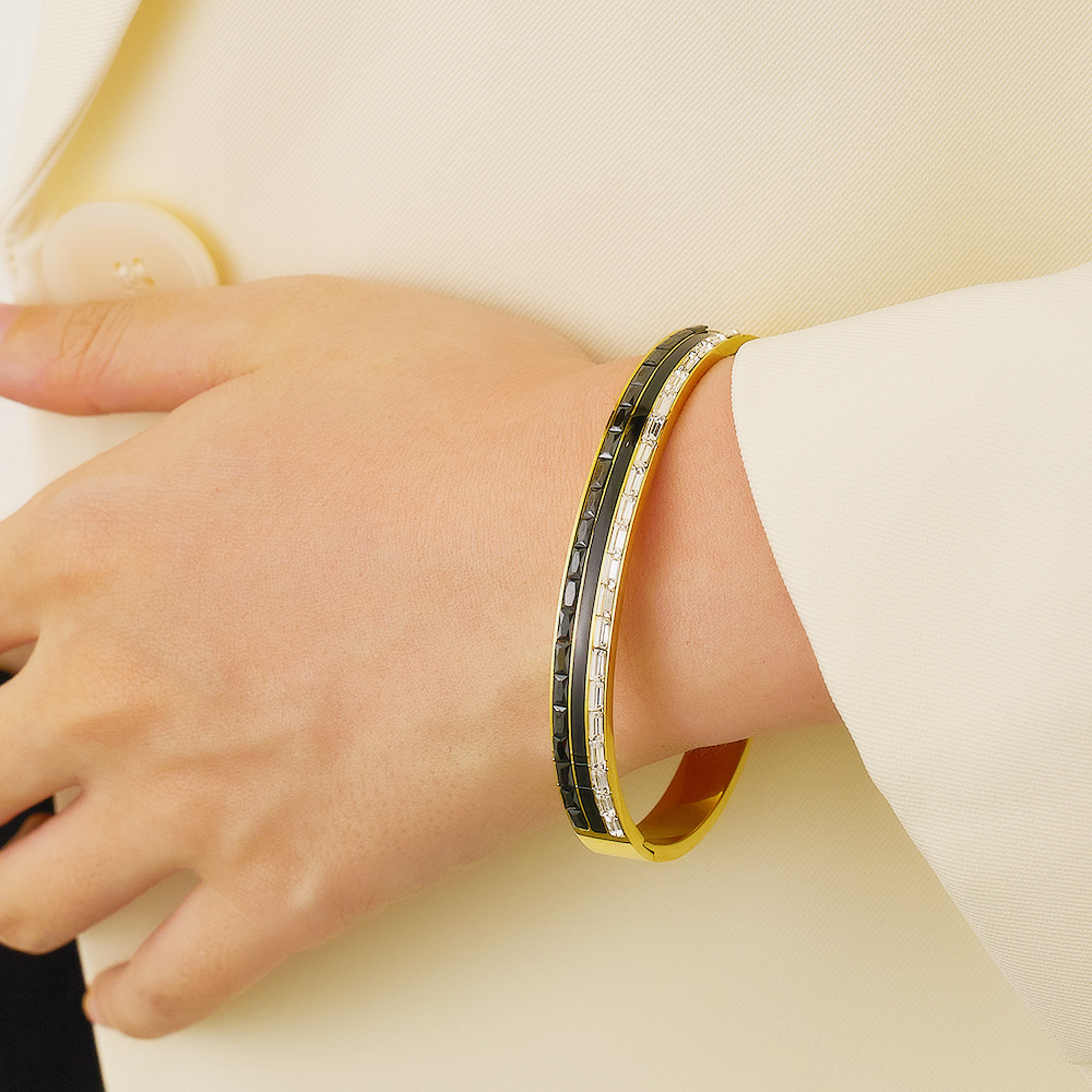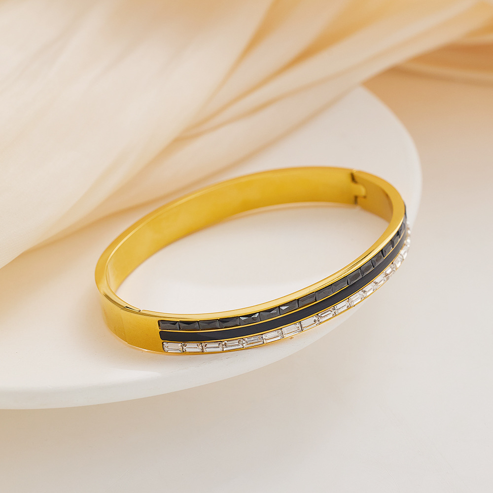 JY02FF Fashion Simple Double Row Long Square Zircon Titanium Steel Bracelet Stainless Steel Bracelet Jewelry Wholesale (Material: titanium steel)