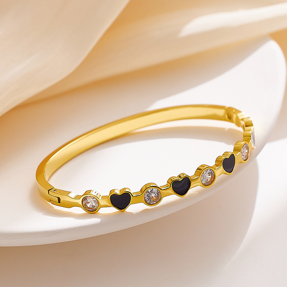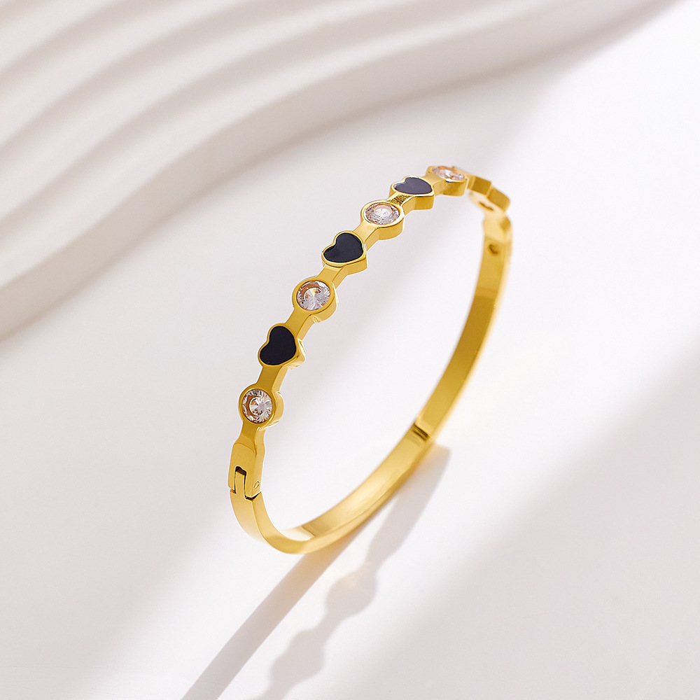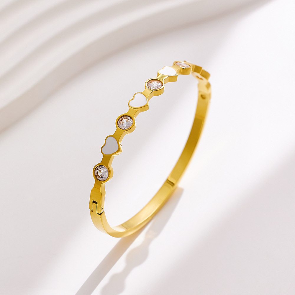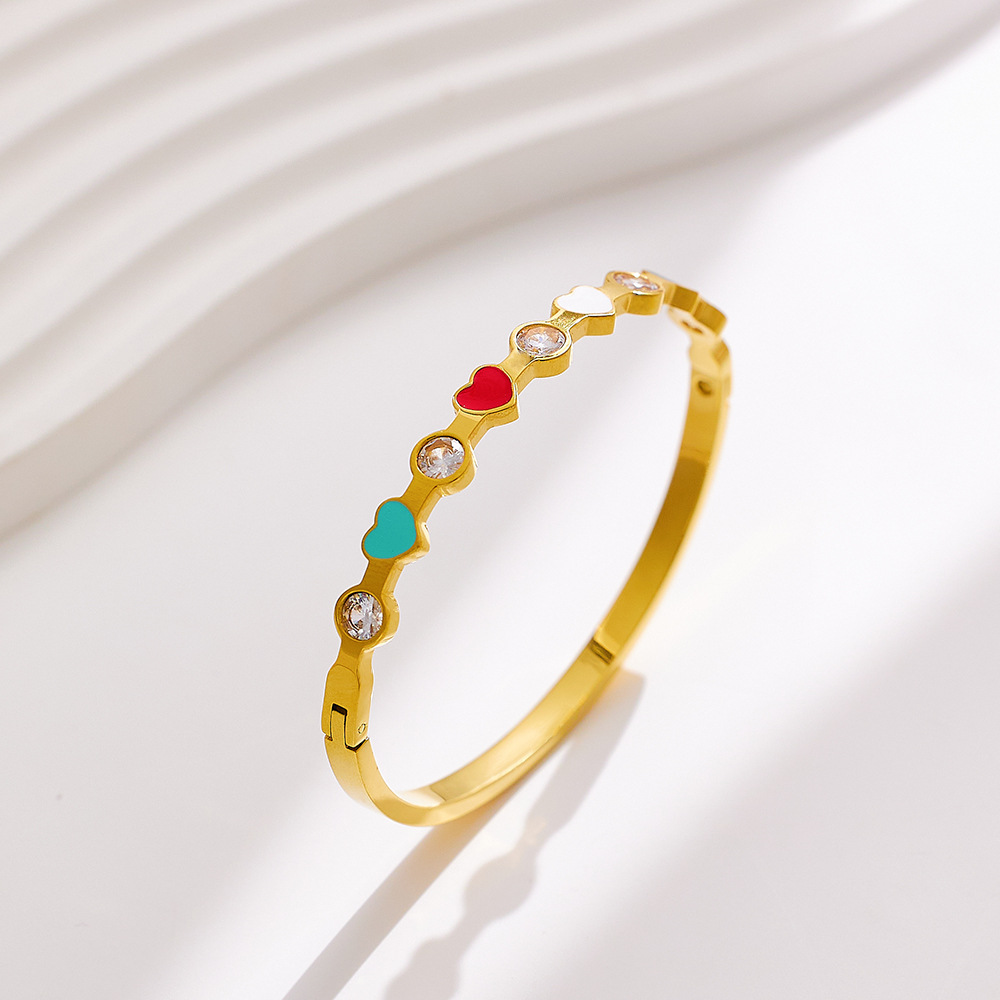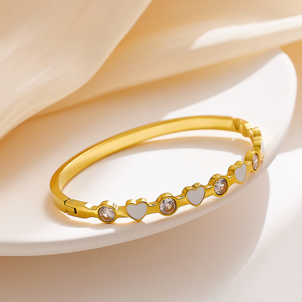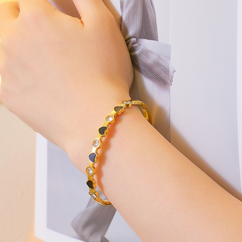 Decrease quantity for JY02FF INS Light Luxury Zircon Diamond-encrusted Stainless Steel Bracelet All-match 18k Gold Enamel Glue Dropping Love (Material: titanium steel)