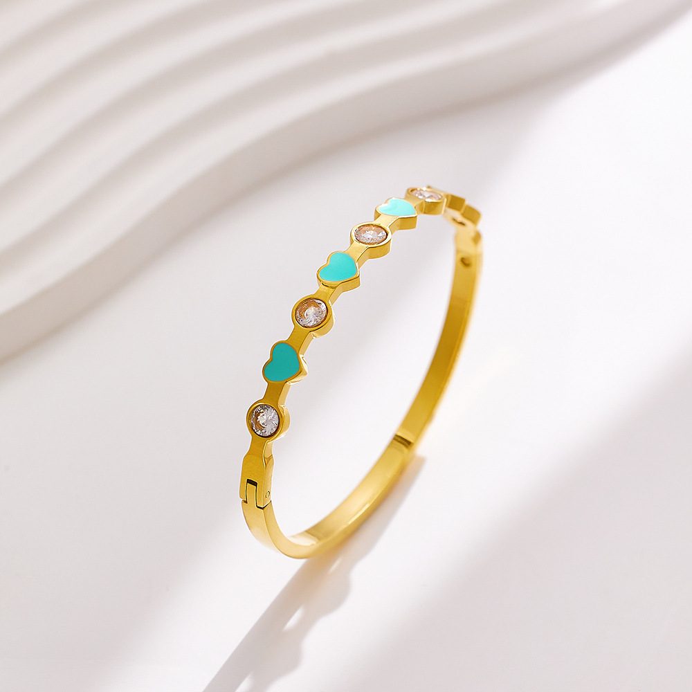 JY02FF INS Light Luxury Zircon Diamond-encrusted Stainless Steel Bracelet All-match 18k Gold Enamel Glue Dropping Love (Material: titanium steel)