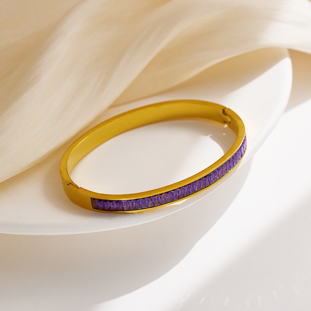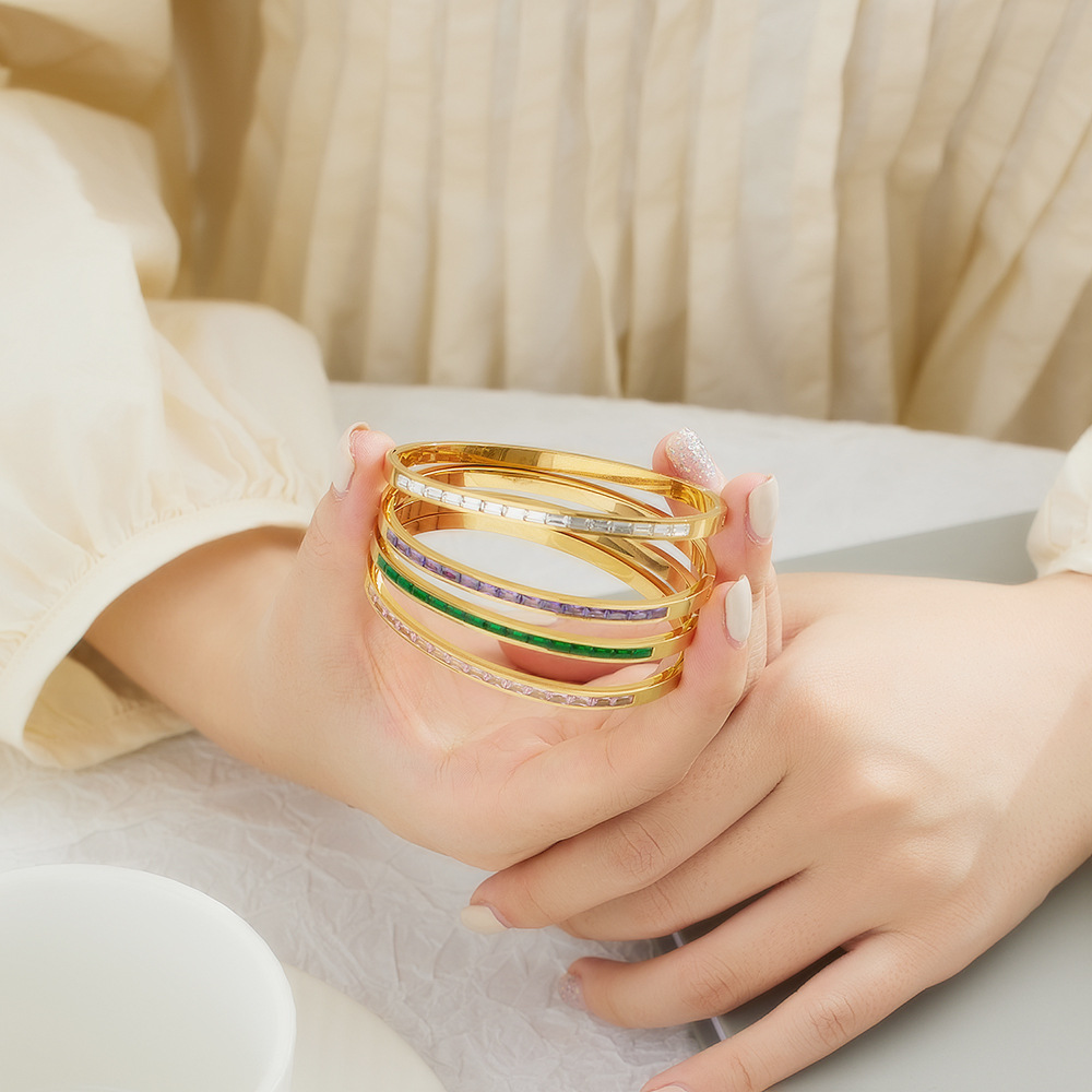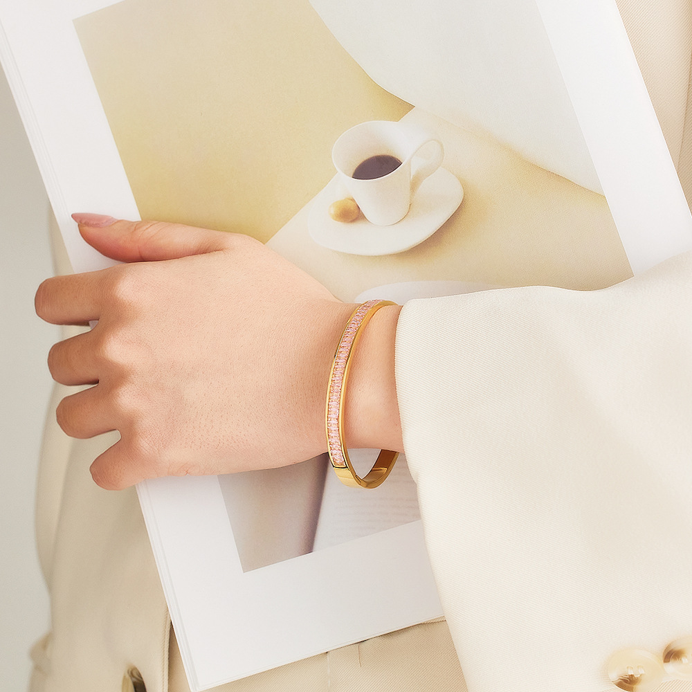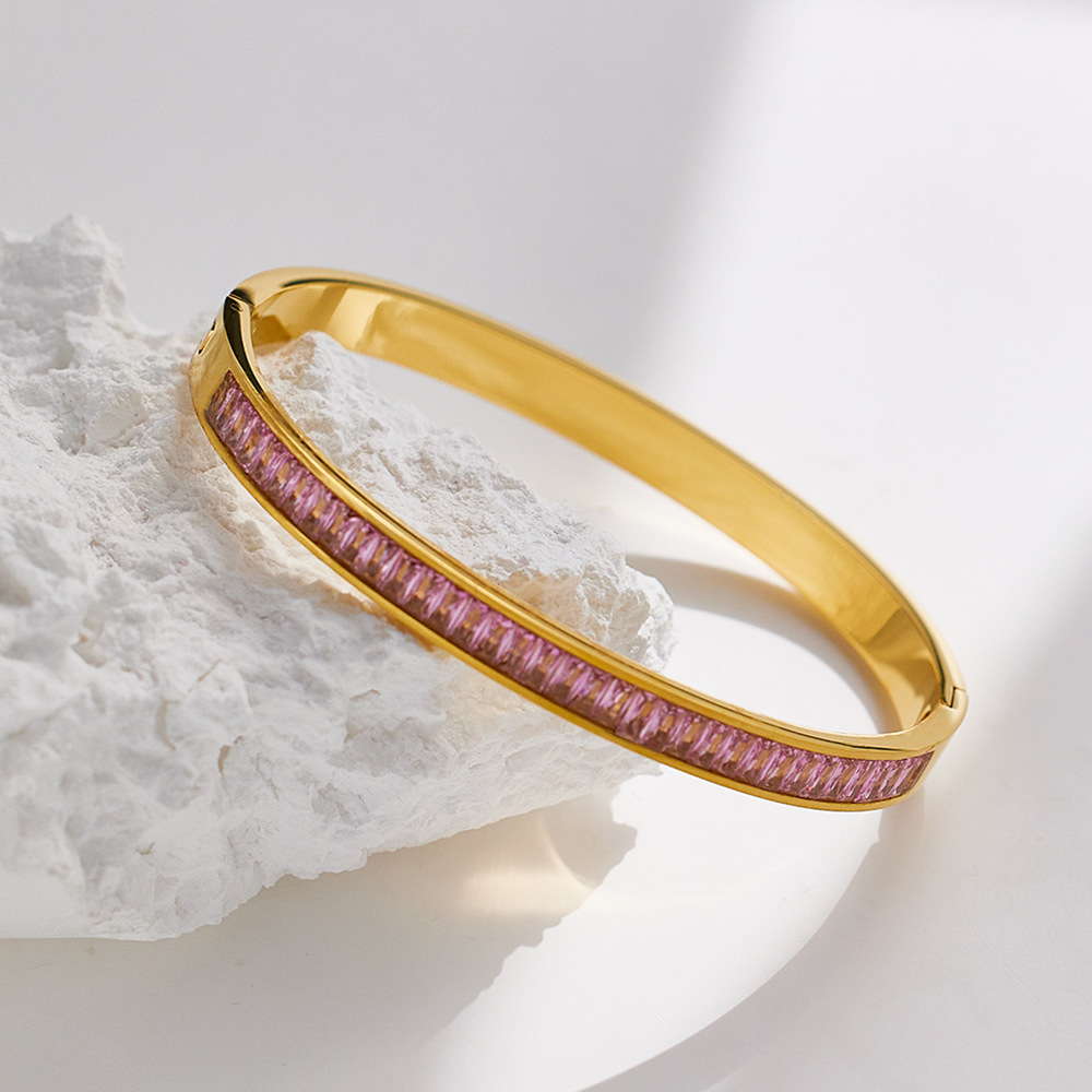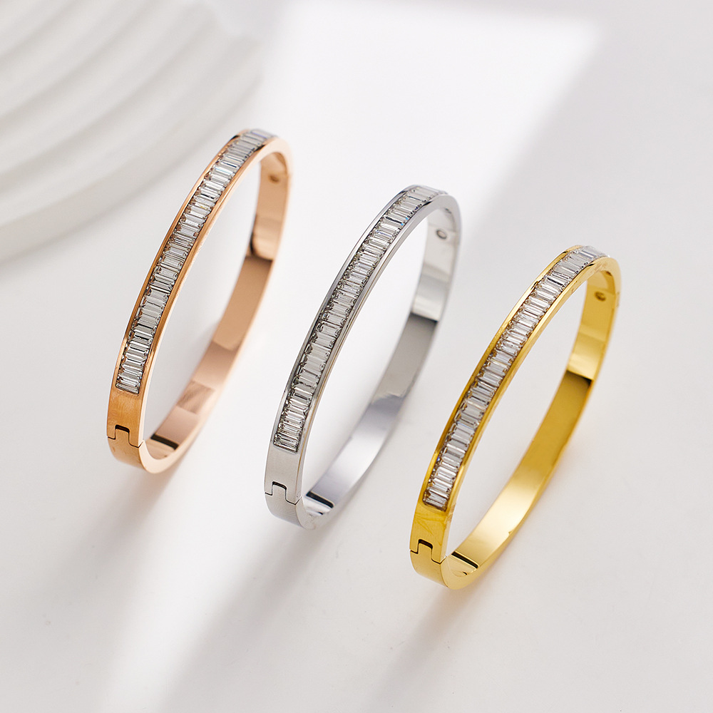JY02FF INS Retro European And American Fashion Square Diamond Titanium Steel Bracelet Cross-border Ladies French Light Luxury Color Diamond Stainless Steel Bracelet (Material: titanium steel)