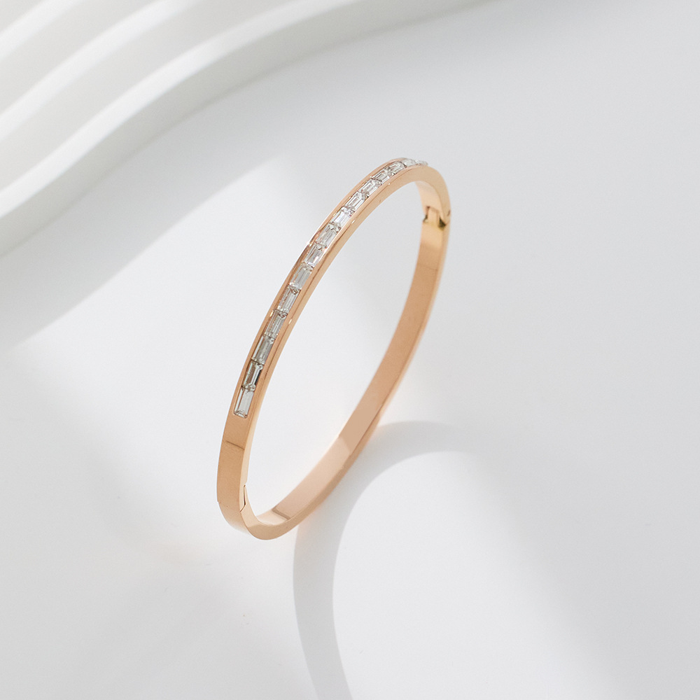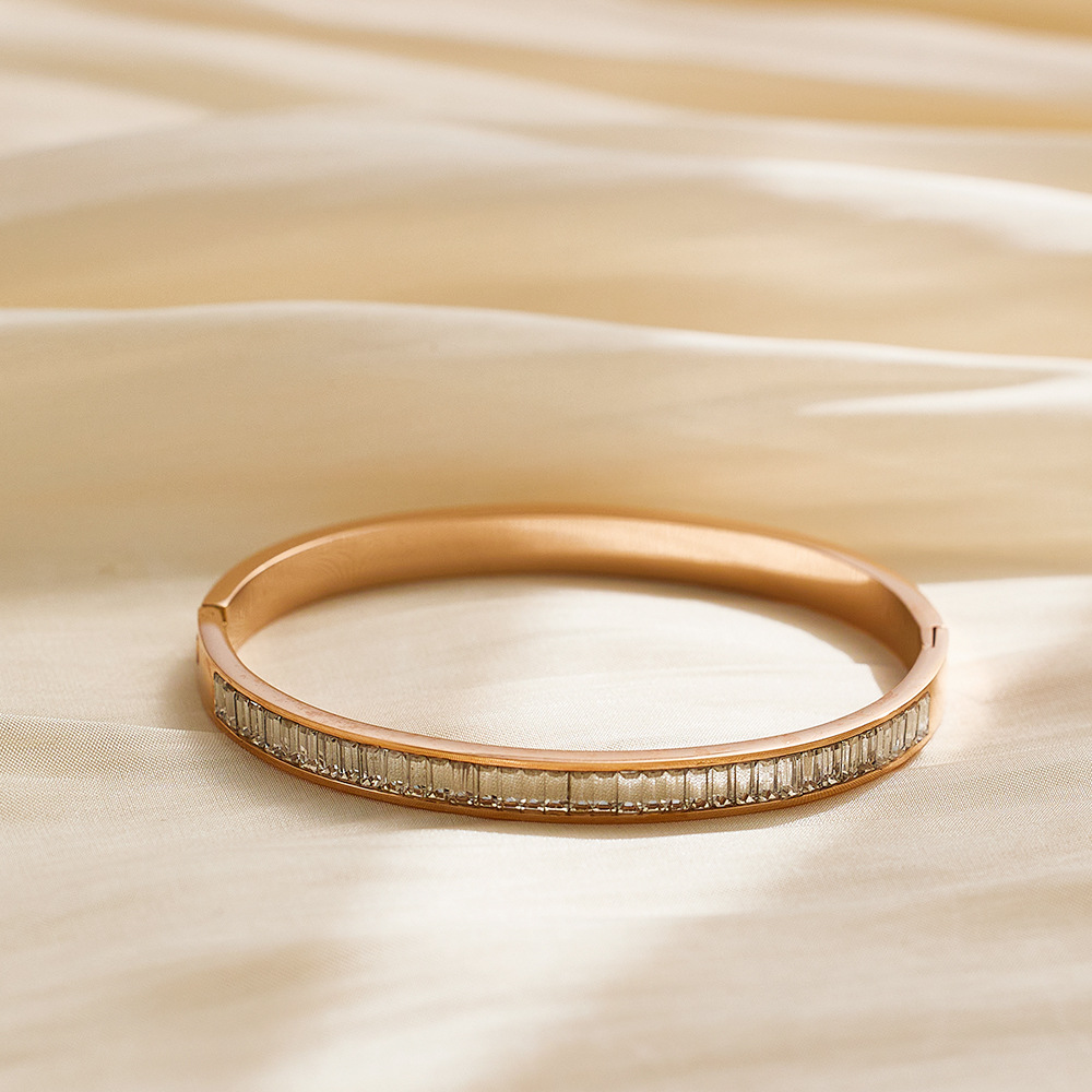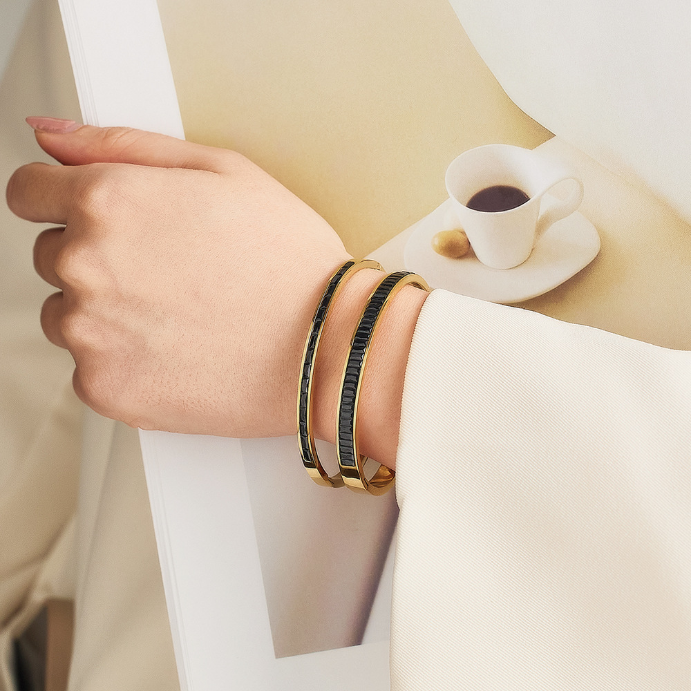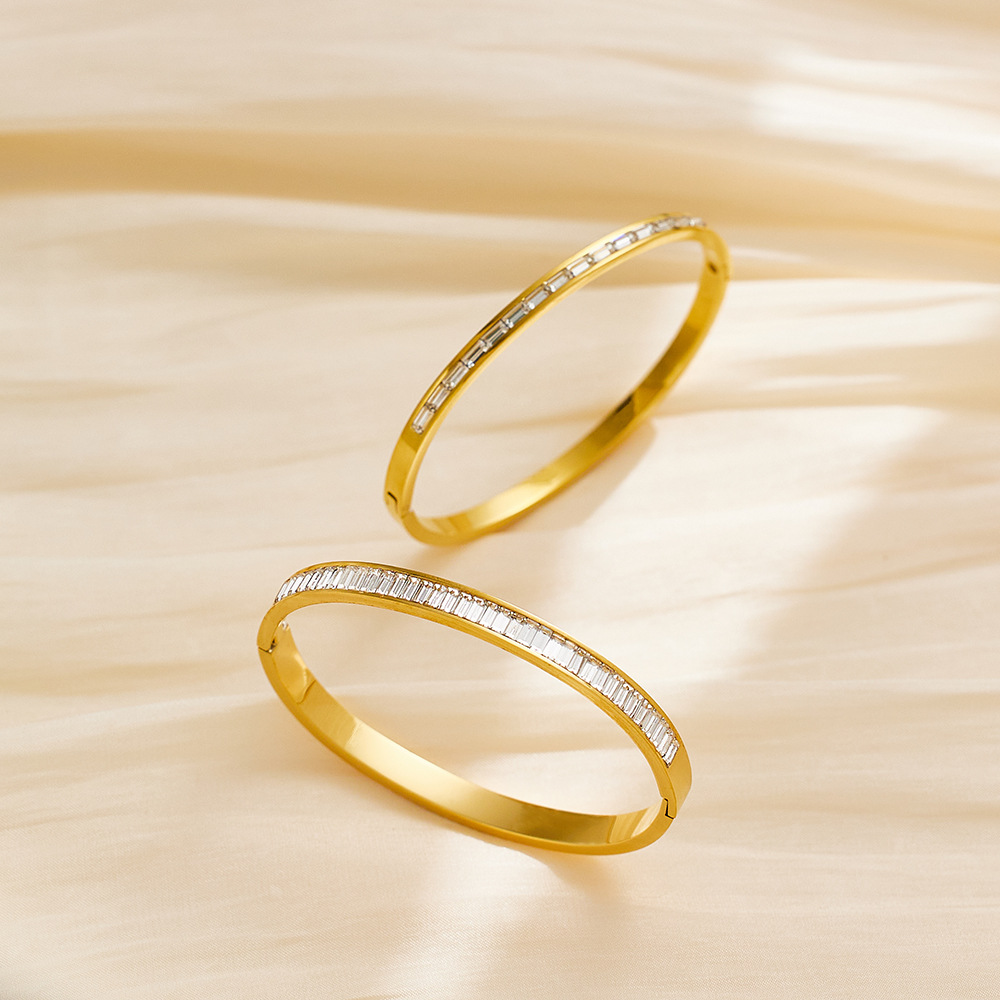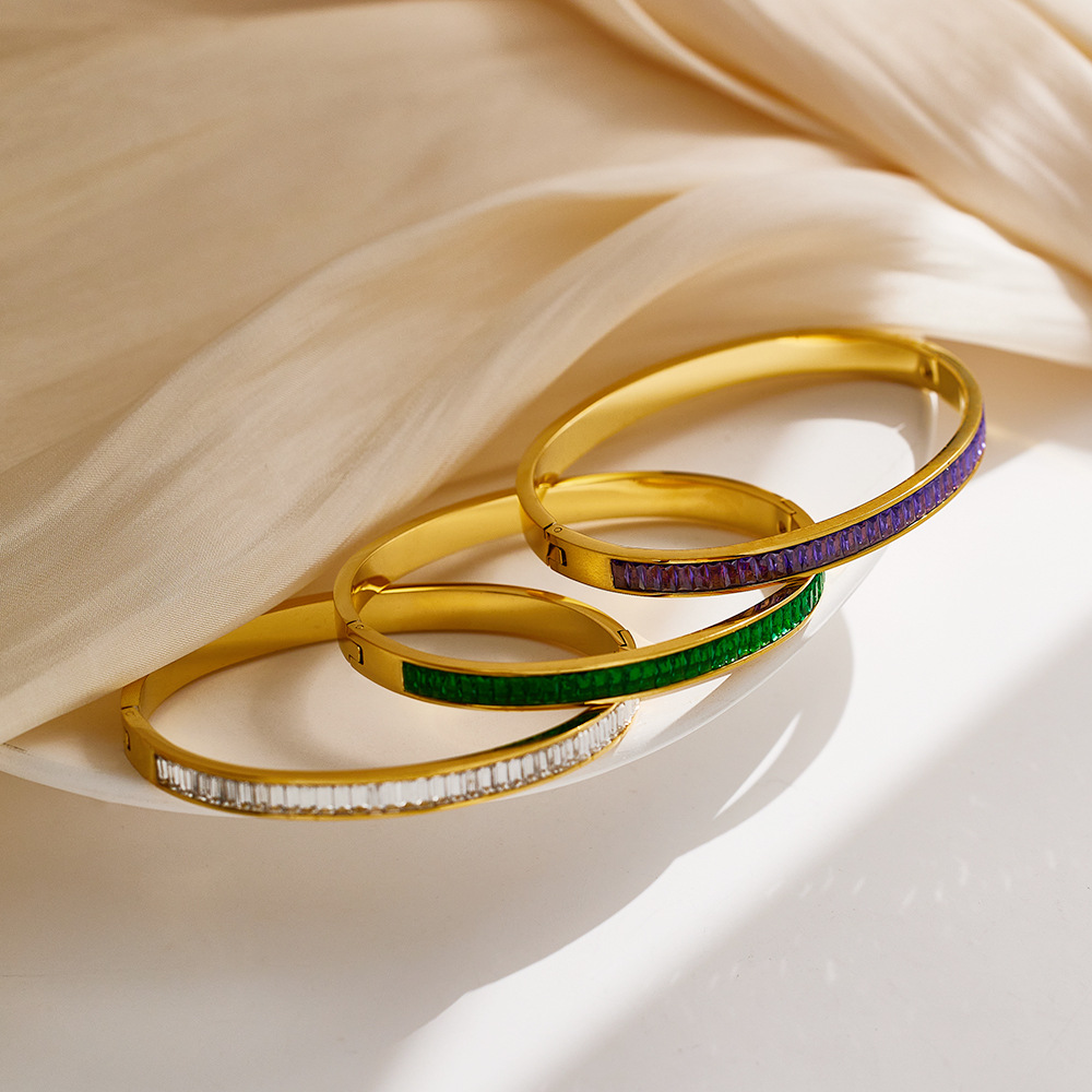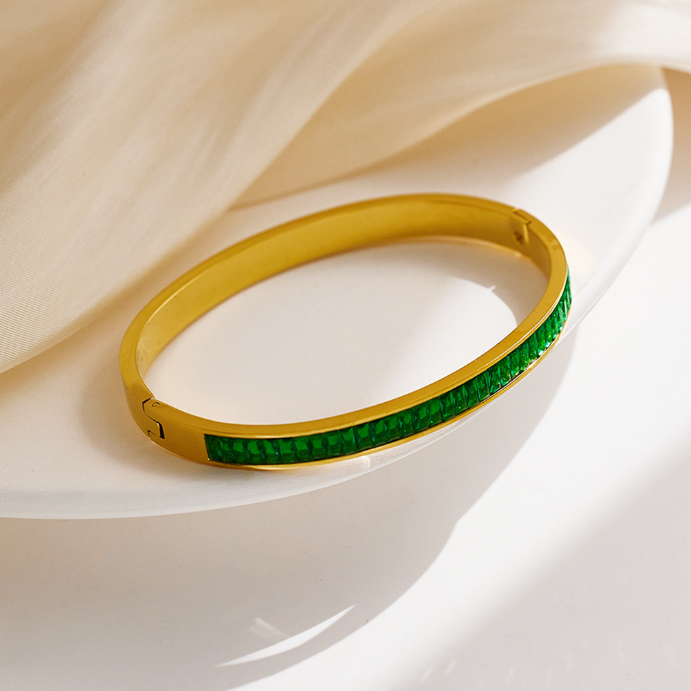 JY02FF INS Retro European And American Fashion Square Diamond Titanium Steel Bracelet Cross-border Ladies French Light Luxury Color Diamond Stainless Steel Bracelet (Material: titanium steel)