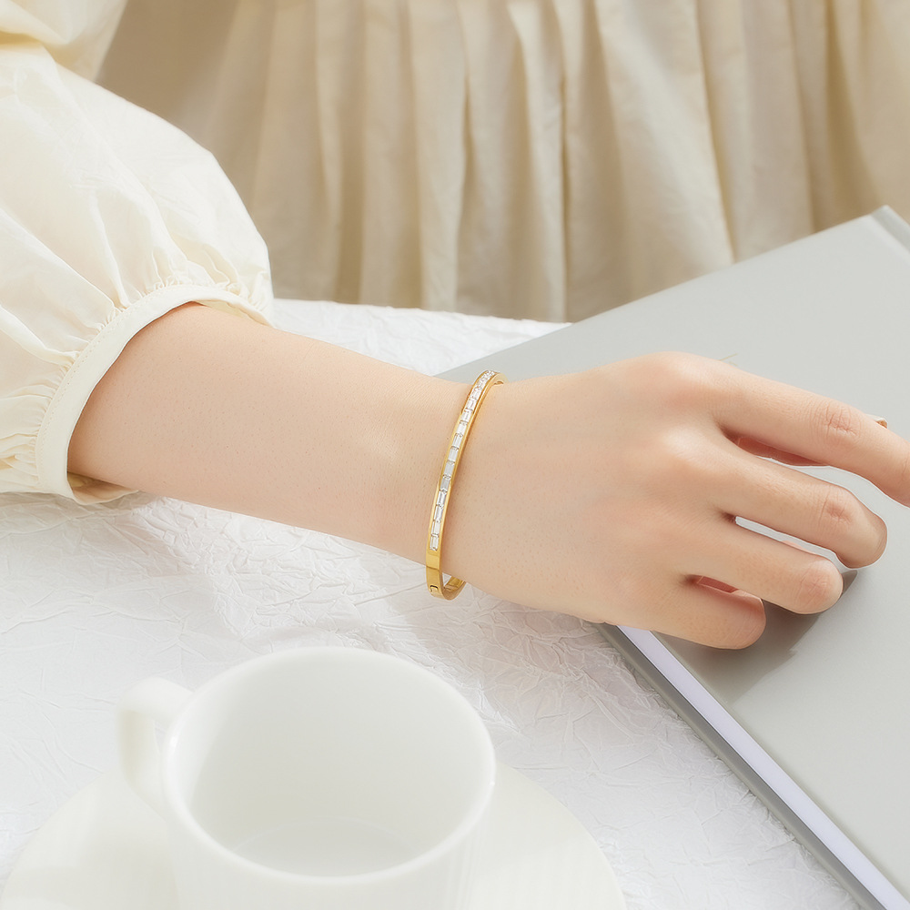 Decrease quantity for JY02FF INS Retro European And American Fashion Square Diamond Titanium Steel Bracelet Cross-border Ladies French Light Luxury Color Diamond Stainless Steel Bracelet (Material: titanium steel)