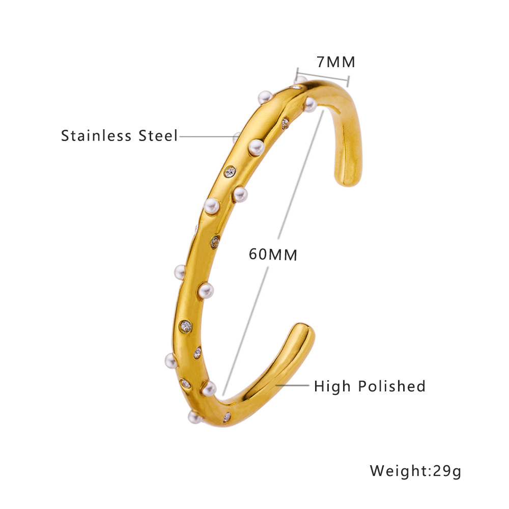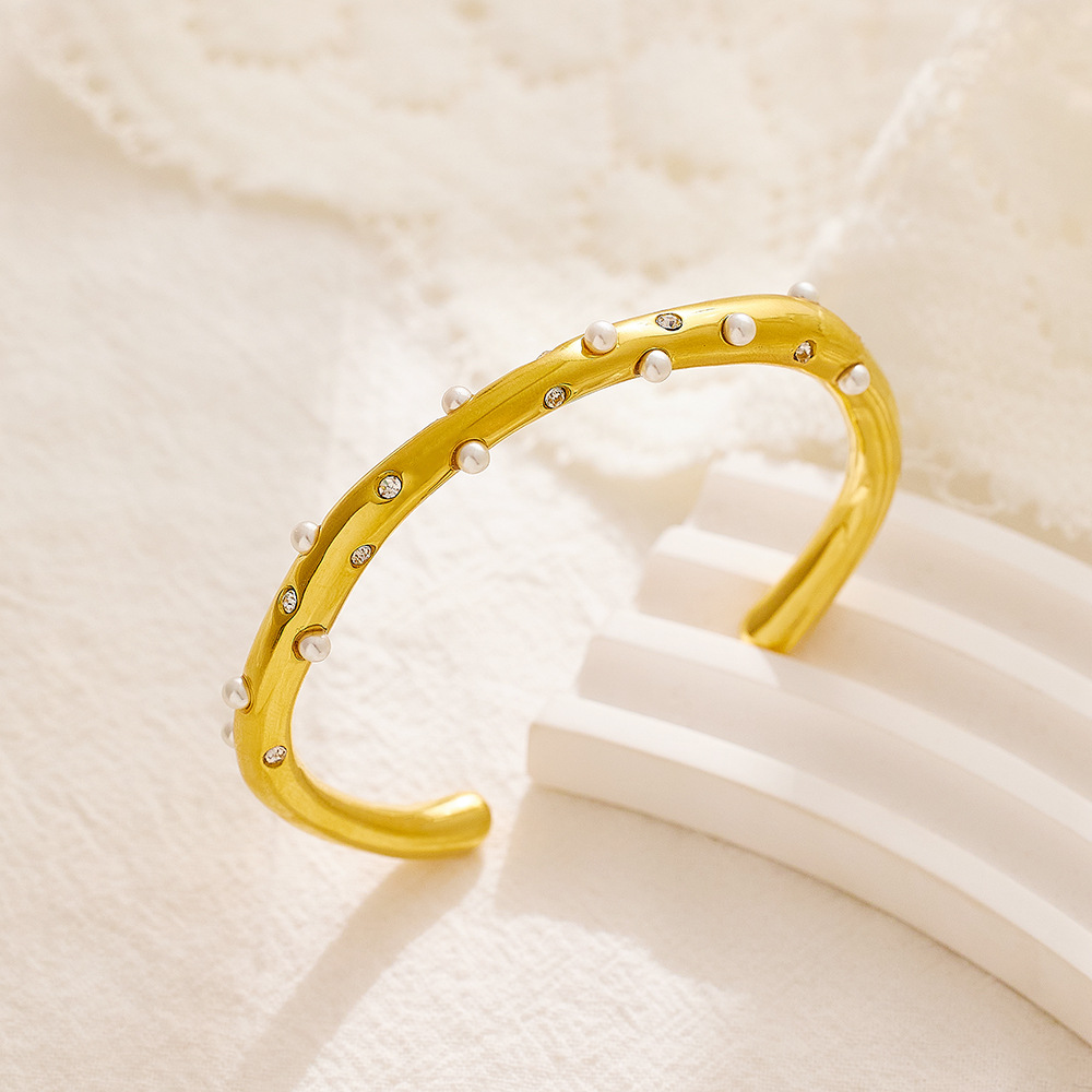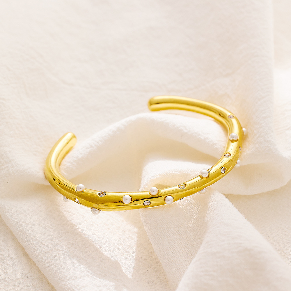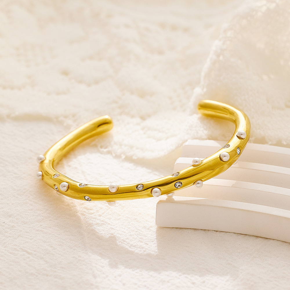 Decrease quantity for JY02FF New Electroplated 18k Gold Inlaid Pearl Zircon Bracelet Light Luxury Fashion Joker Titanium Steel Bracelet Women Wholesale (Material: titanium steel)