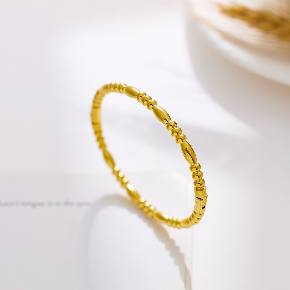 JY02FF New Simple All-match Bracelet Plated 18k Gold Drop Bracelet Gold Bamboo Titanium Steel Plain Face Bracelet For Women (Material: titanium steel)