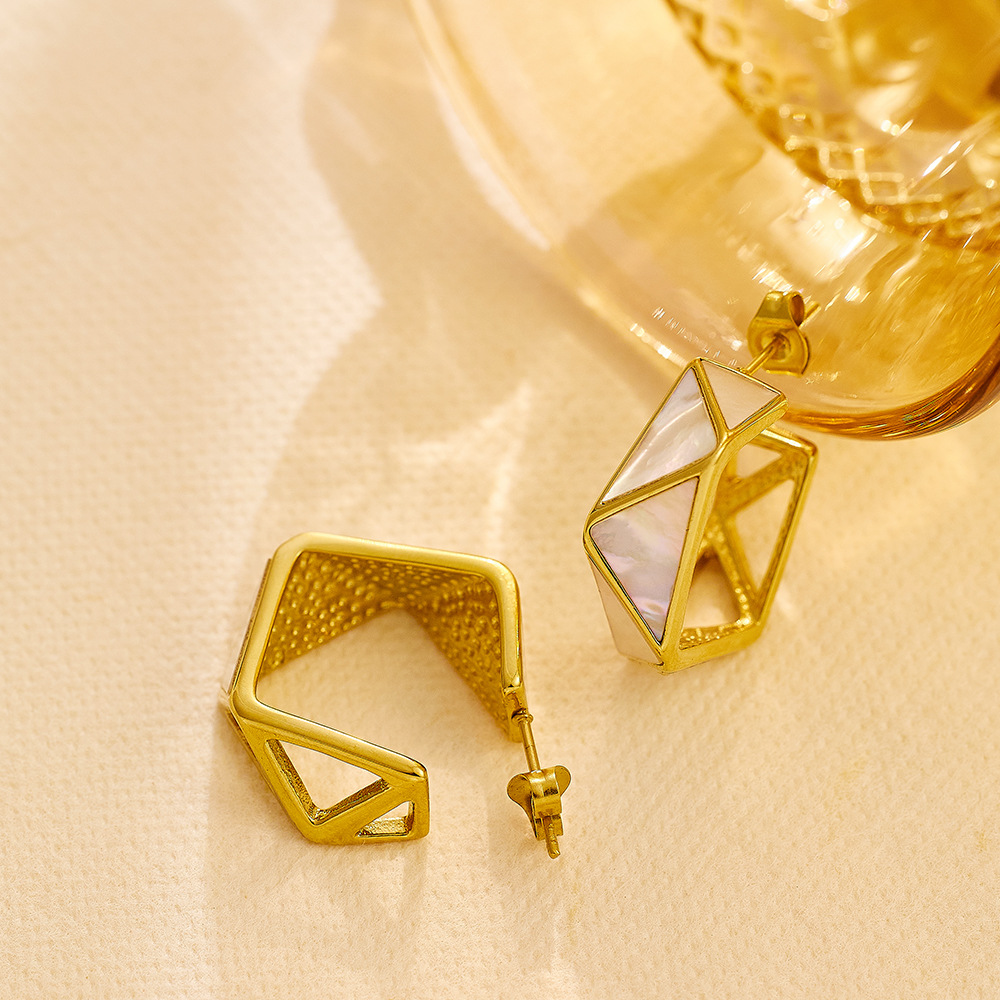 JY02FF Retro Simple Earrings Wholesale Personality High Sense Earrings Geometric Stitching Titanium Steel Earrings Earrings Women (Material: titanium steel)