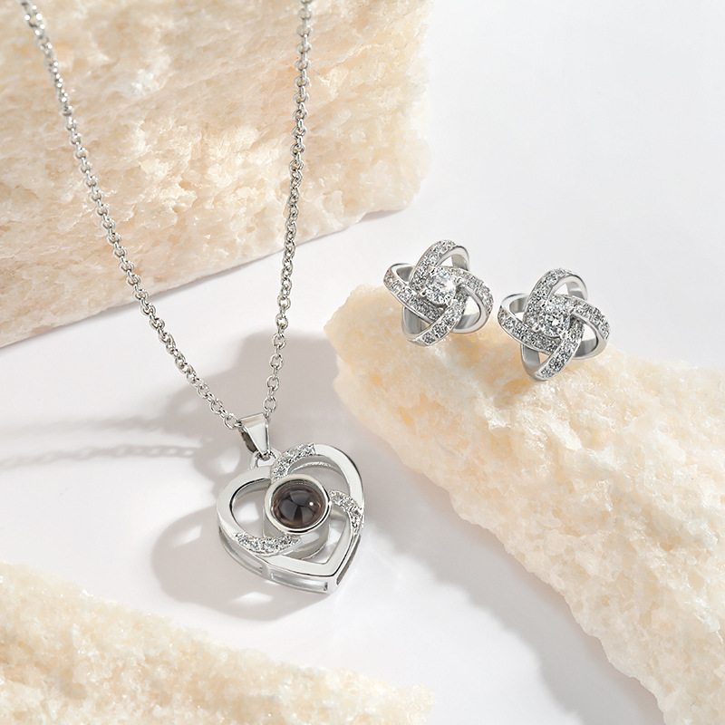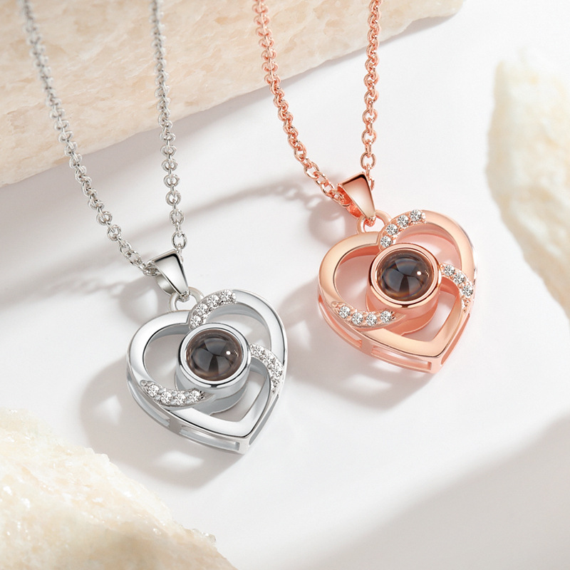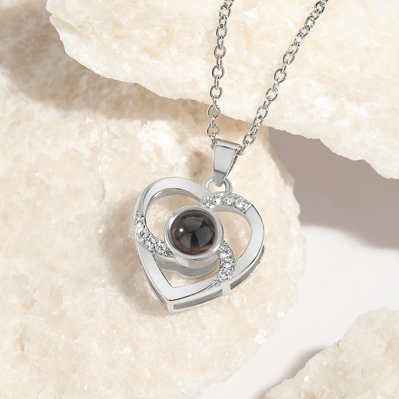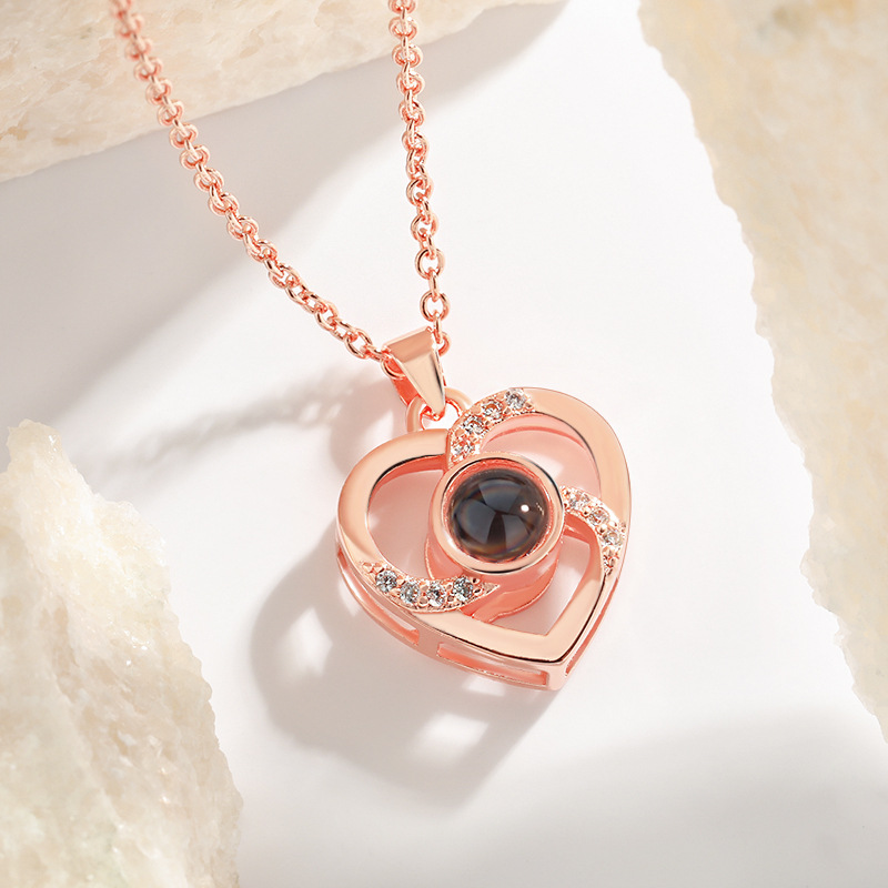 AXx120 Projection Stone Pendant Clavicle Chain Amazon One Hundred Languages I Love You Hollow Love Necklace