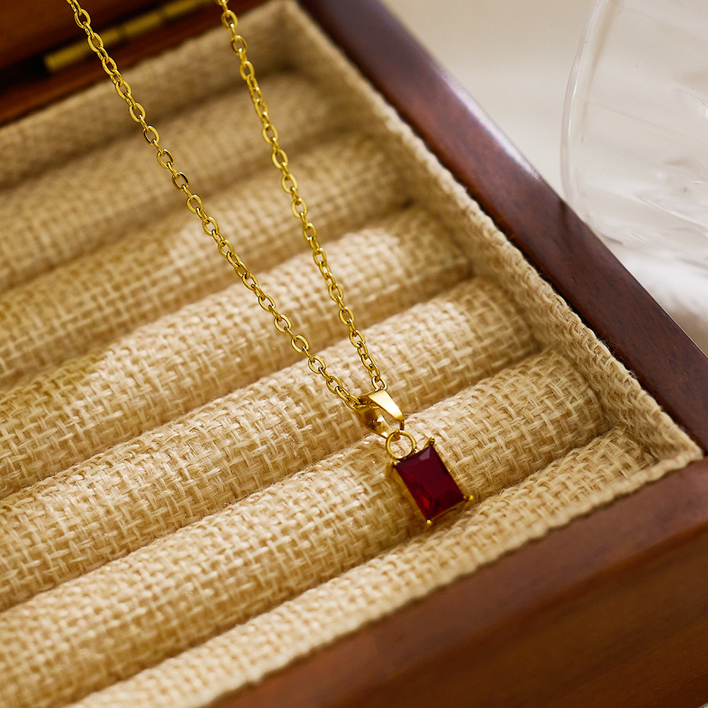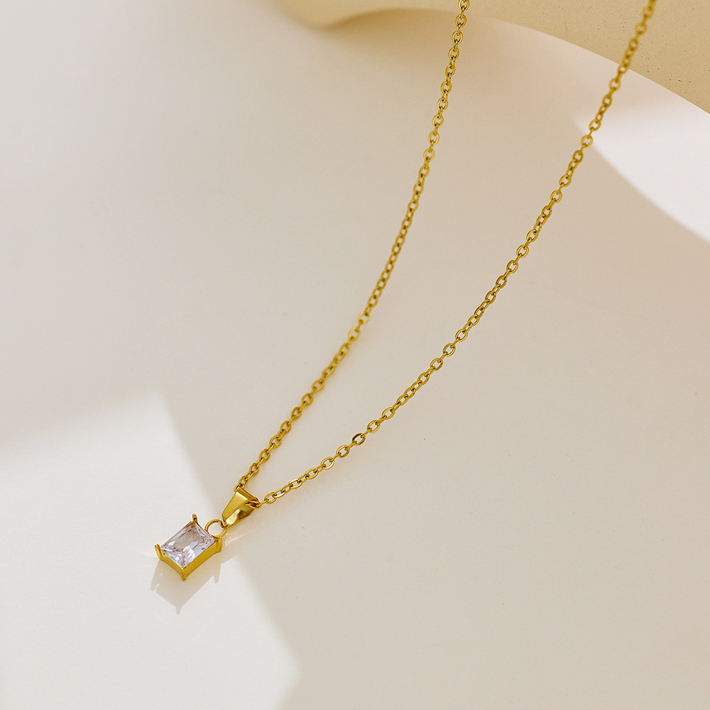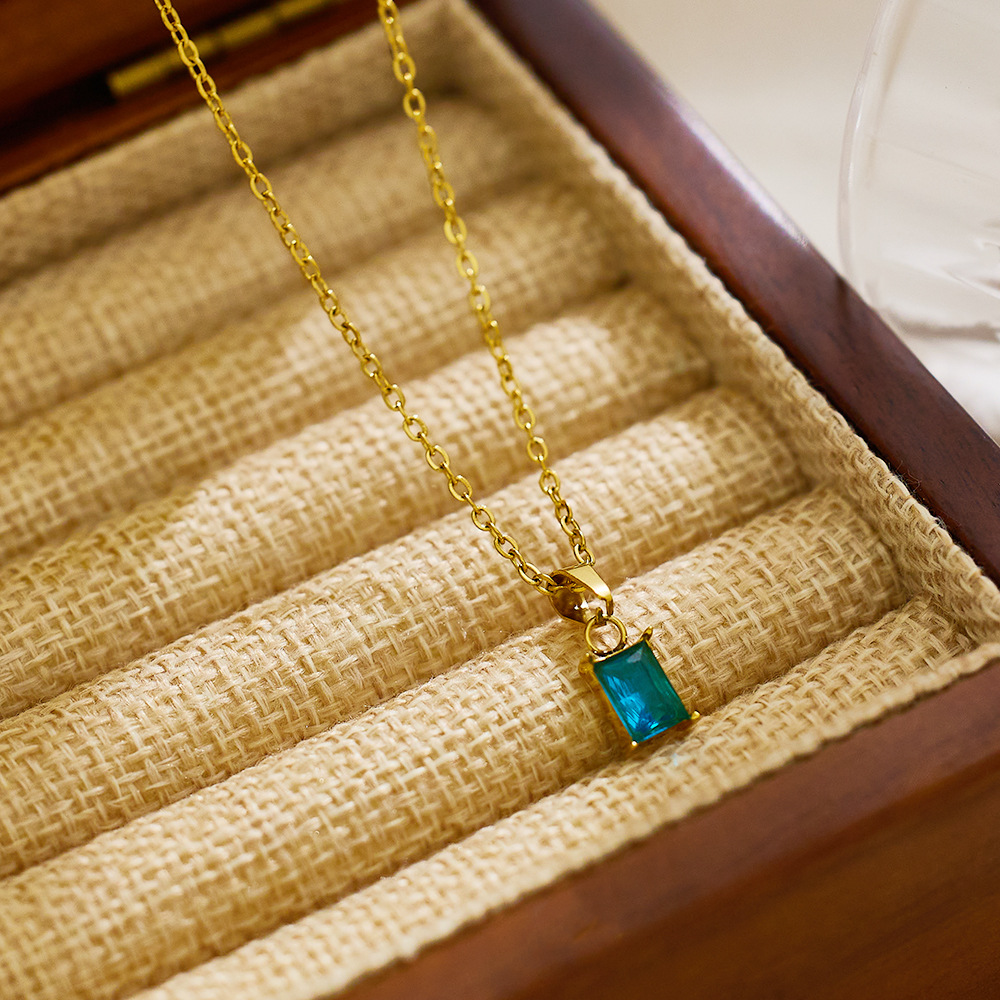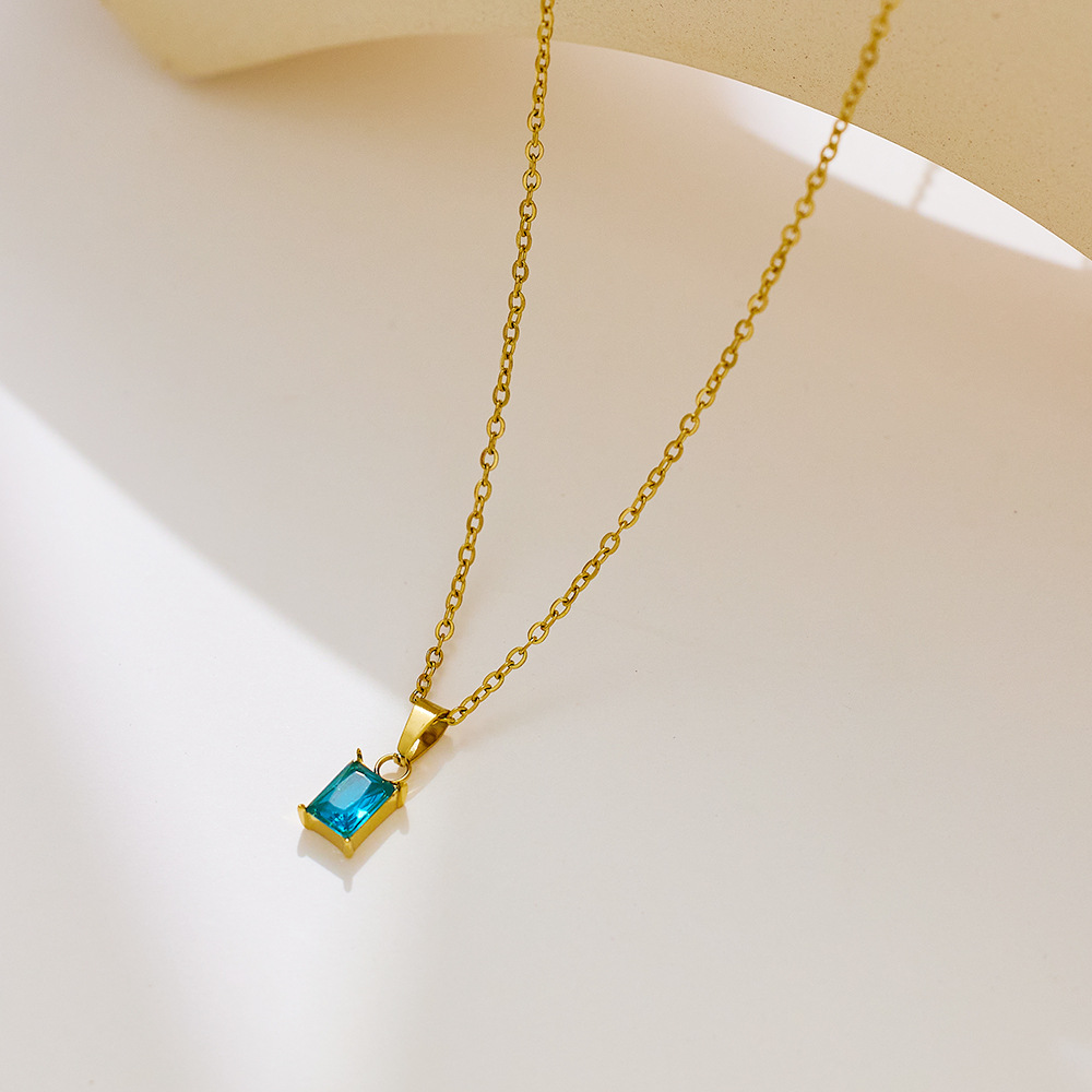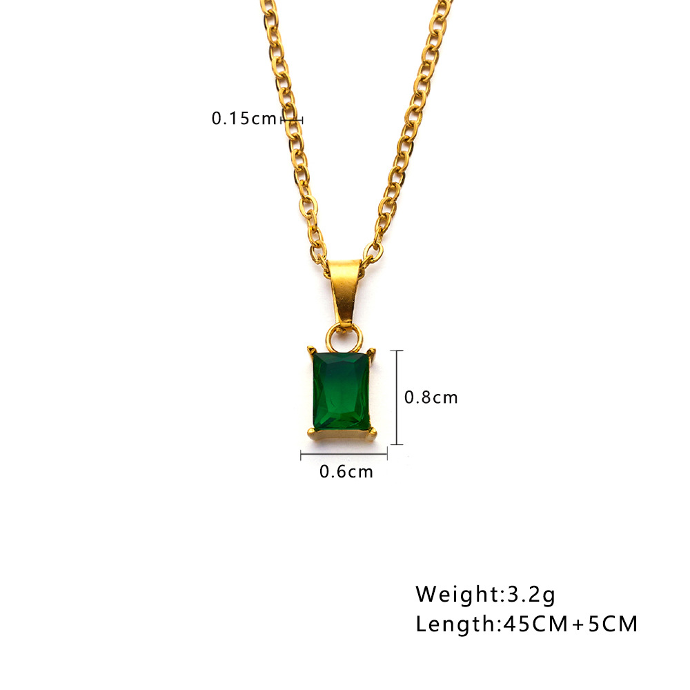 JY02FF Ins Cyber Celebrity Fashion All-match Necklace Plated 18k Gold Collar Chain Colorful Square Zircon Pendant Necklace (Material: titanium steel)