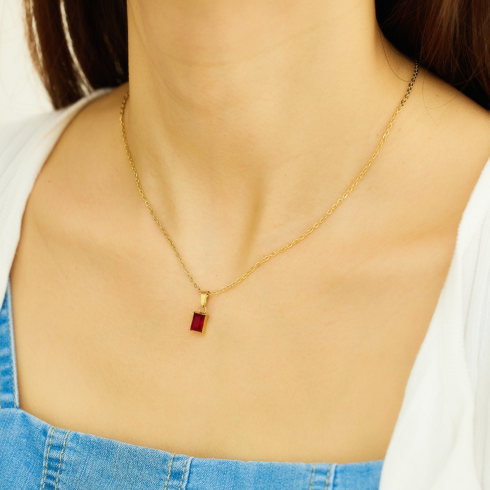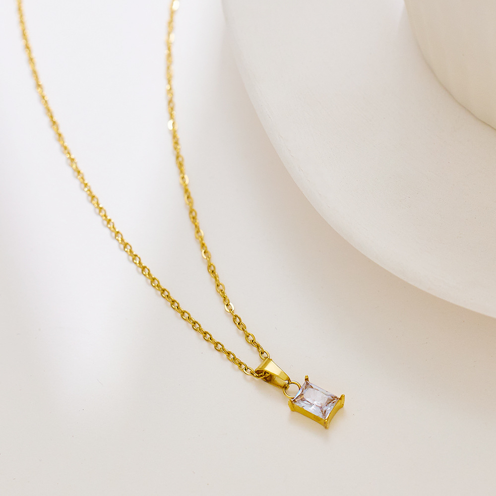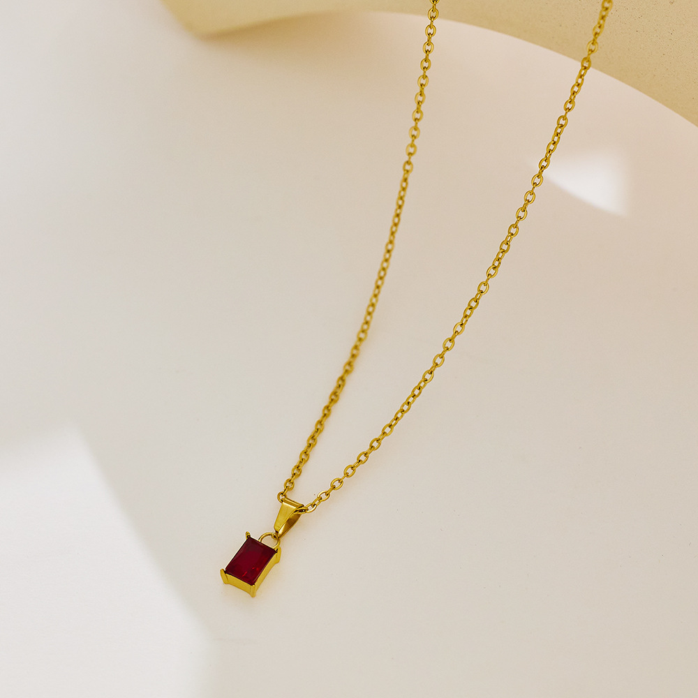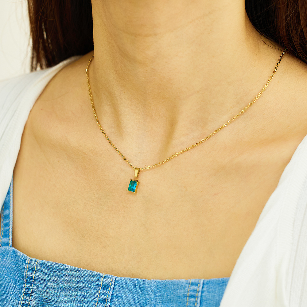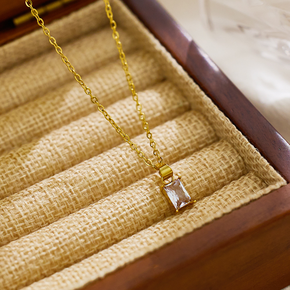 JY02FF Ins Cyber Celebrity Fashion All-match Necklace Plated 18k Gold Collar Chain Colorful Square Zircon Pendant Necklace (Material: titanium steel)