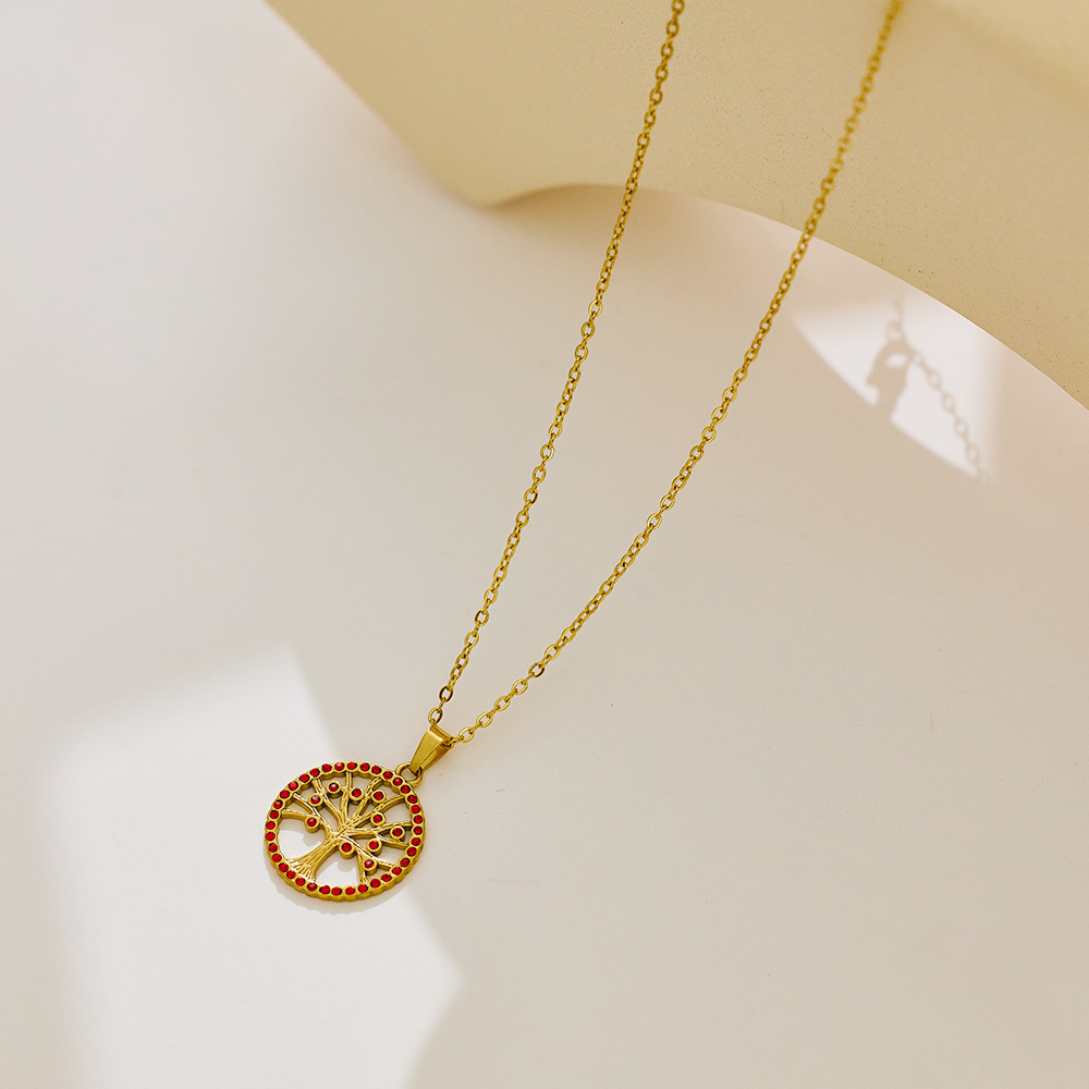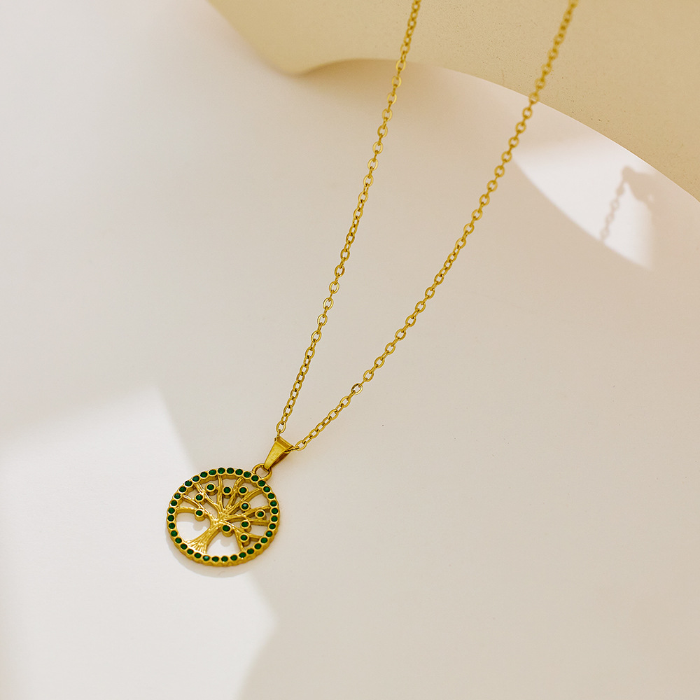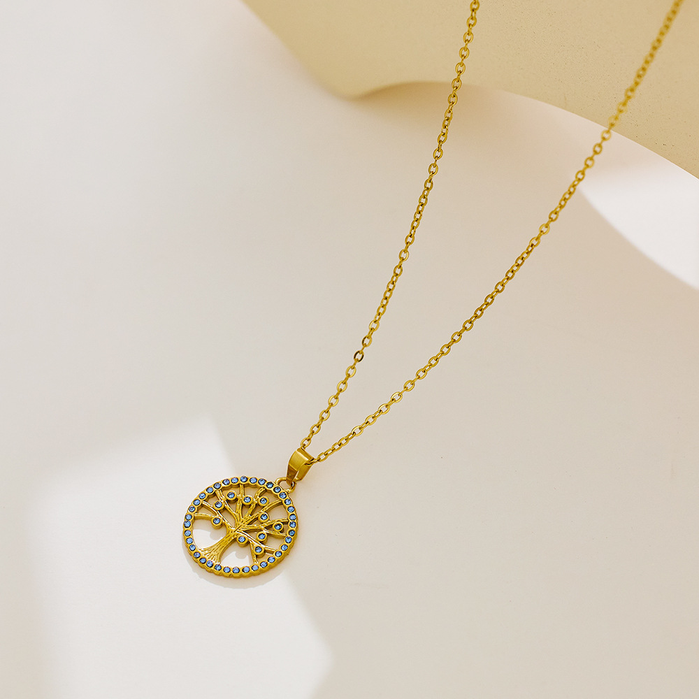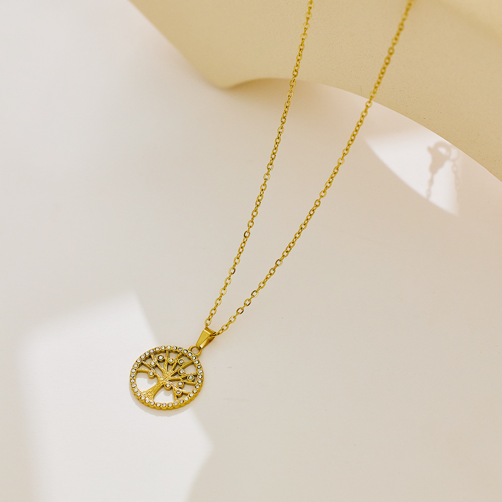 Decrease quantity for JY02FF Ins Style Geometric Necklace Diamond Titanium Steel Clavicle Chain Round Hollow Life Tree Pendant Necklace Women (Material: titanium steel)