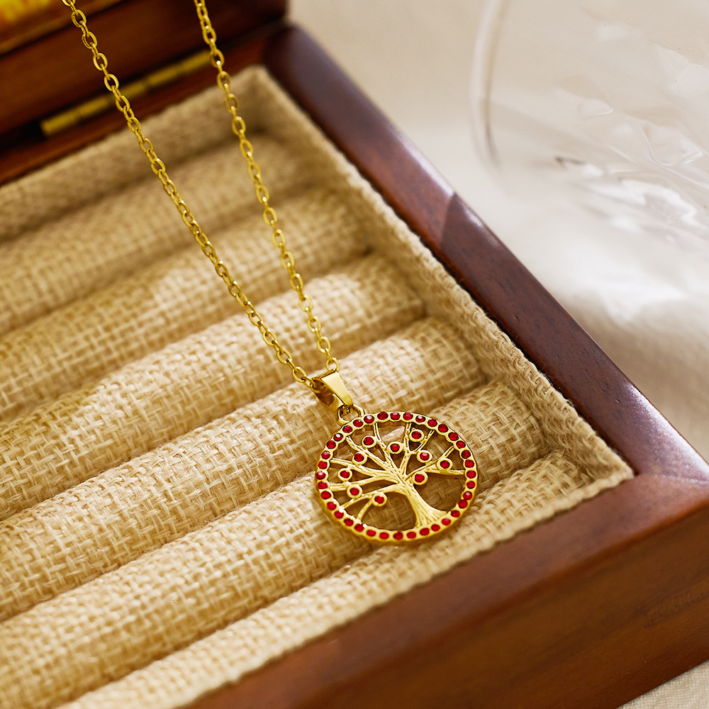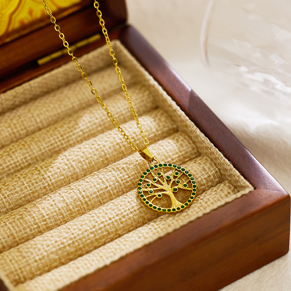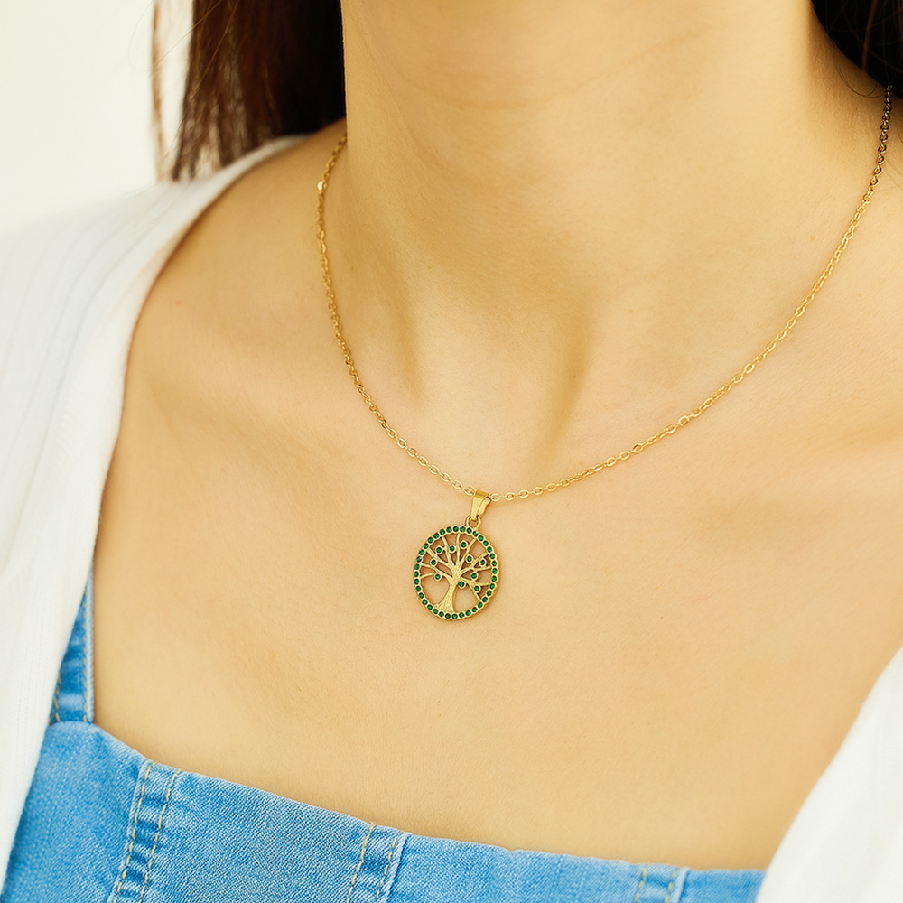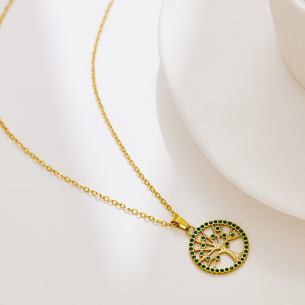 Decrease quantity for JY02FF Ins Style Geometric Necklace Diamond Titanium Steel Clavicle Chain Round Hollow Life Tree Pendant Necklace Women (Material: titanium steel)