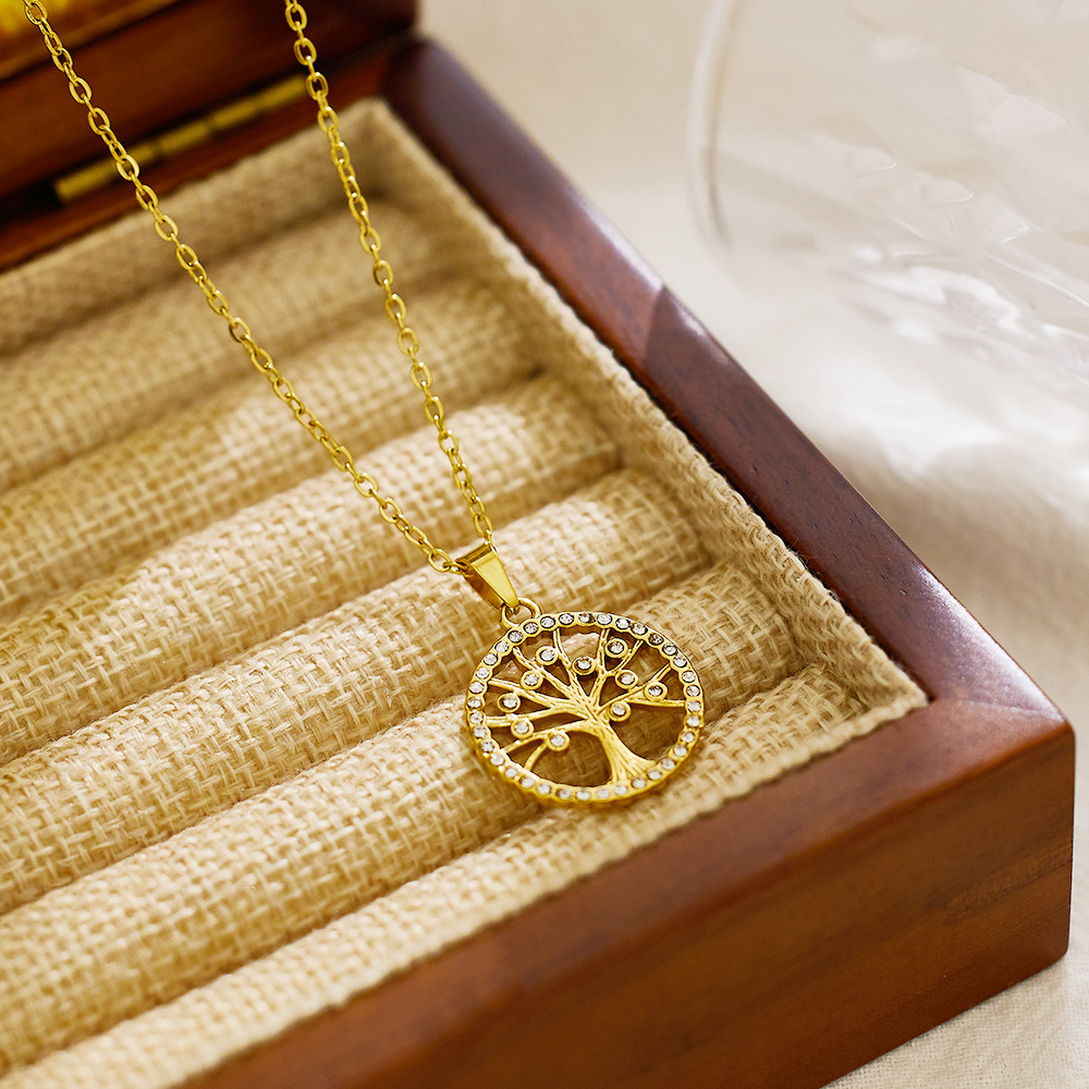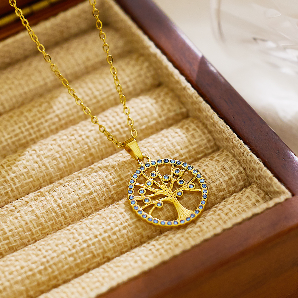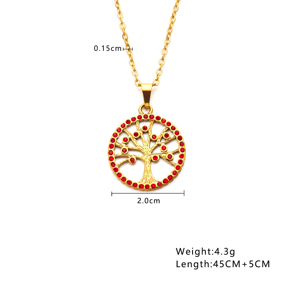 Increase quantity for JY02FF Ins Style Geometric Necklace Diamond Titanium Steel Clavicle Chain Round Hollow Life Tree Pendant Necklace Women (Material: titanium steel)