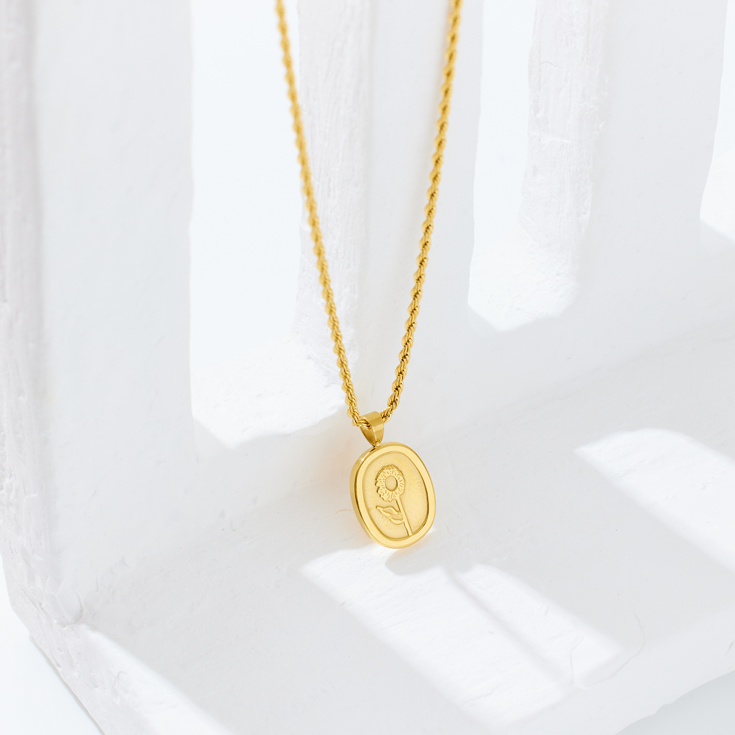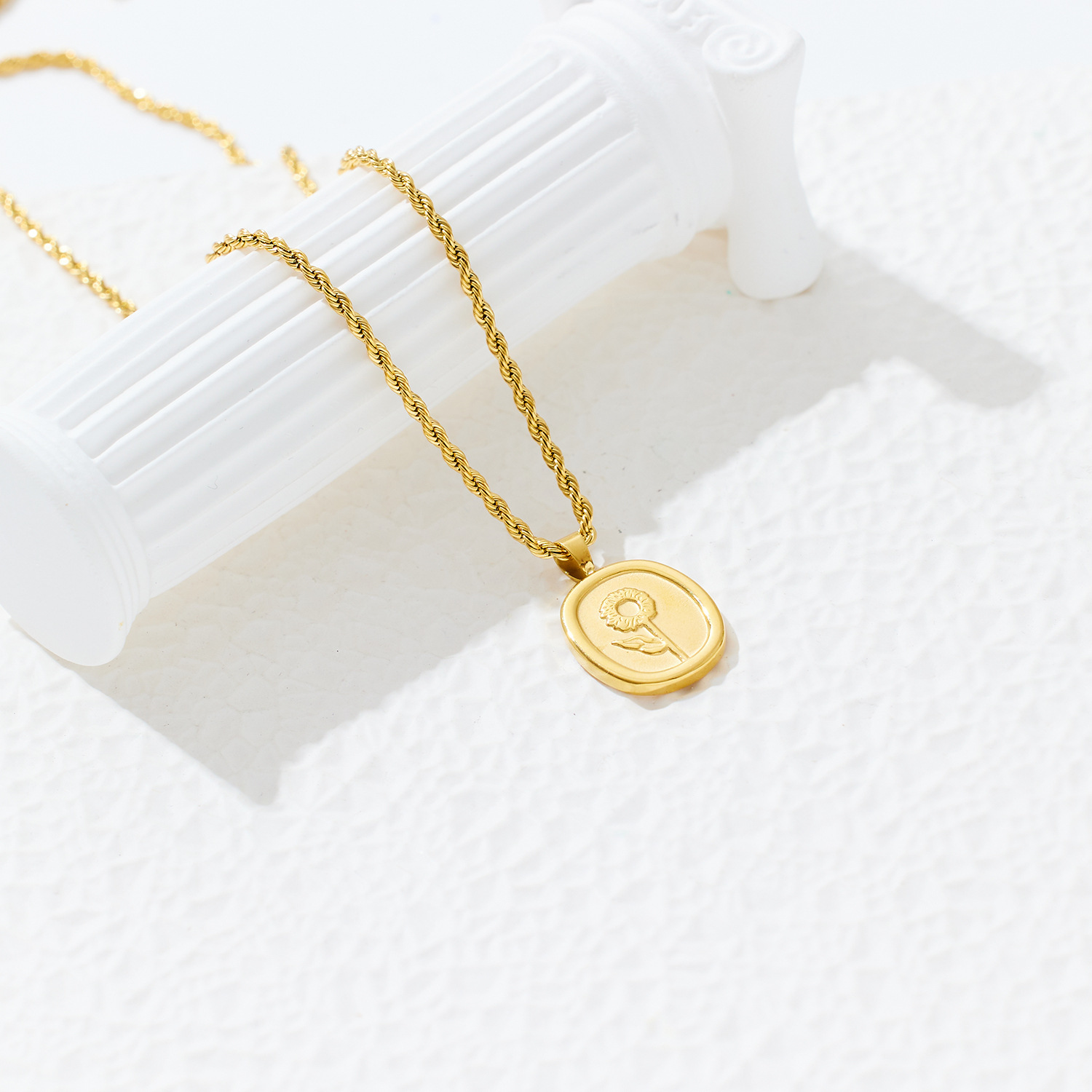 JY02FF Ins Style Simple Fashion Necklace Niche 18k Gold Plated Pendant Retro Long Titanium Steel Necklace Women's Jewelry (Material: titanium steel)