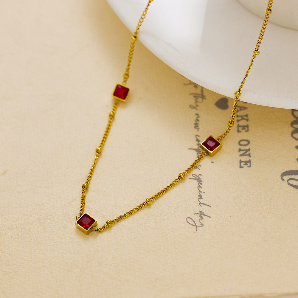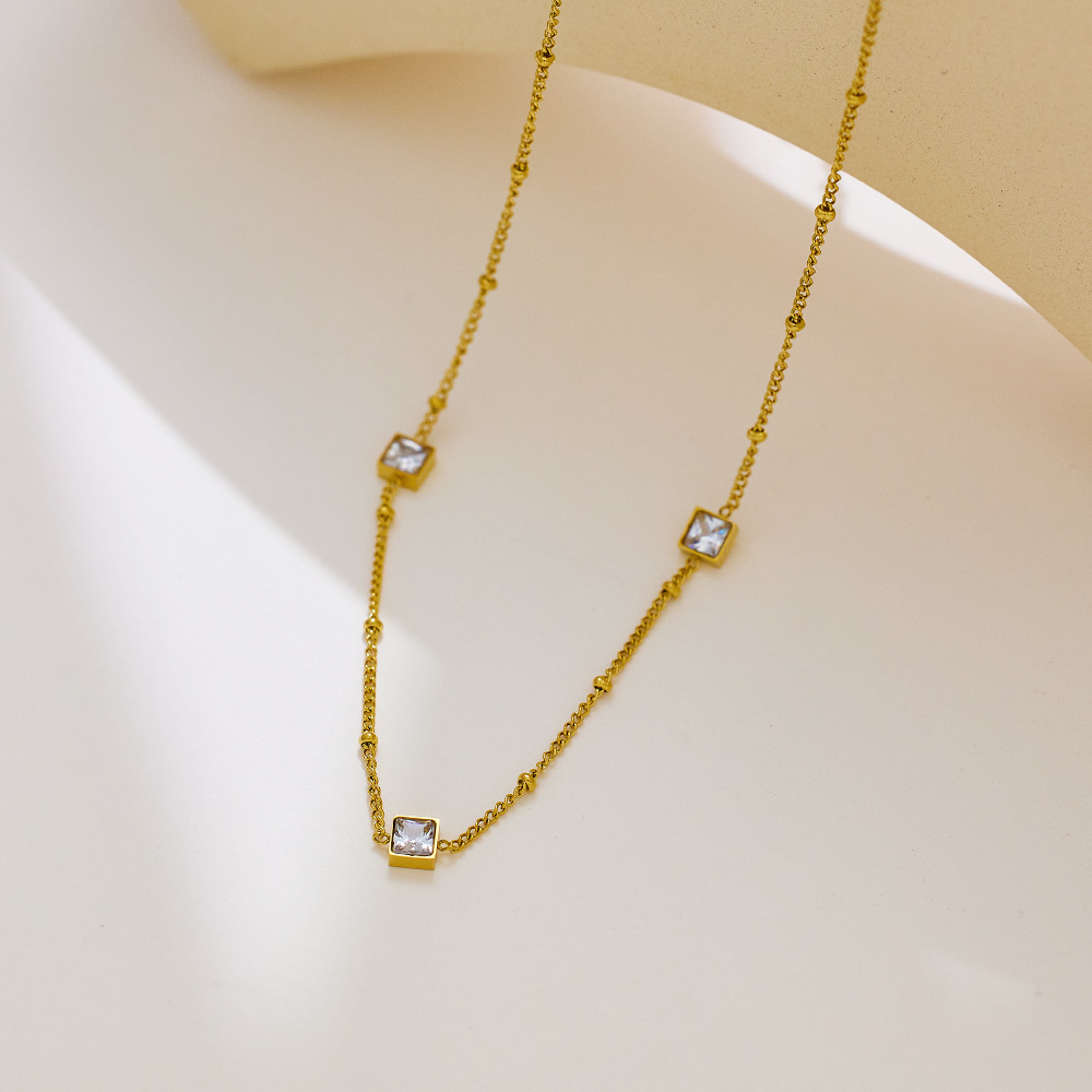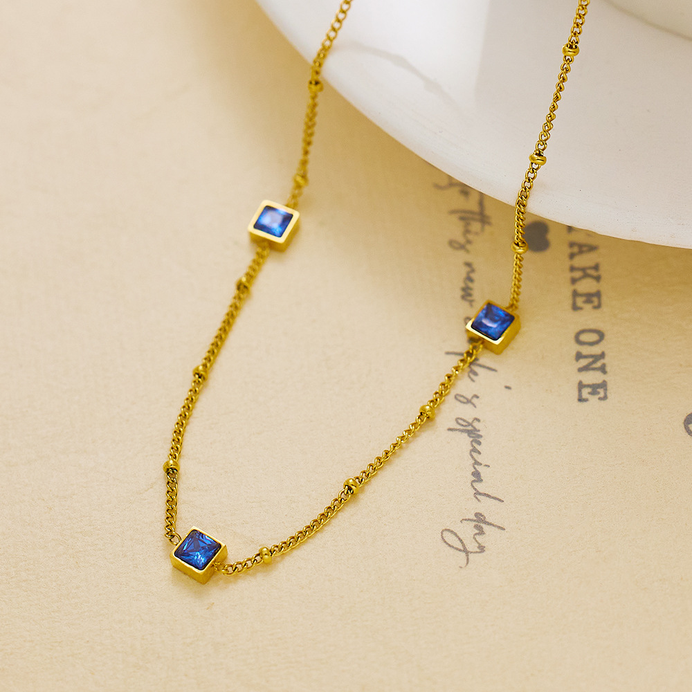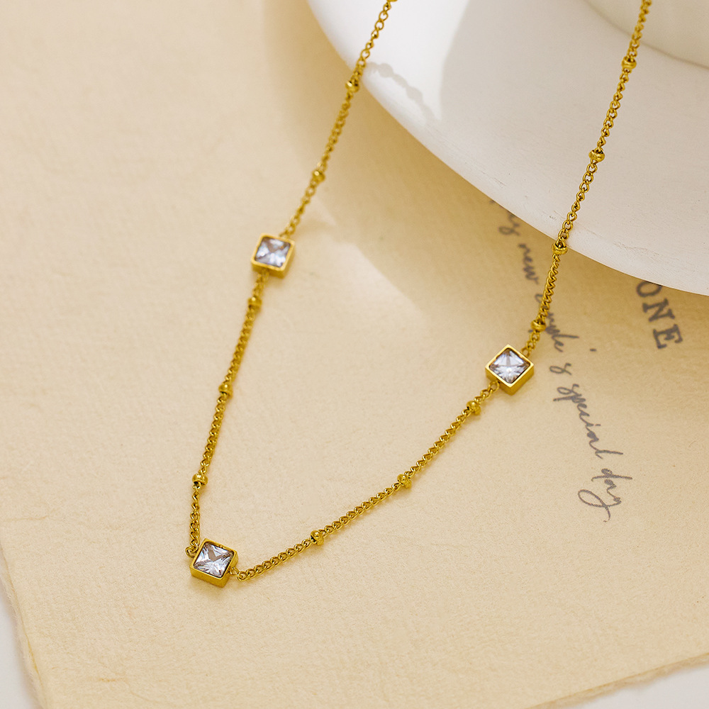 Increase quantity for JY02FF Necklace Fashion All-match Ins Style Clavicle Chain Small Square Zircon Titanium Steel Necklace Necklace (Material: titanium steel)