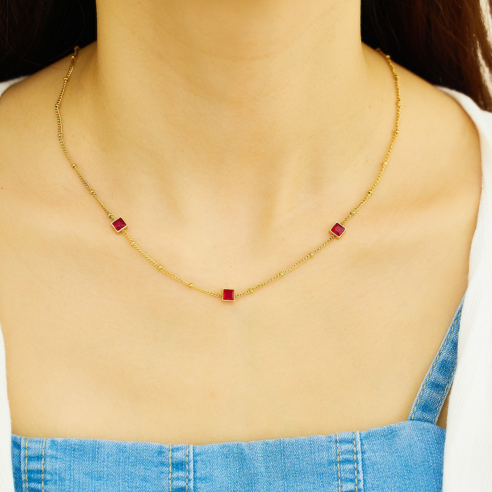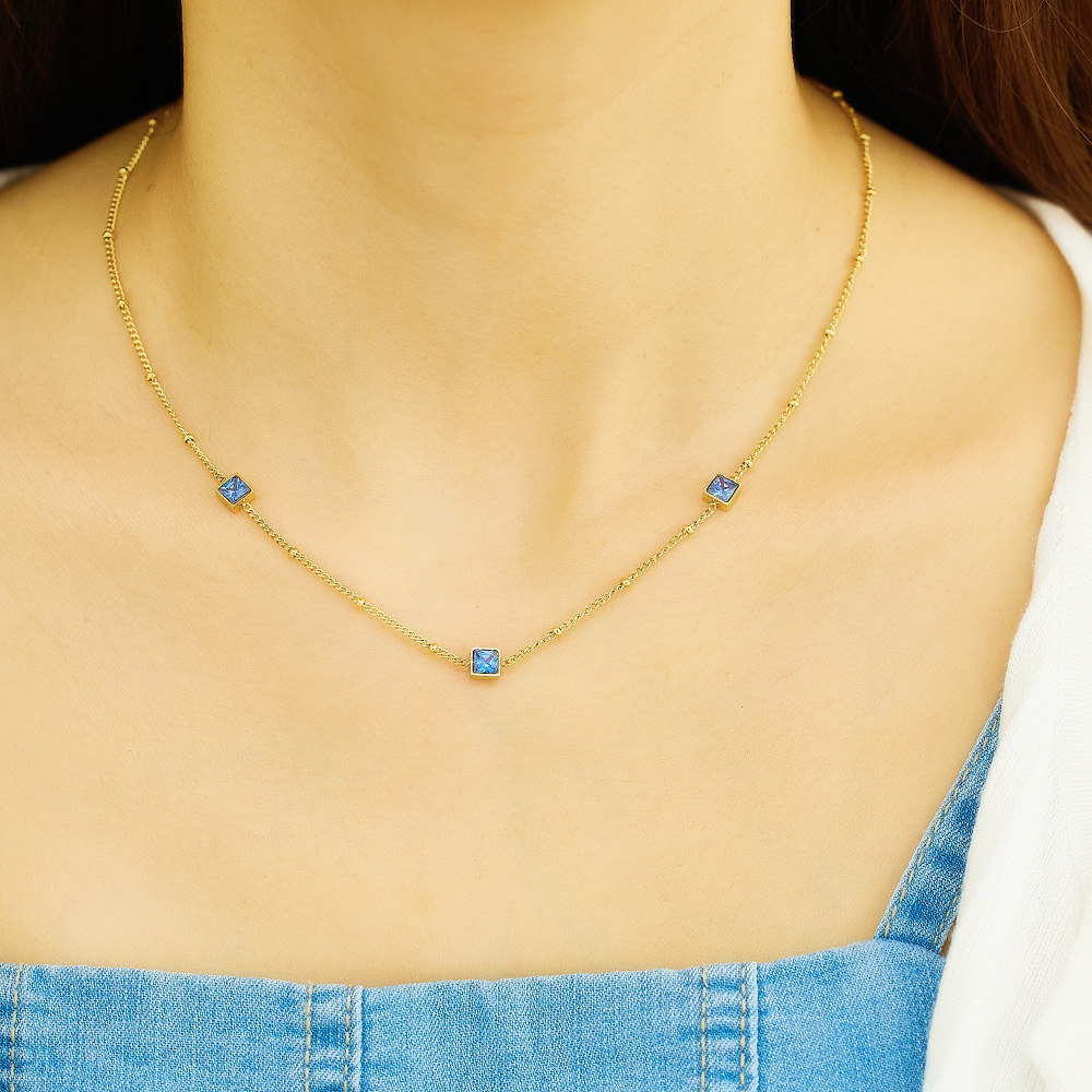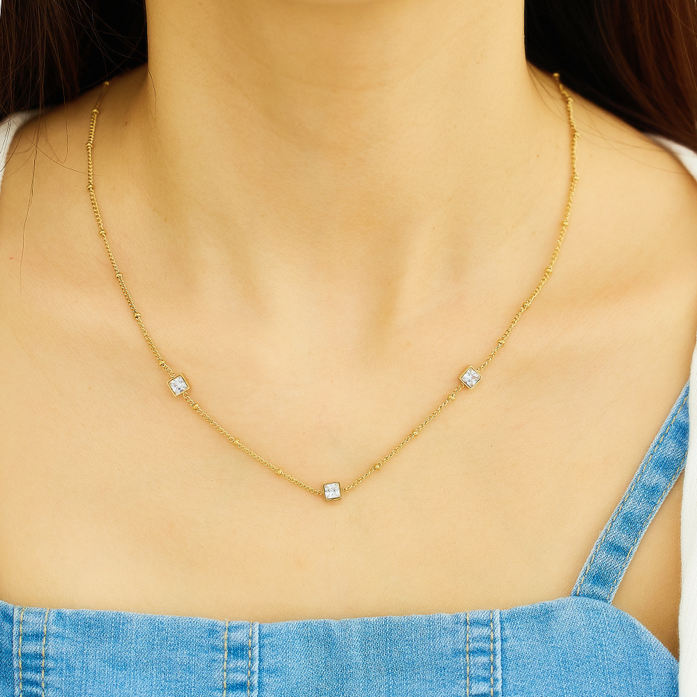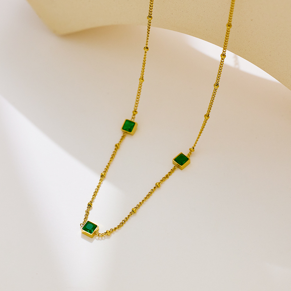 Increase quantity for JY02FF Necklace Fashion All-match Ins Style Clavicle Chain Small Square Zircon Titanium Steel Necklace Necklace (Material: titanium steel)