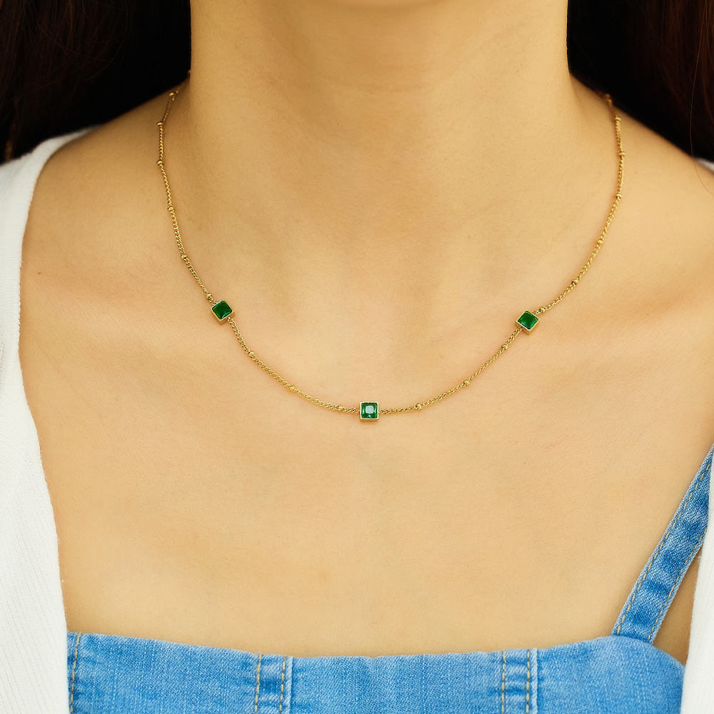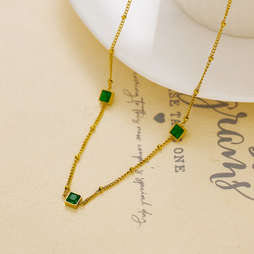 JY02FF Necklace Fashion All-match Ins Style Clavicle Chain Small Square Zircon Titanium Steel Necklace Necklace (Material: titanium steel)