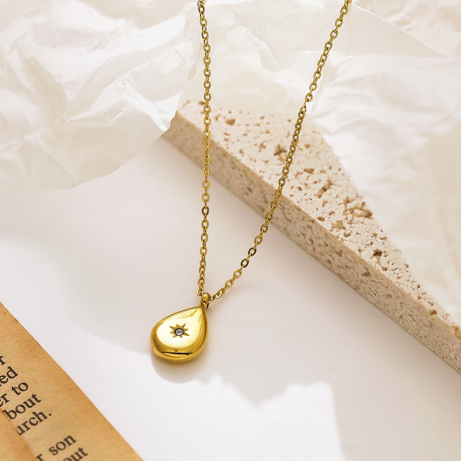 JY02FF Necklace Plated 18k Gold Sweater Chain Three-dimensional Water Drop Eight Mans Star Pendant Necklace Women (Material: titanium steel)